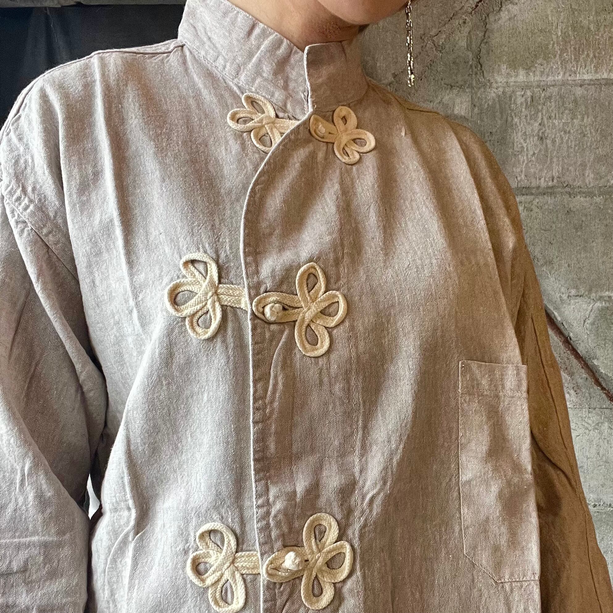 特徴的なボタンは一般的にはチャイナボタンと呼称されますが、正式にはブランデンボルクボタンと呼称され、18〜19世紀のヨーロッパやアメリカの軍服で見られた肋骨軍服の影響を受けた飾りボタンです。