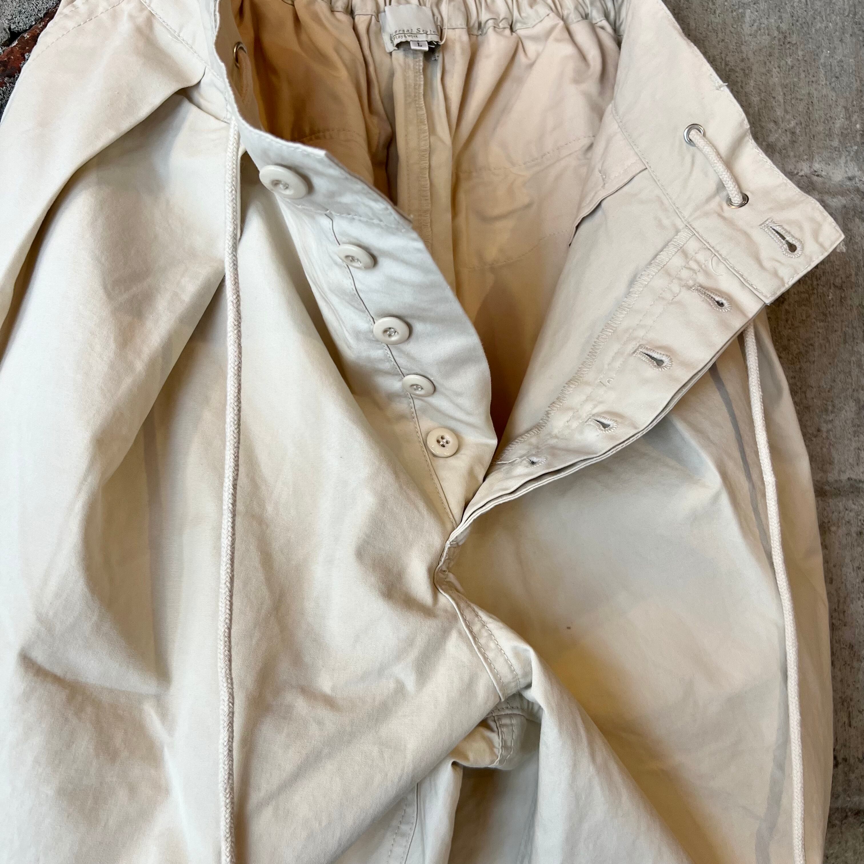 裾にダーツをとりウエスト部分をたっぷりとしたダブルタックにすることにより、独特で丸みのある特徴的なシルエットに。