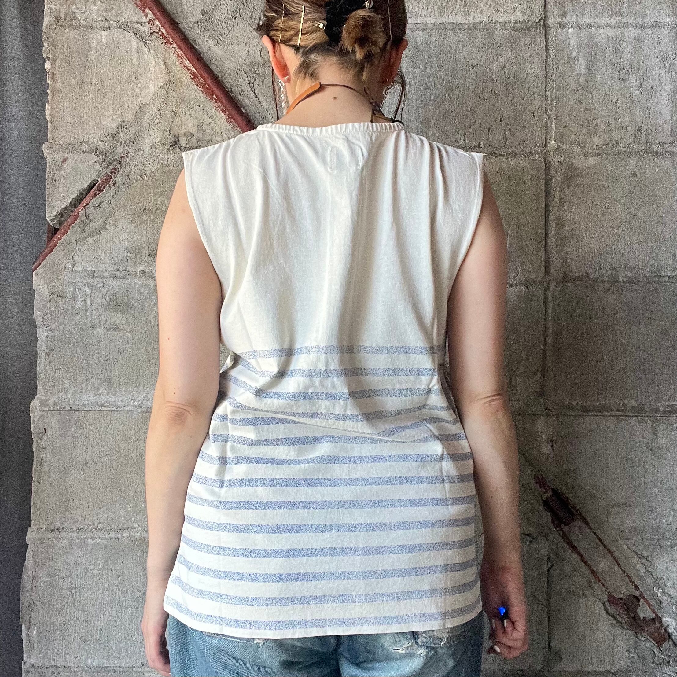 多ボタン使いでアクセントが効いたノースリーブトップス。