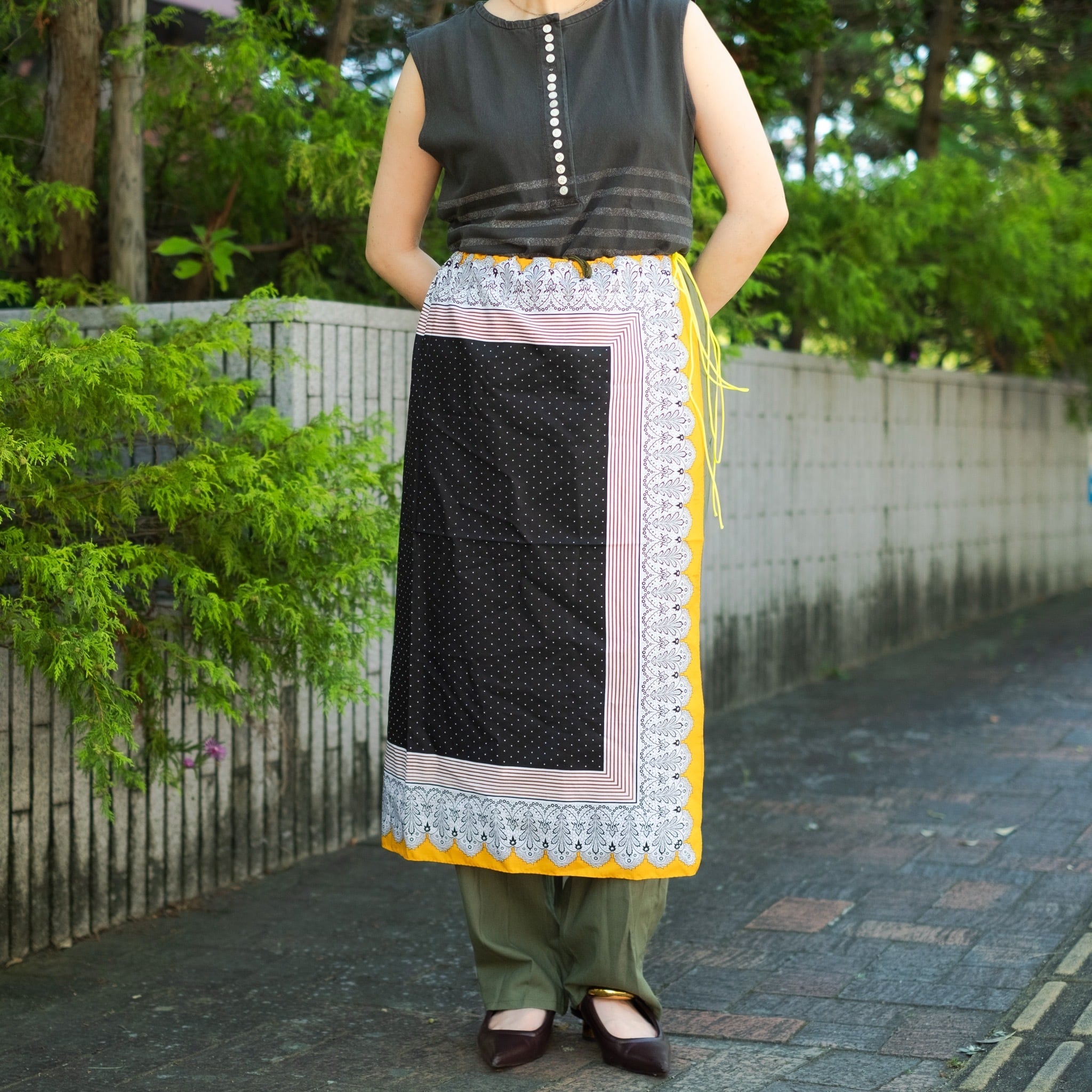 大判のスカーフをラップスカートにリメイク。
