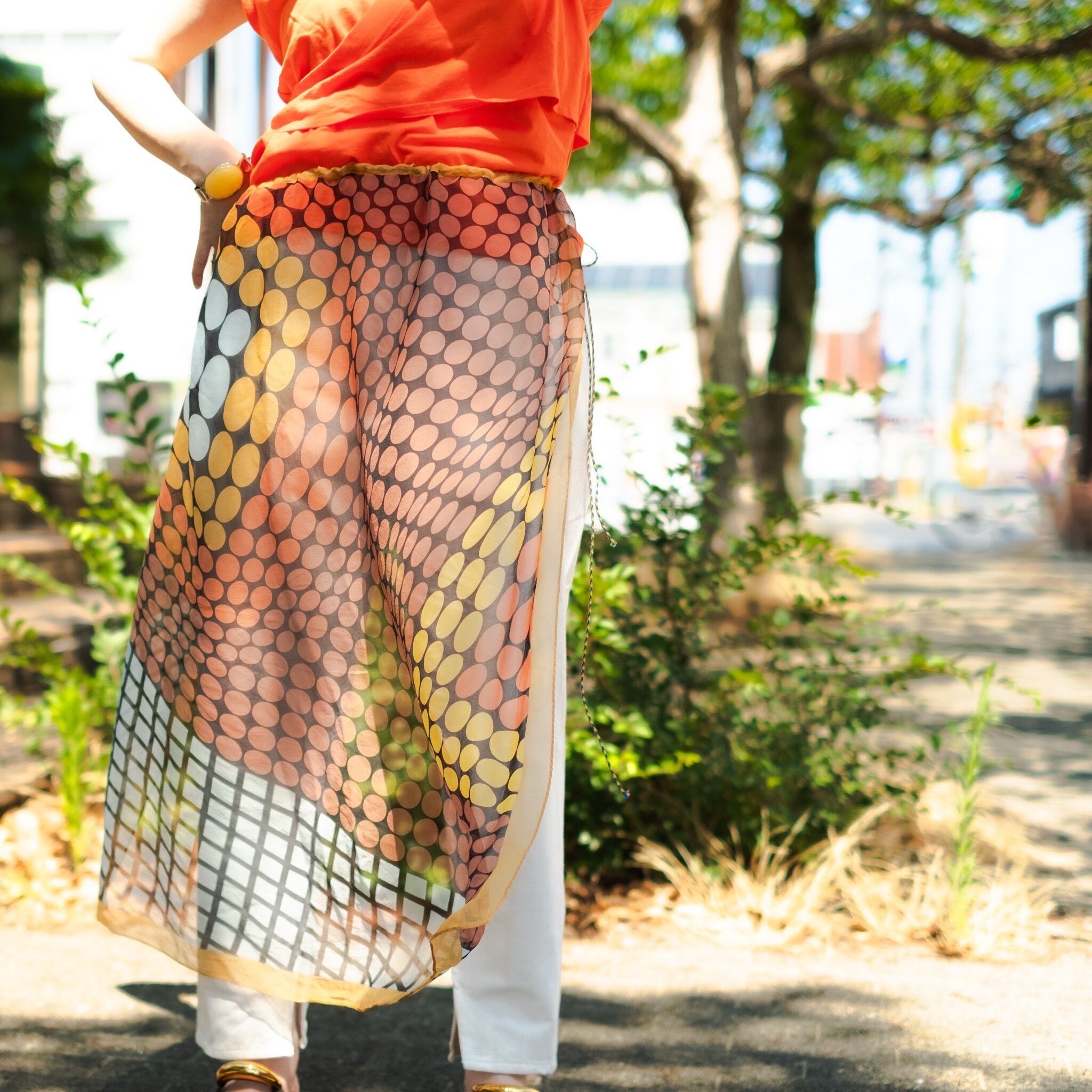 エプロンのように着用したり、デニムやパンツはもちろん、スカートやワンピースなどどんなスタイルにも巻くだけで着こなしの幅を広げることができます。