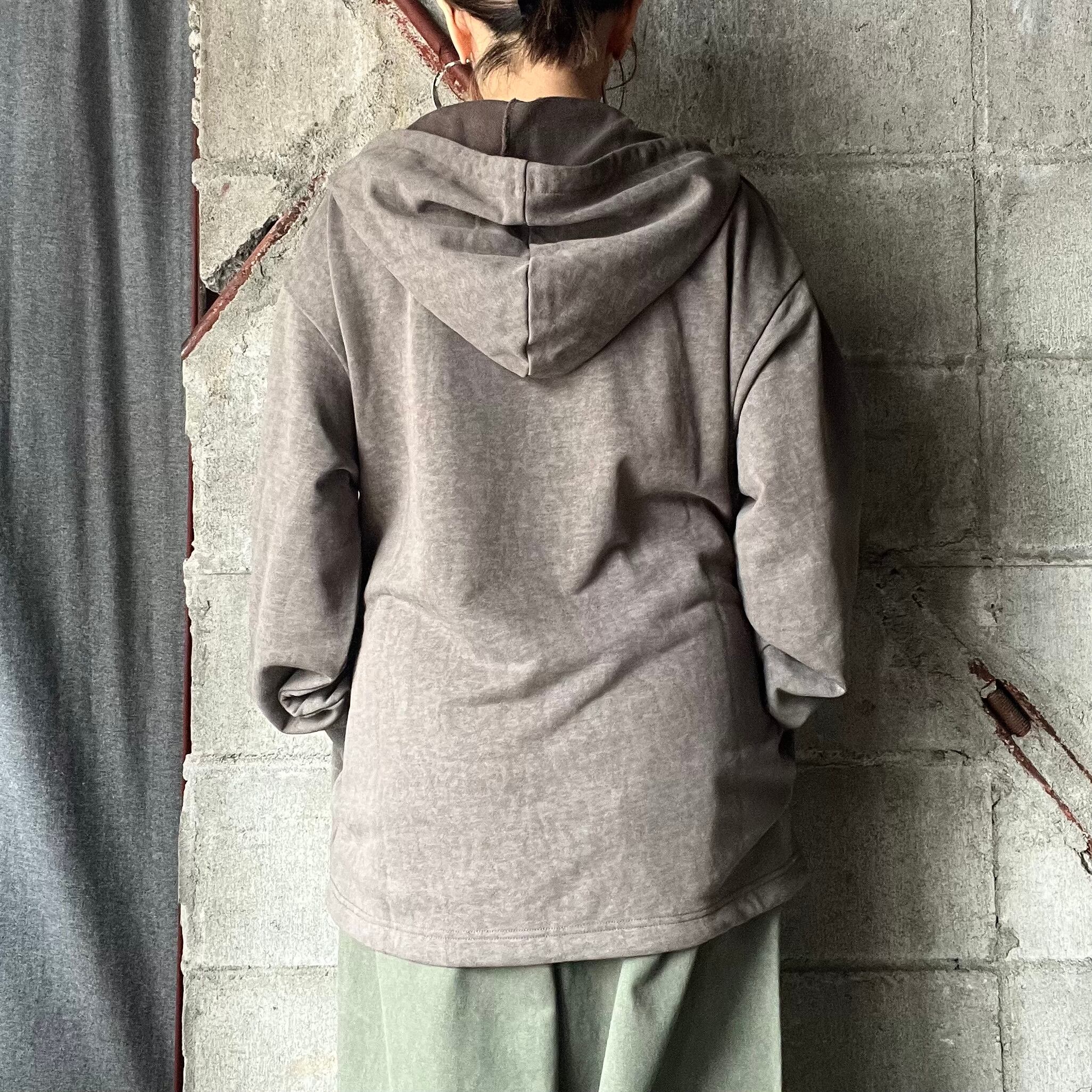 ピグメント加工を施した古着ライクなハーフジップパーカー。