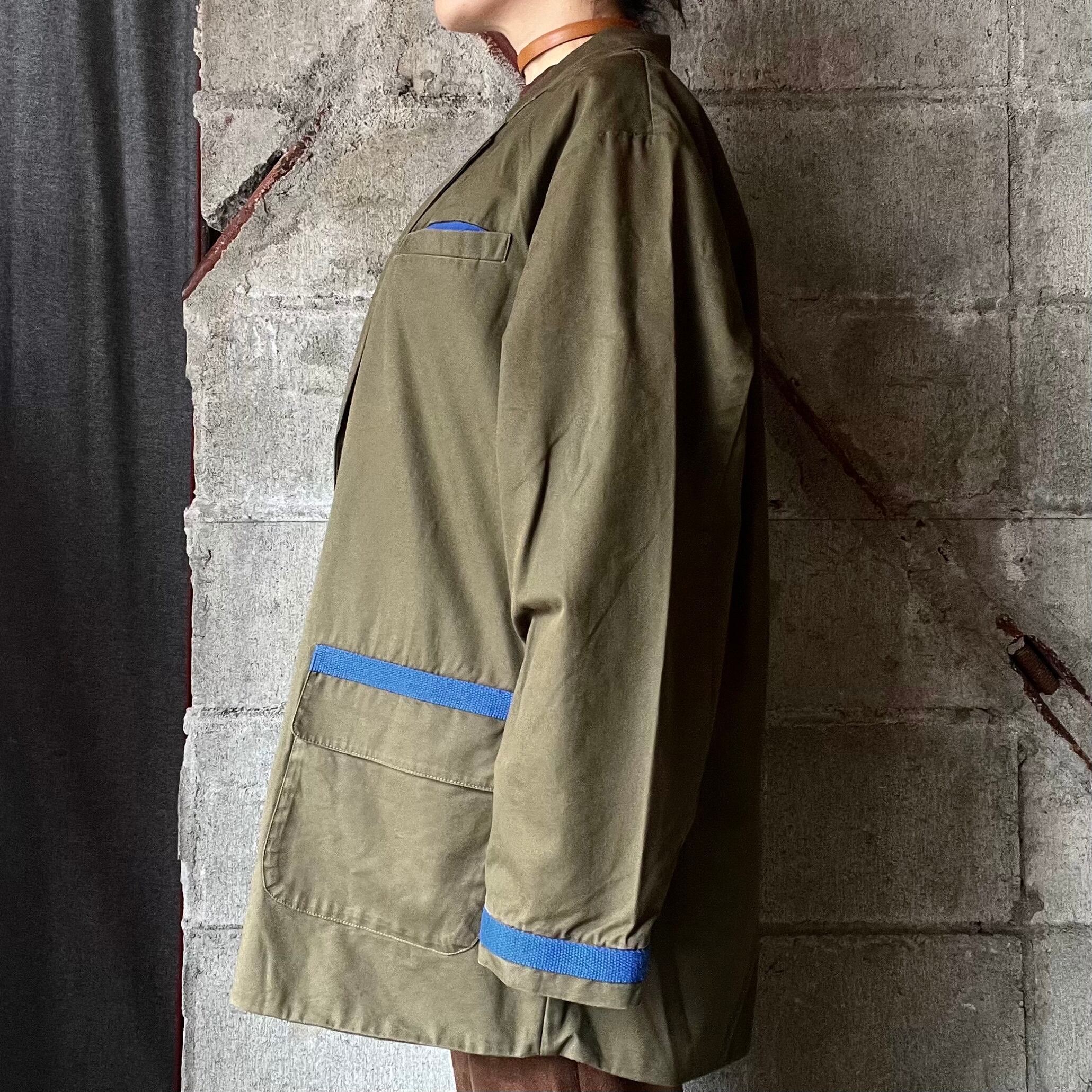 きちんとした印象のジャケットにテープをつけてアクセントに。