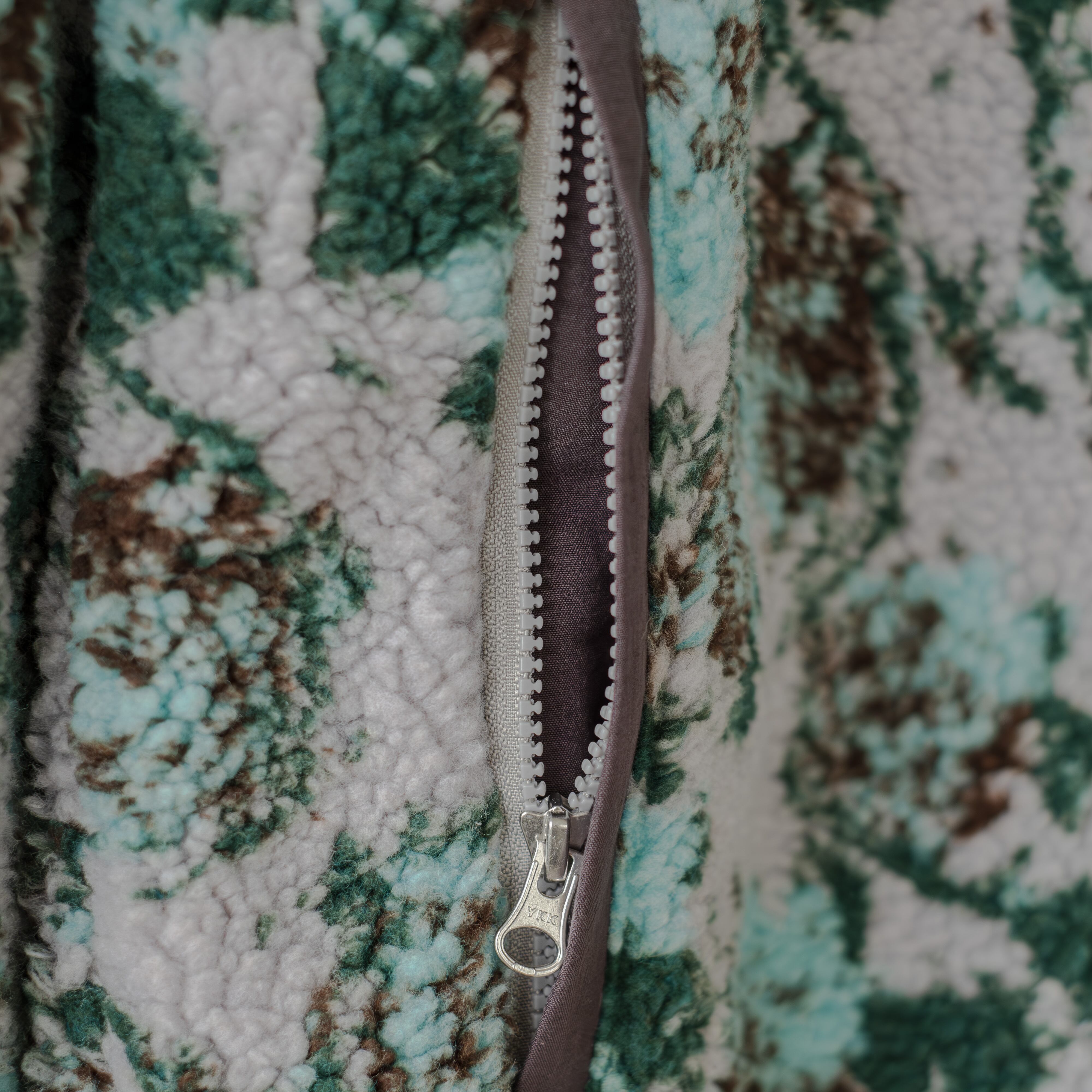 カジュアルな印象のボアに花柄が珍しい印象のブルゾン。