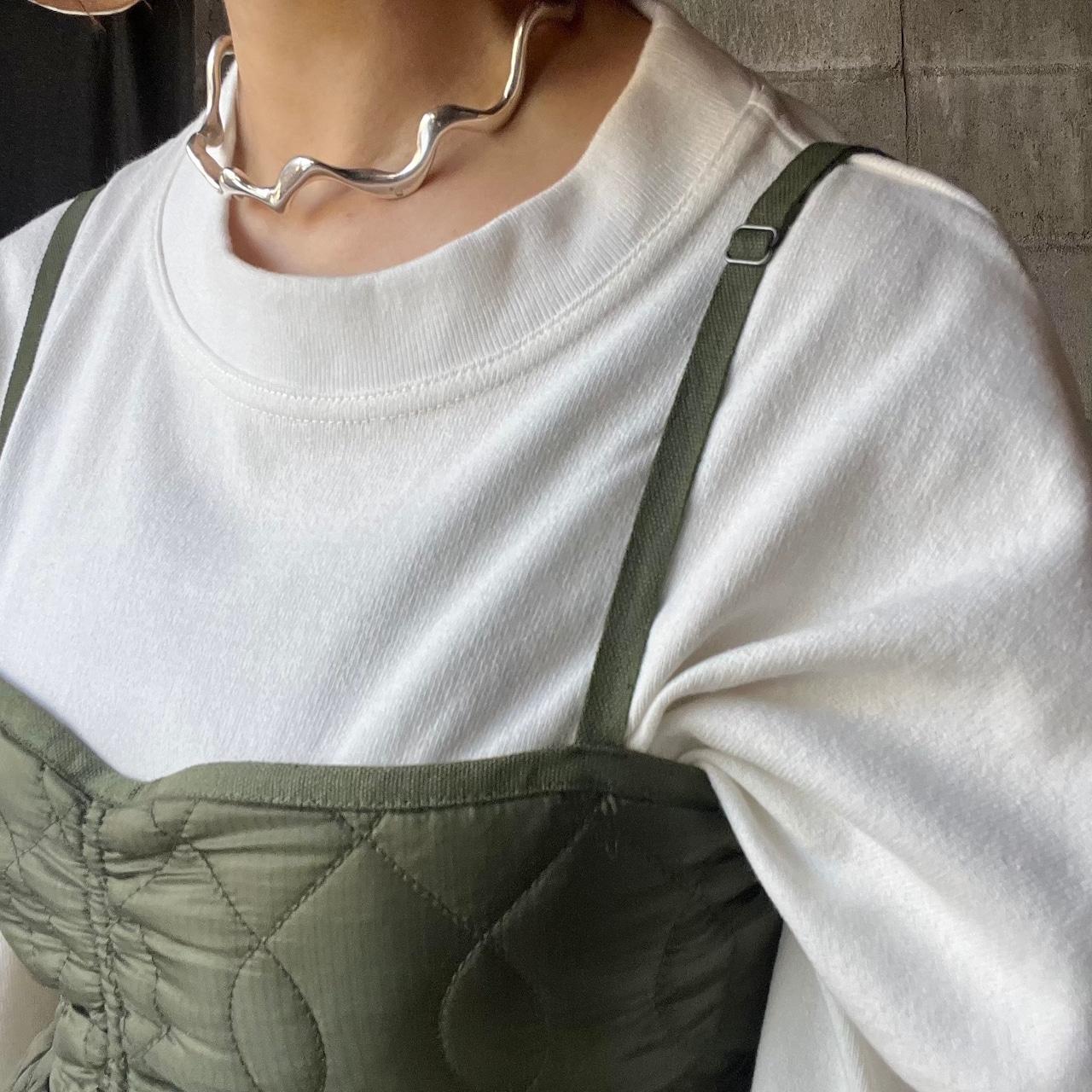 【alee】 cross wave quilt camisole vest (khaki / yekkow)