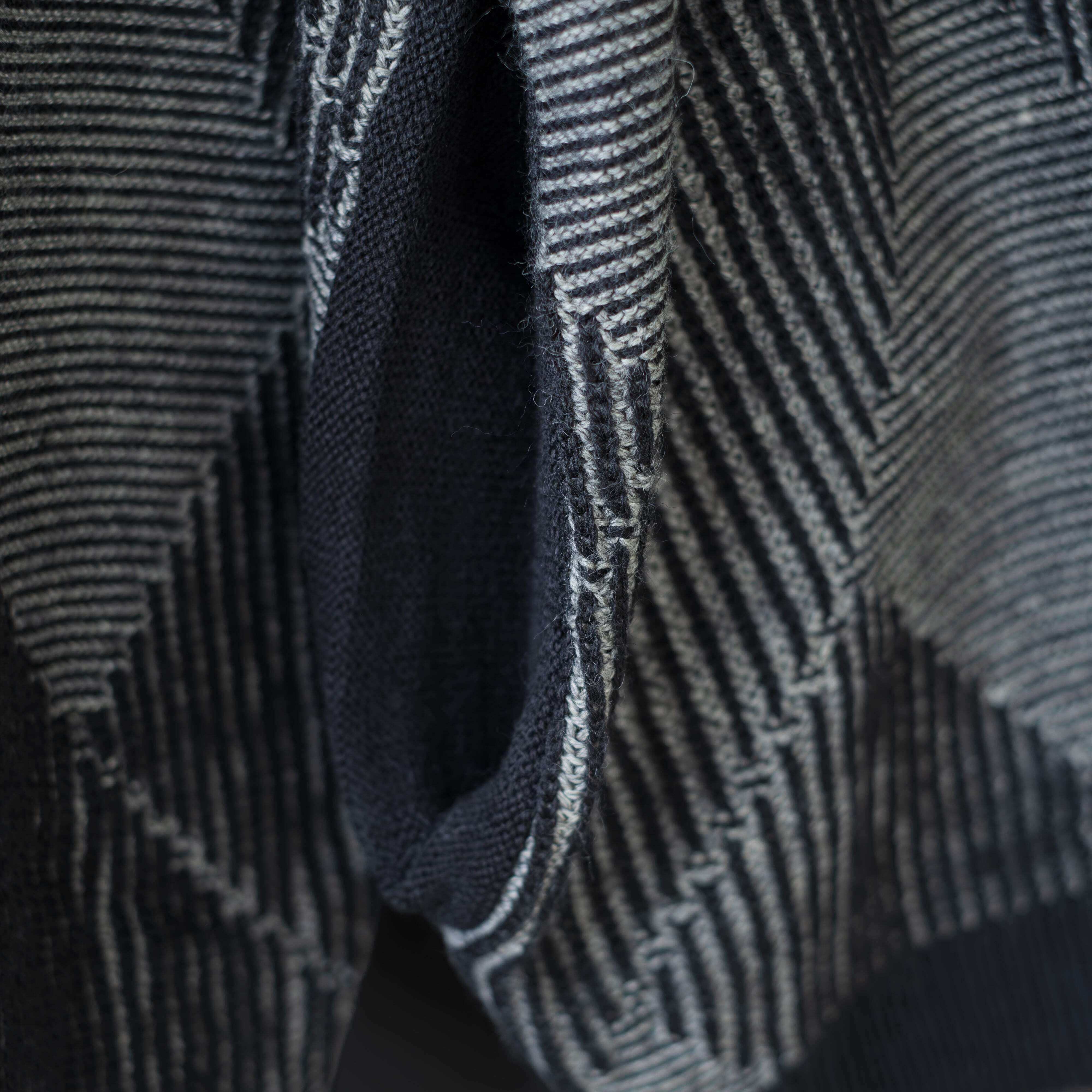 2本の糸を同時に引き入れて編む天竺編みの手法で、独特な凹凸の表情になり普通すぎない適度な遊び心を持った服がお好きな方におすすめ。