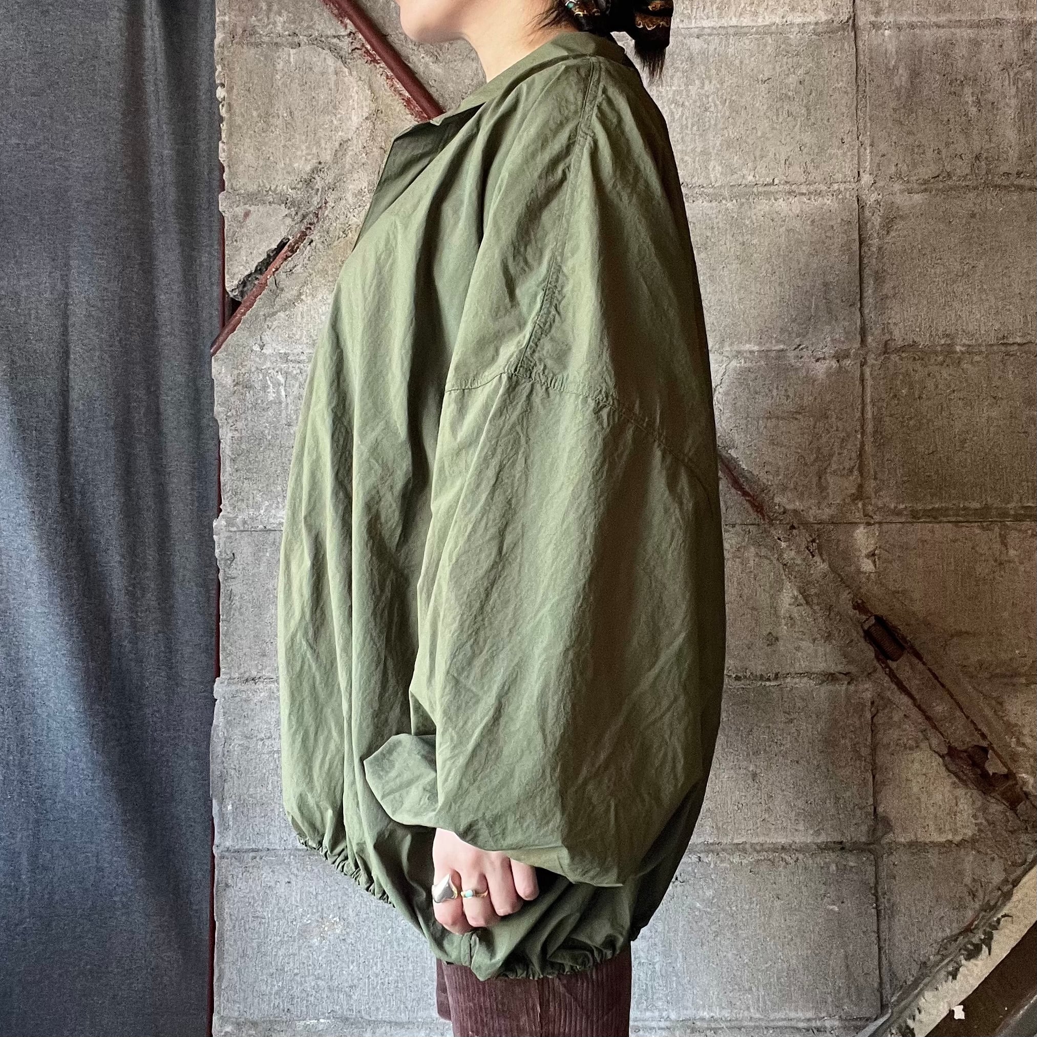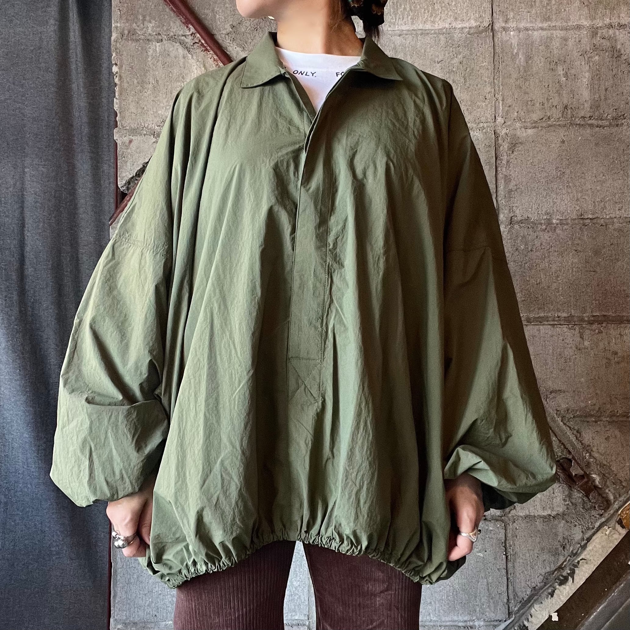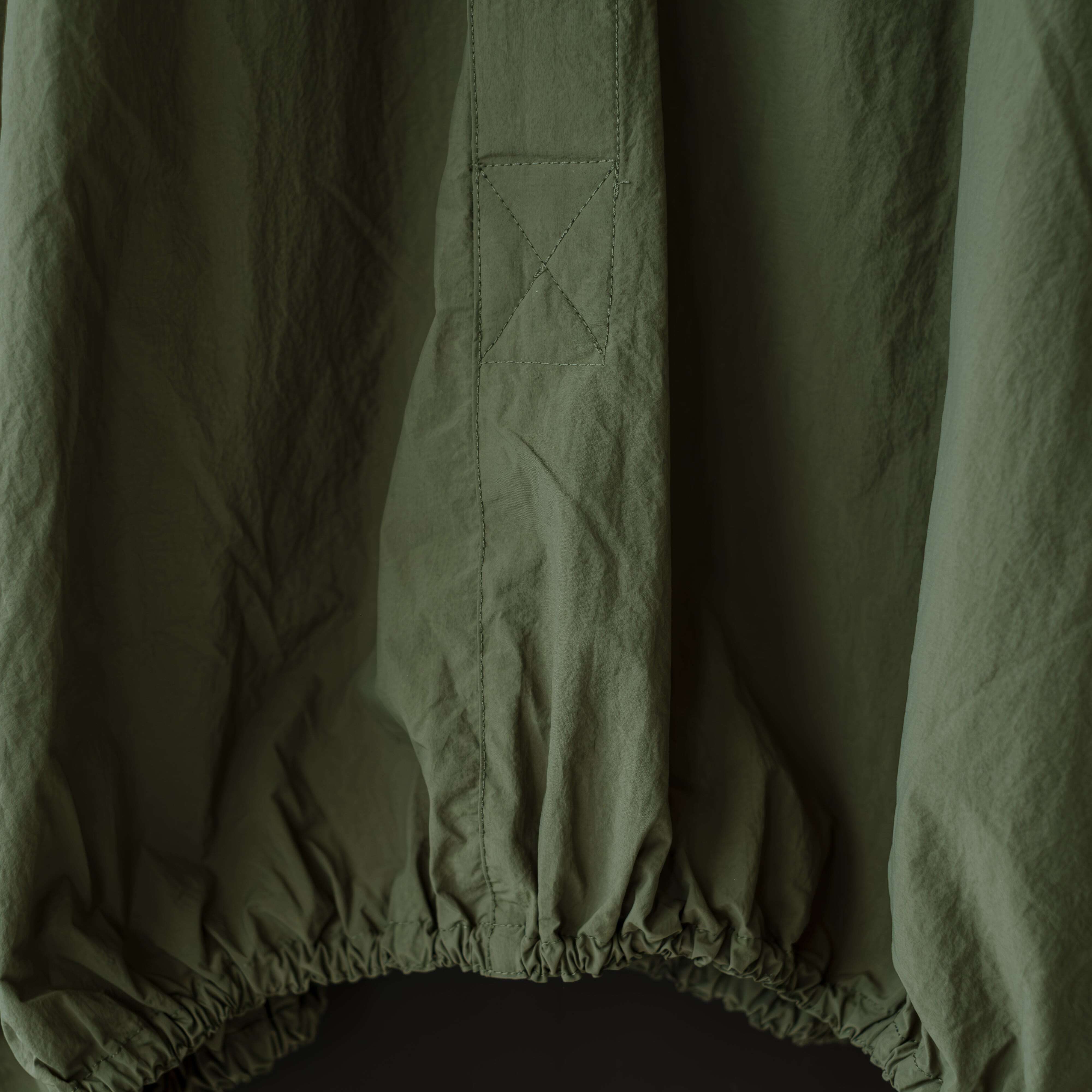 シワ感のあるマッドな質感のナイロンを使用したプルオーバーシャツ。