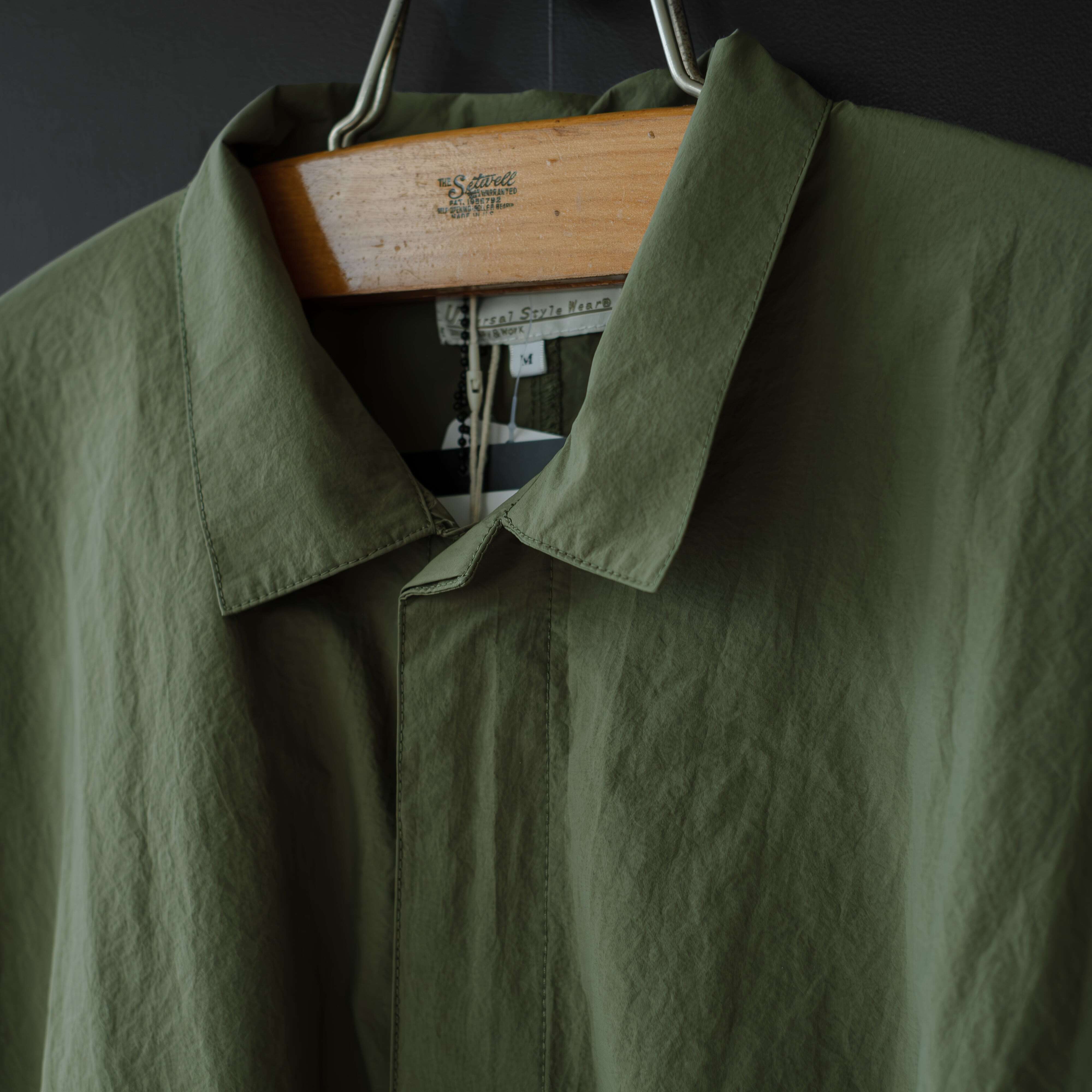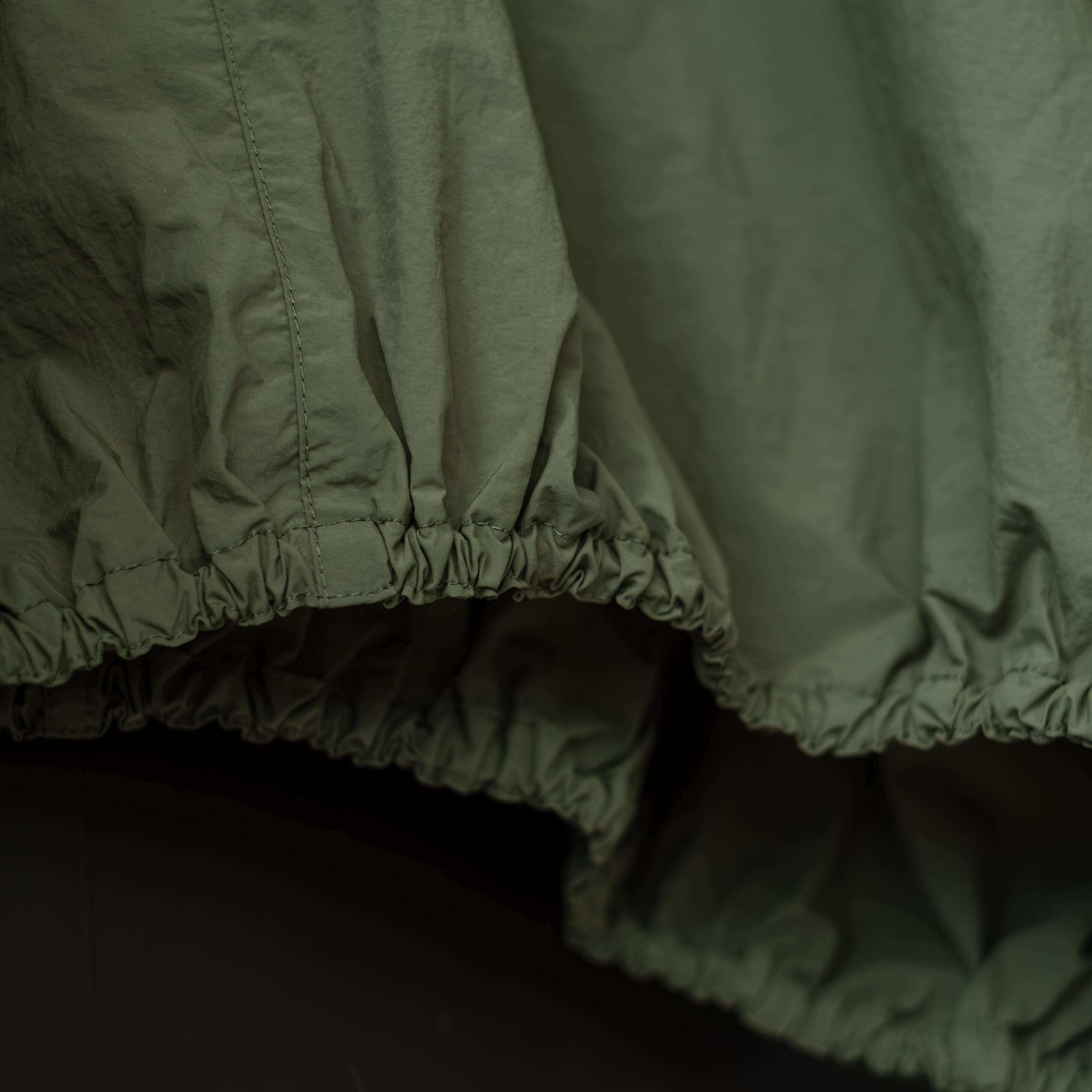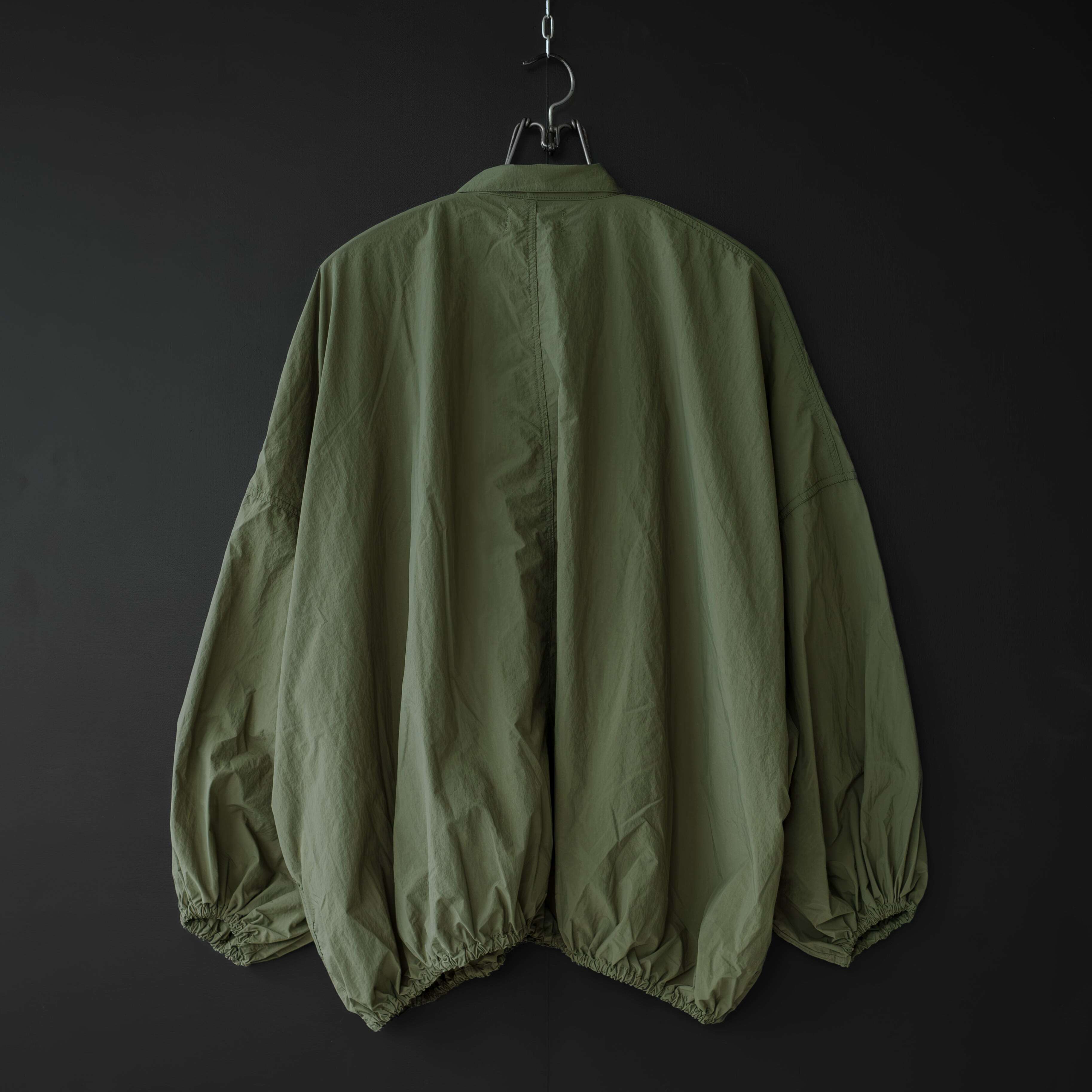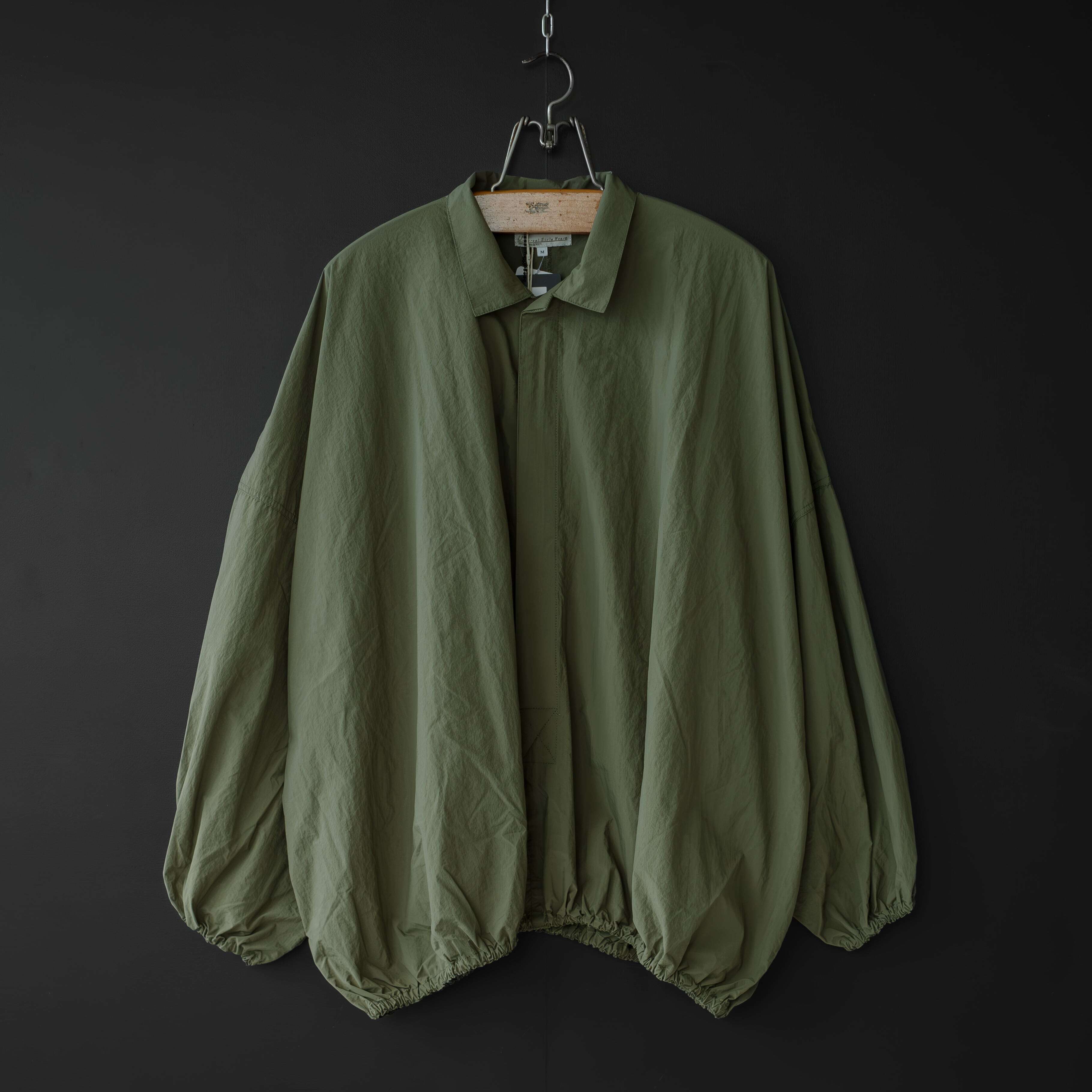 シワ感のあるマッドな質感のナイロンを使用したプルオーバーシャツ。