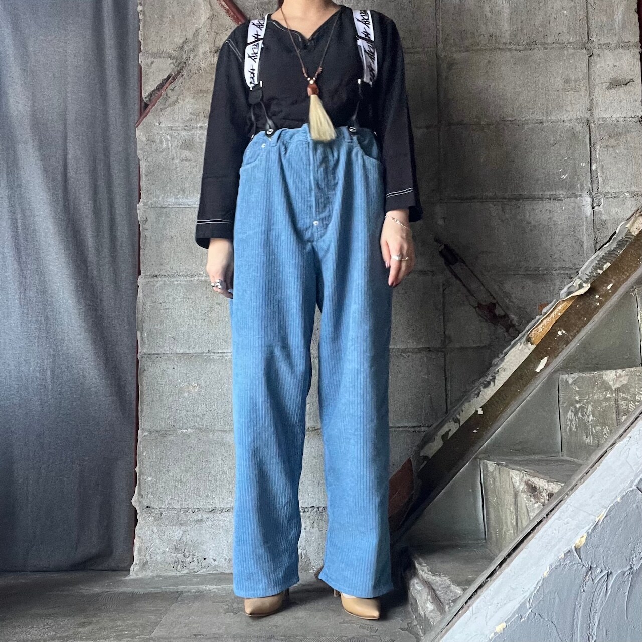 【HOLIDAY】 DAMAGE CORDUROY SUSPENDER PANTS(BLUE)
