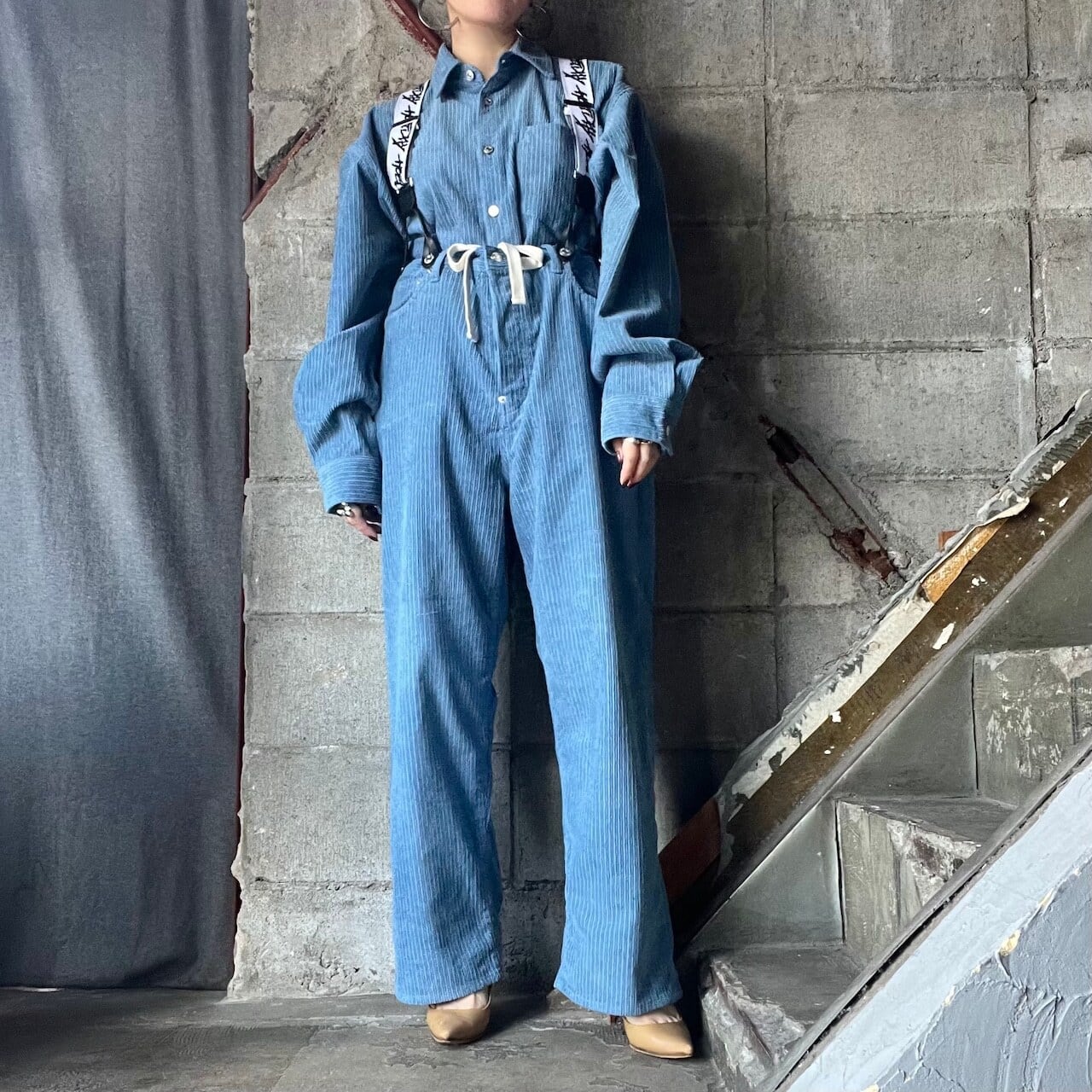 ・【HOLIDAY】 DAMAGE CORDUROY SUSPENDER PANTS(BLUE)