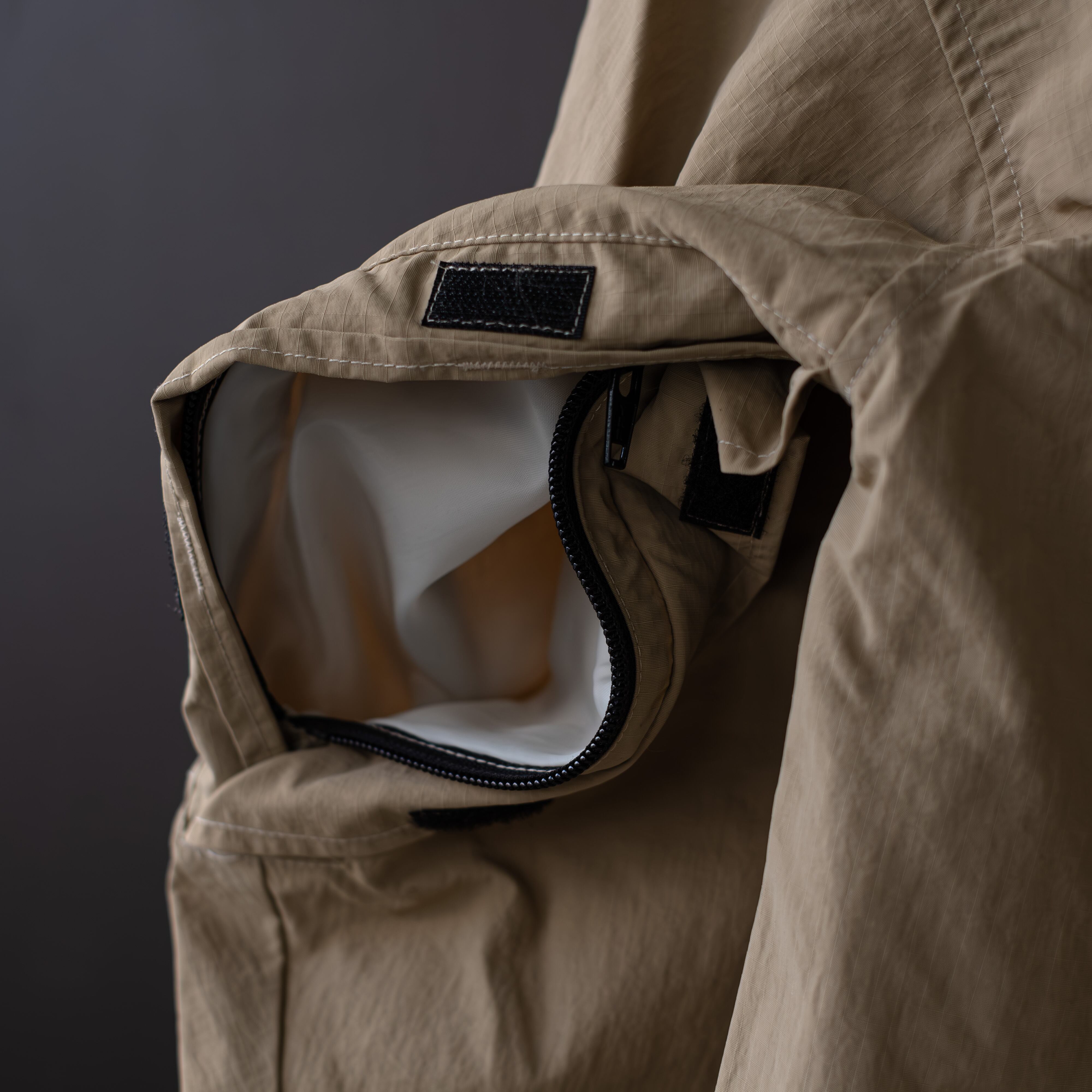 表地はクラシックでコットンライクなナイロン、裏地にはメッシュを使用。
