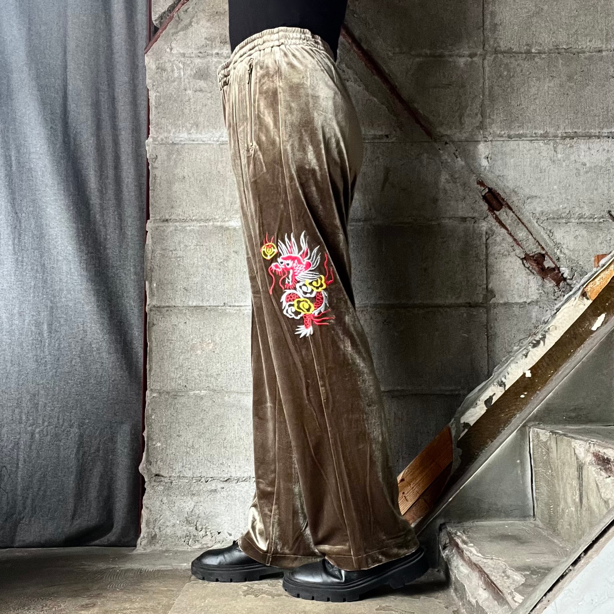 滑らかで肌触り抜群なベロア生地を使用したトラックパンツ。