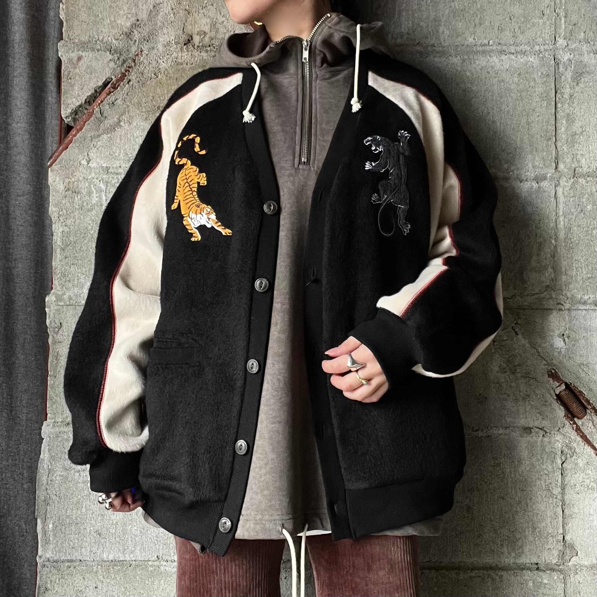 スーベニアジャケットに見られるような刺繍を切り替えしたありそうでなかったカーディガン。