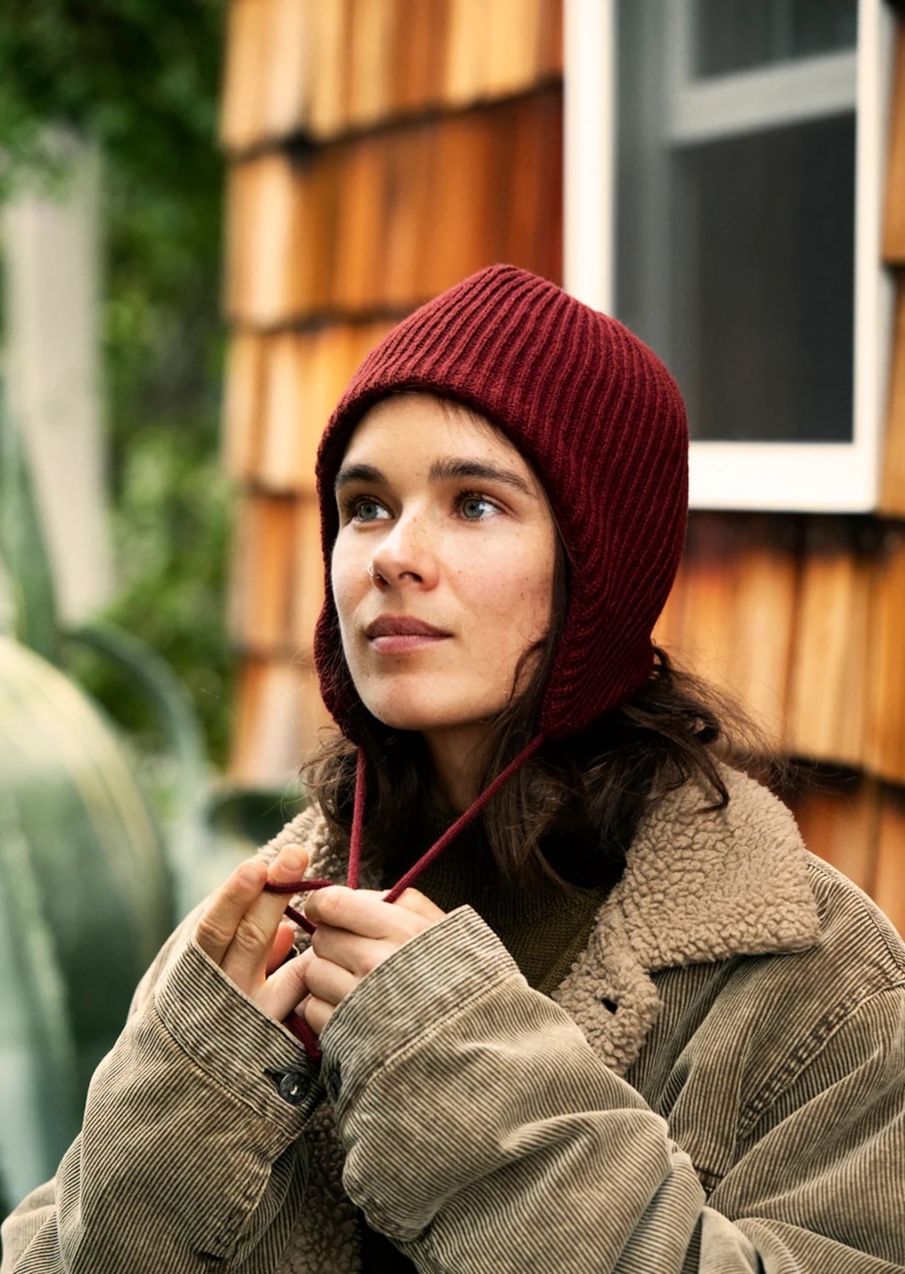 かわいらしいシルエットながら、シンプルな1×1リブで編み立てることで、年齢や性別を問わずかぶりやすいデザインに仕上げました。
