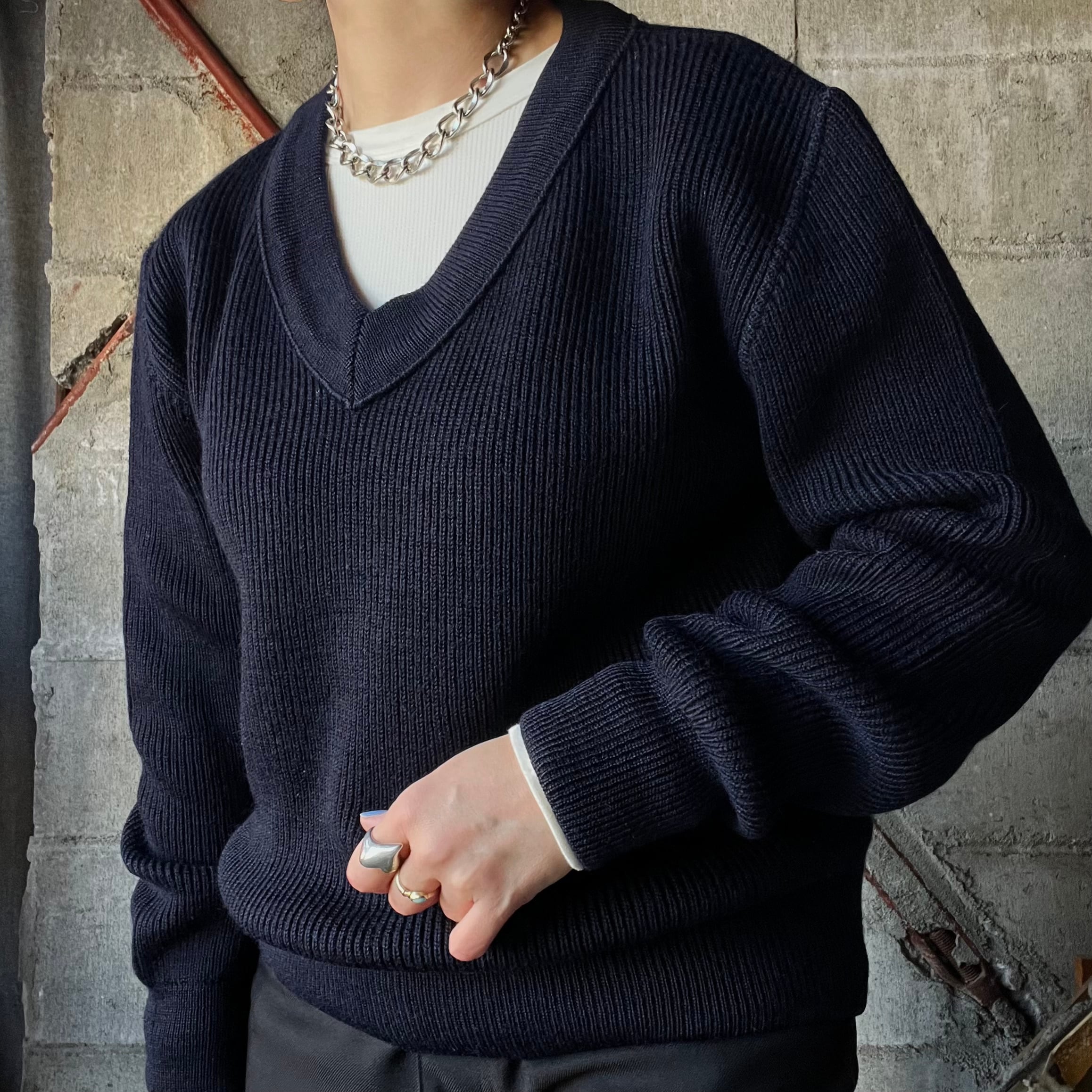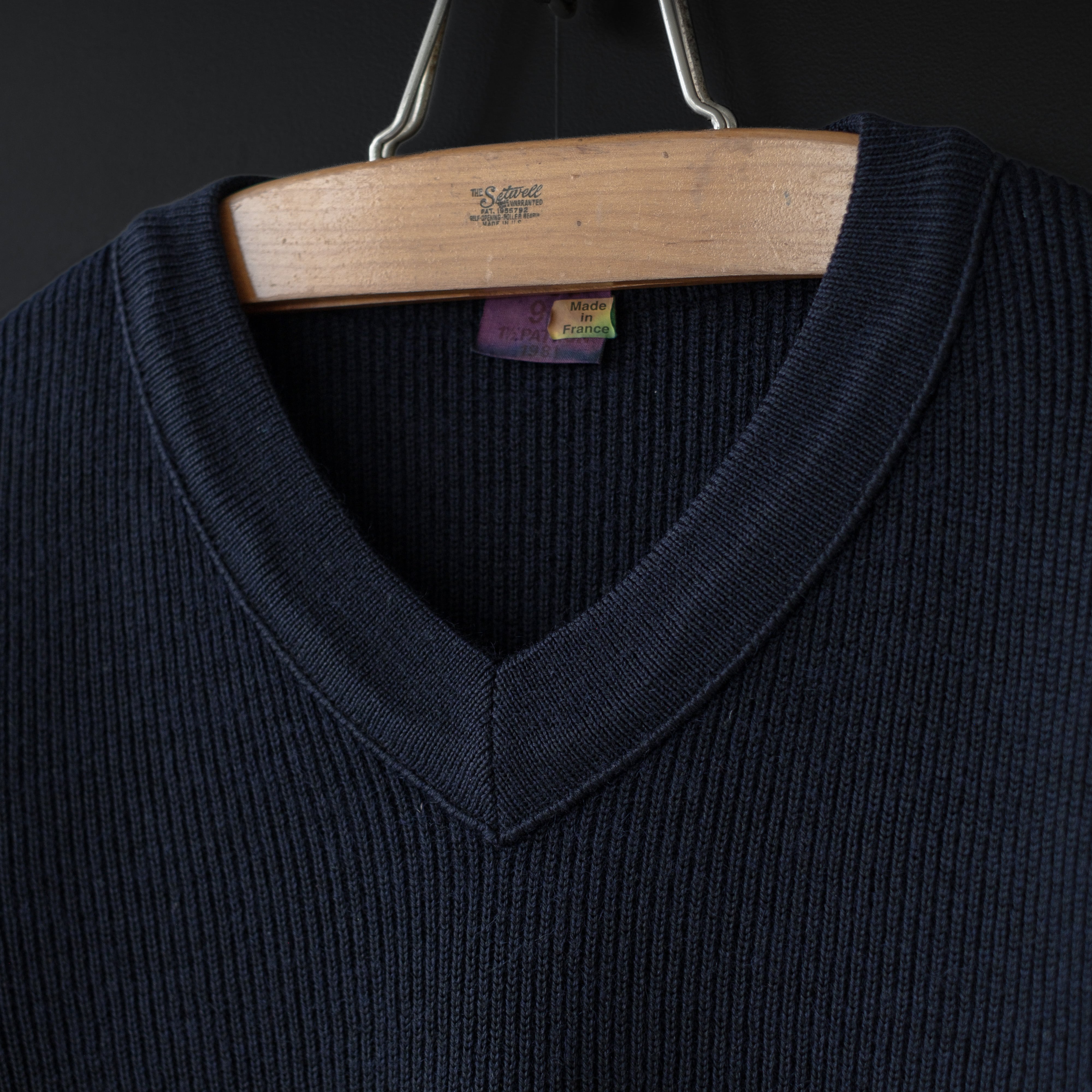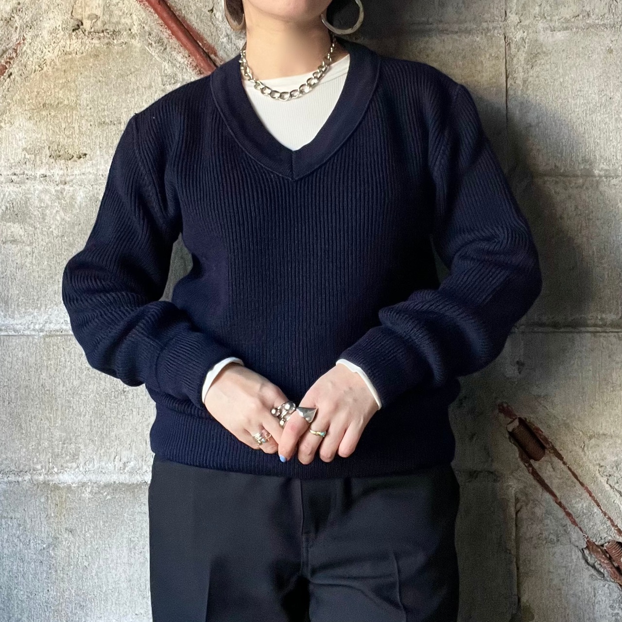 適度な深さのVネックで、そのままでもレイヤーしても。