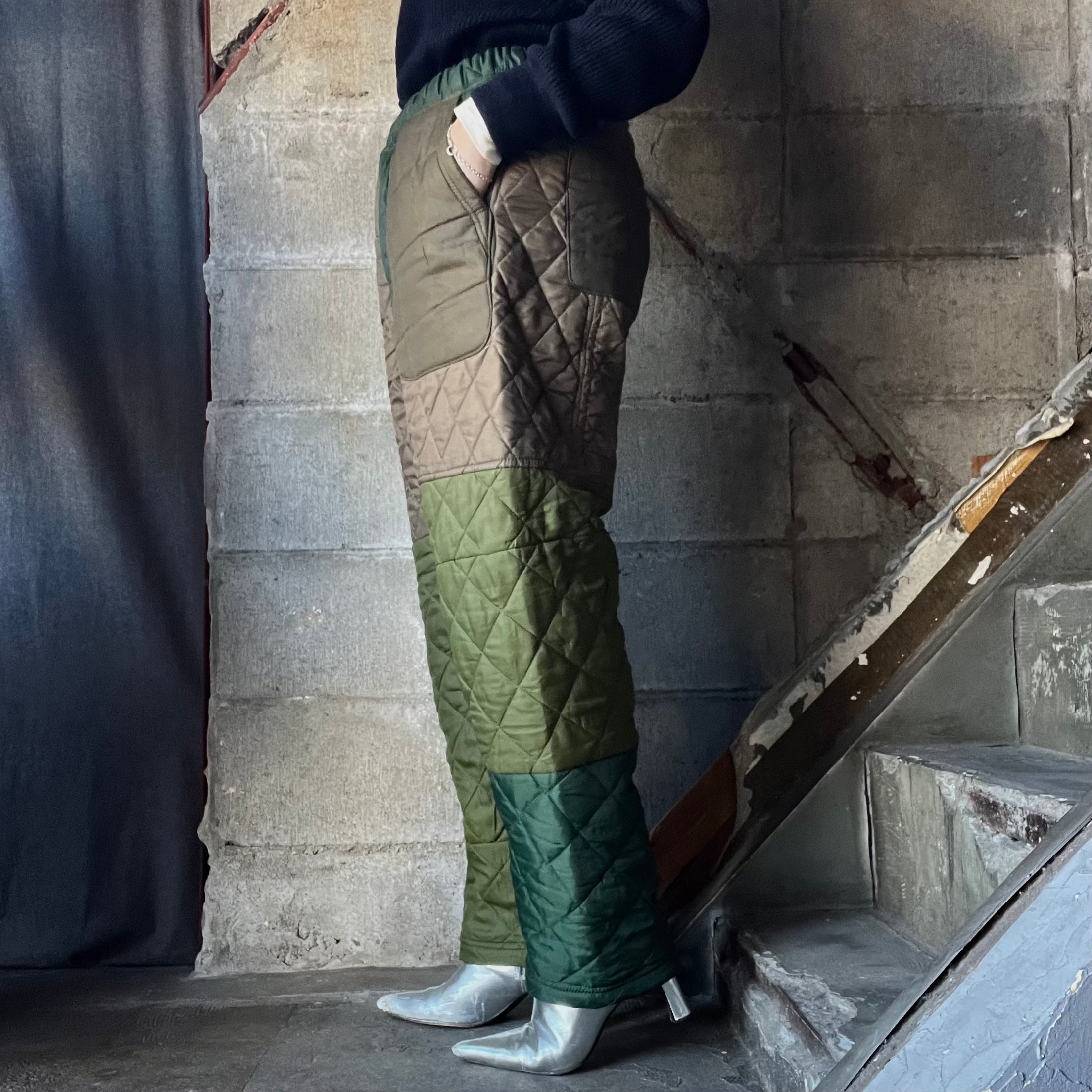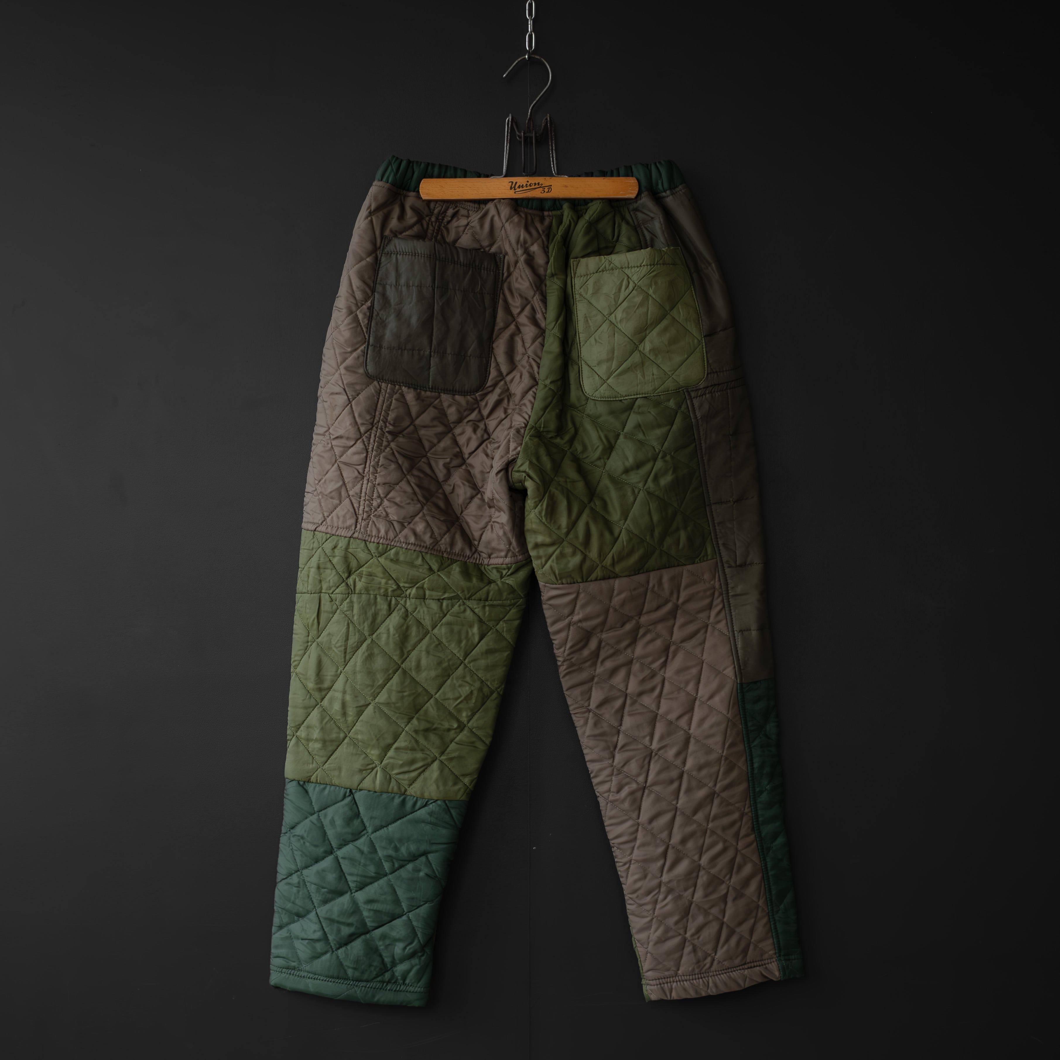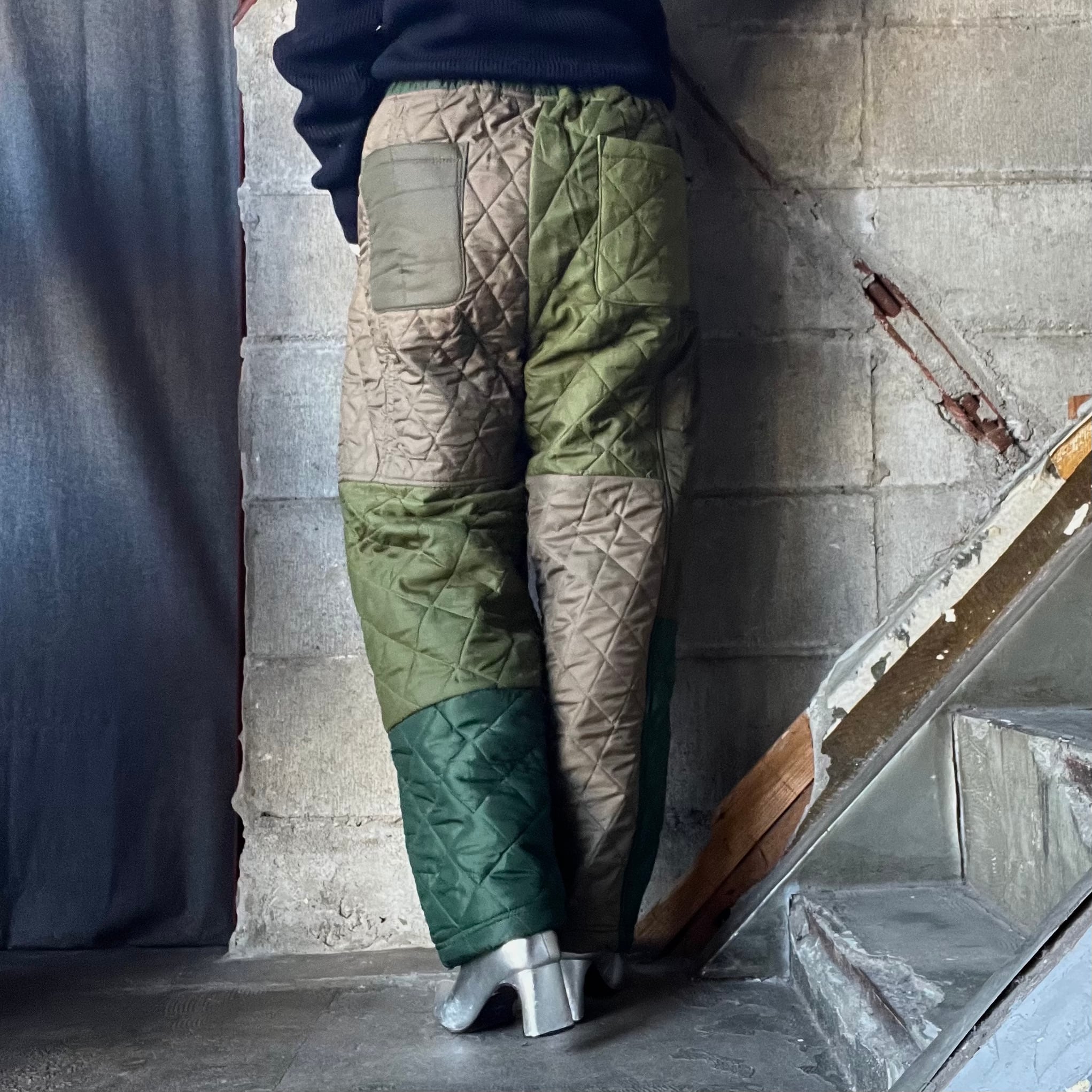 ミリタリーなどによく見られるライナージャケットやライナーパンツを解体して、イージーパンツに再構築。