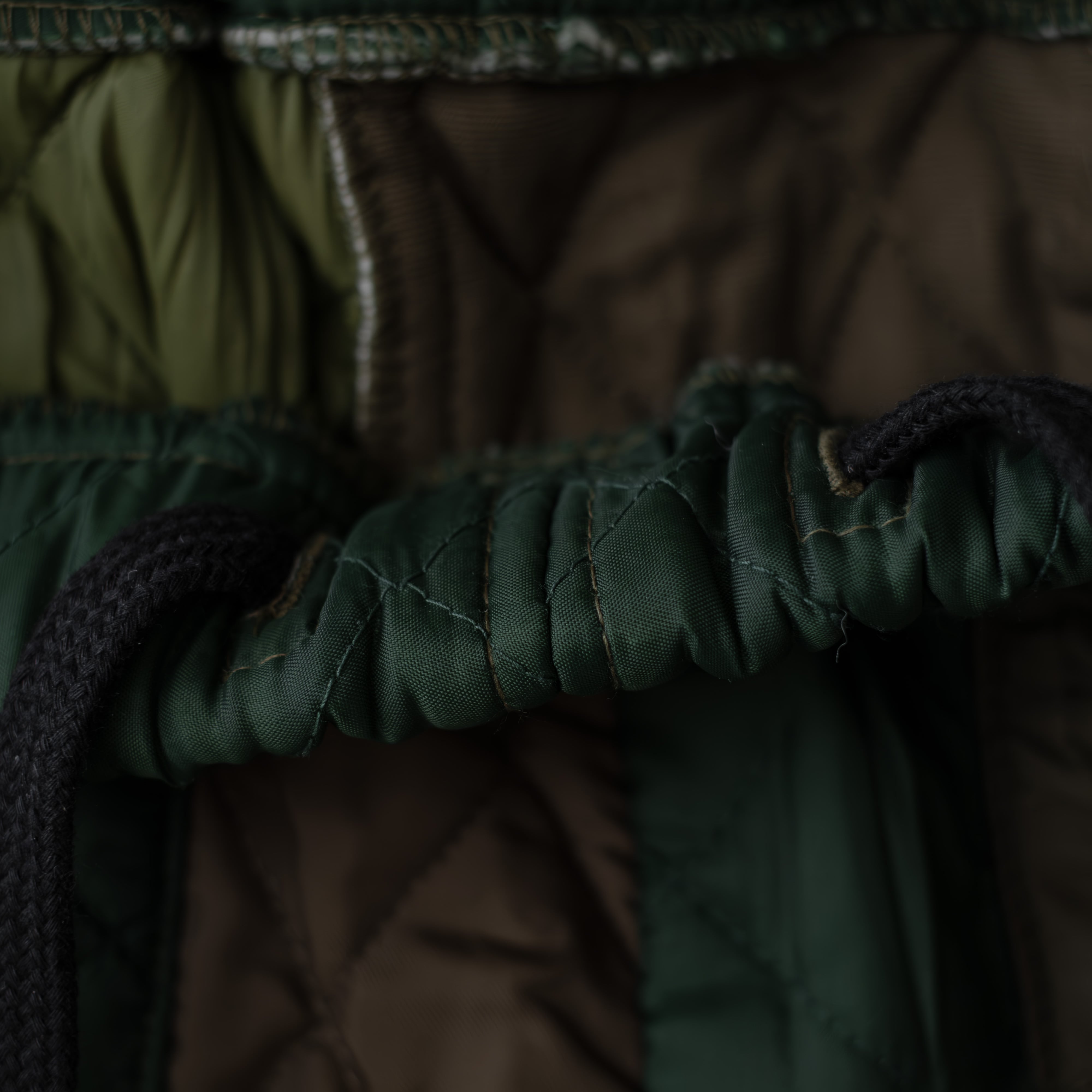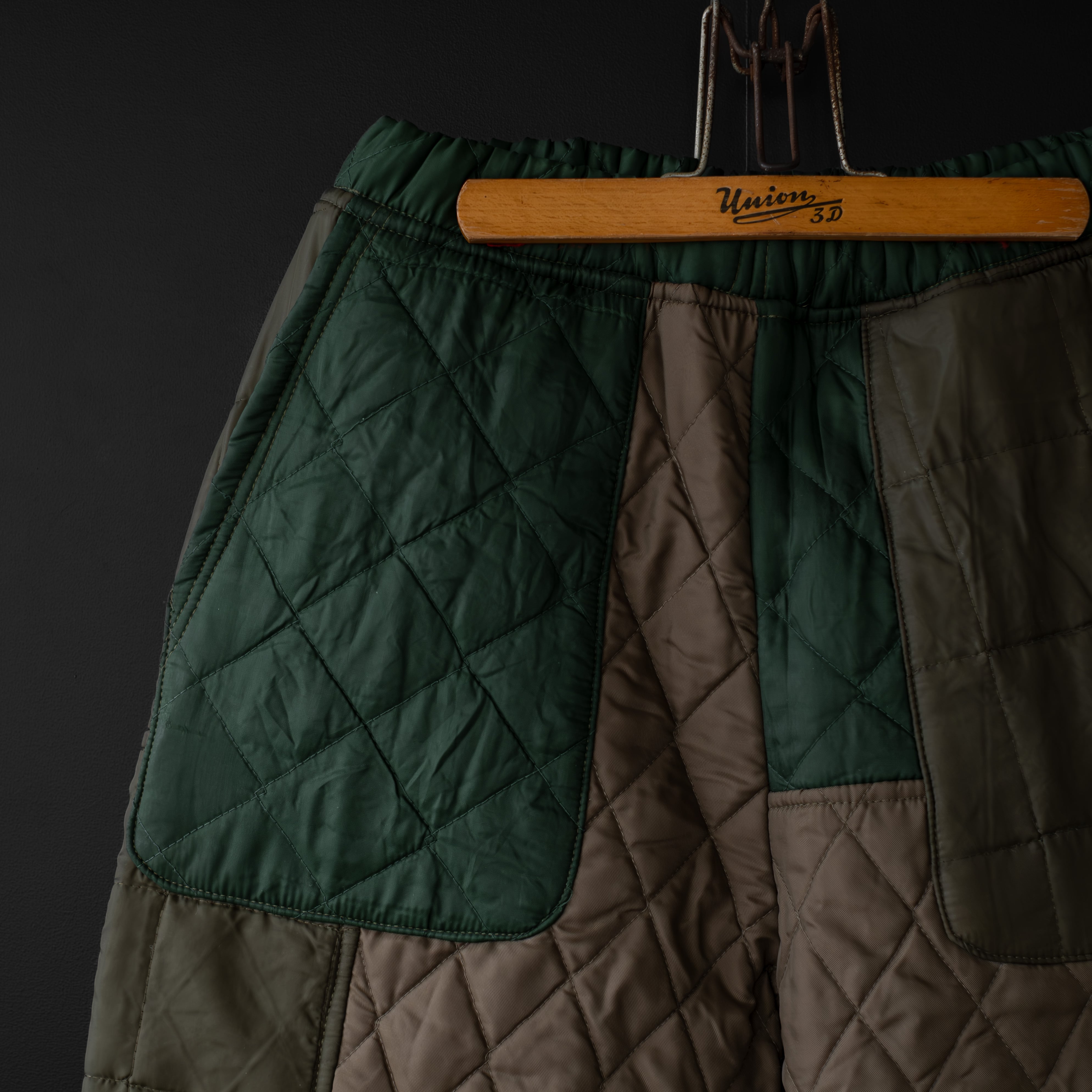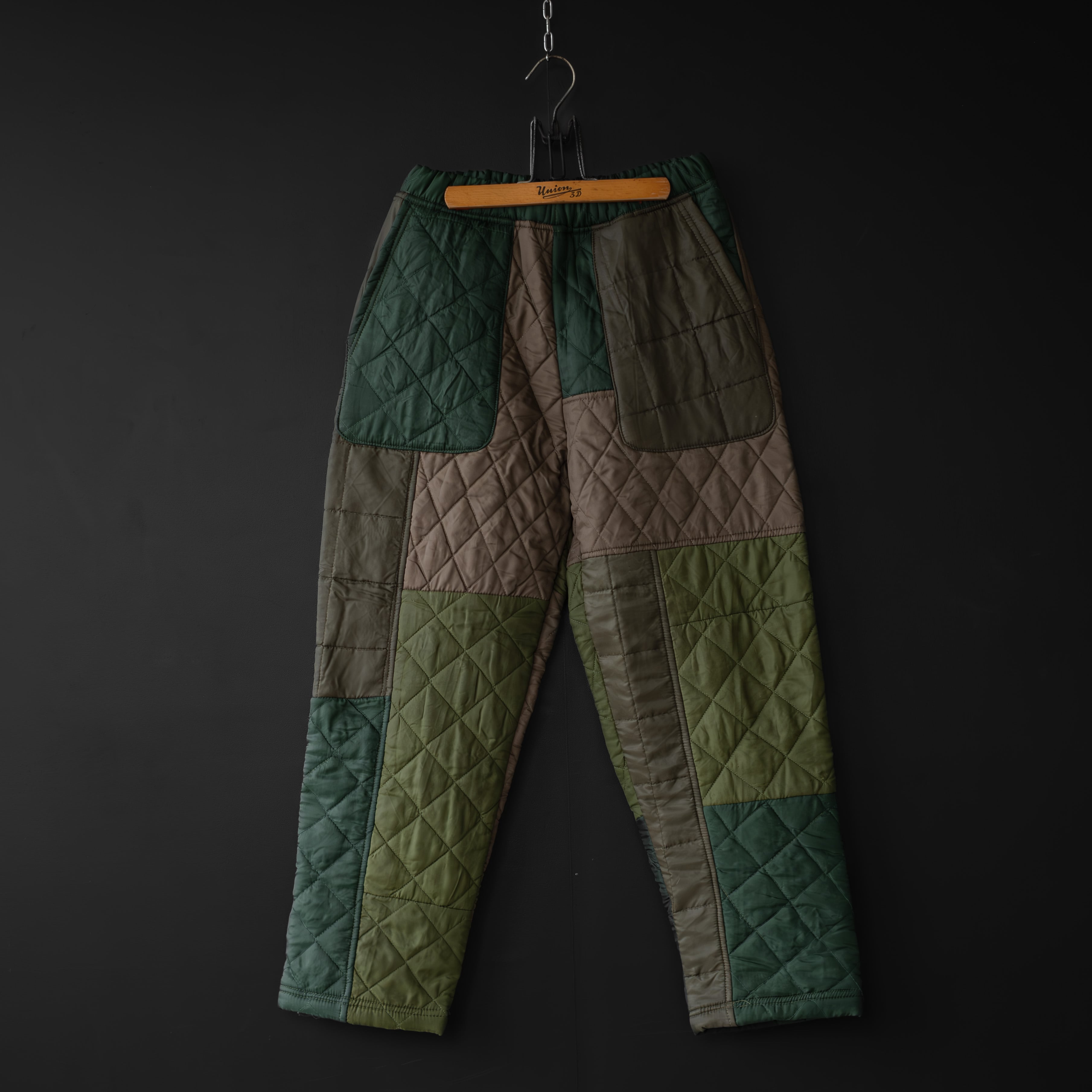 ミリタリーなどによく見られるライナージャケットやライナーパンツを解体して、イージーパンツに再構築。