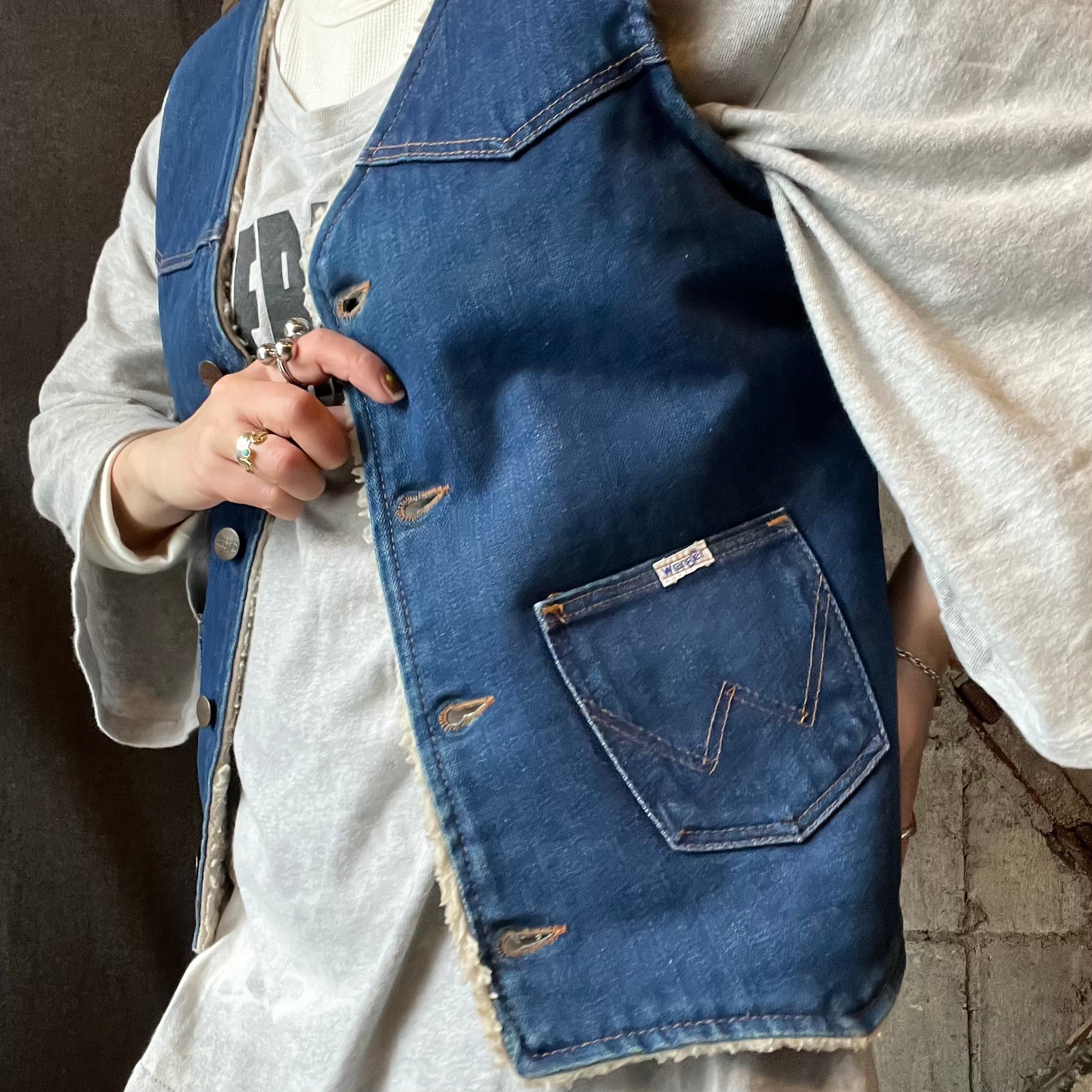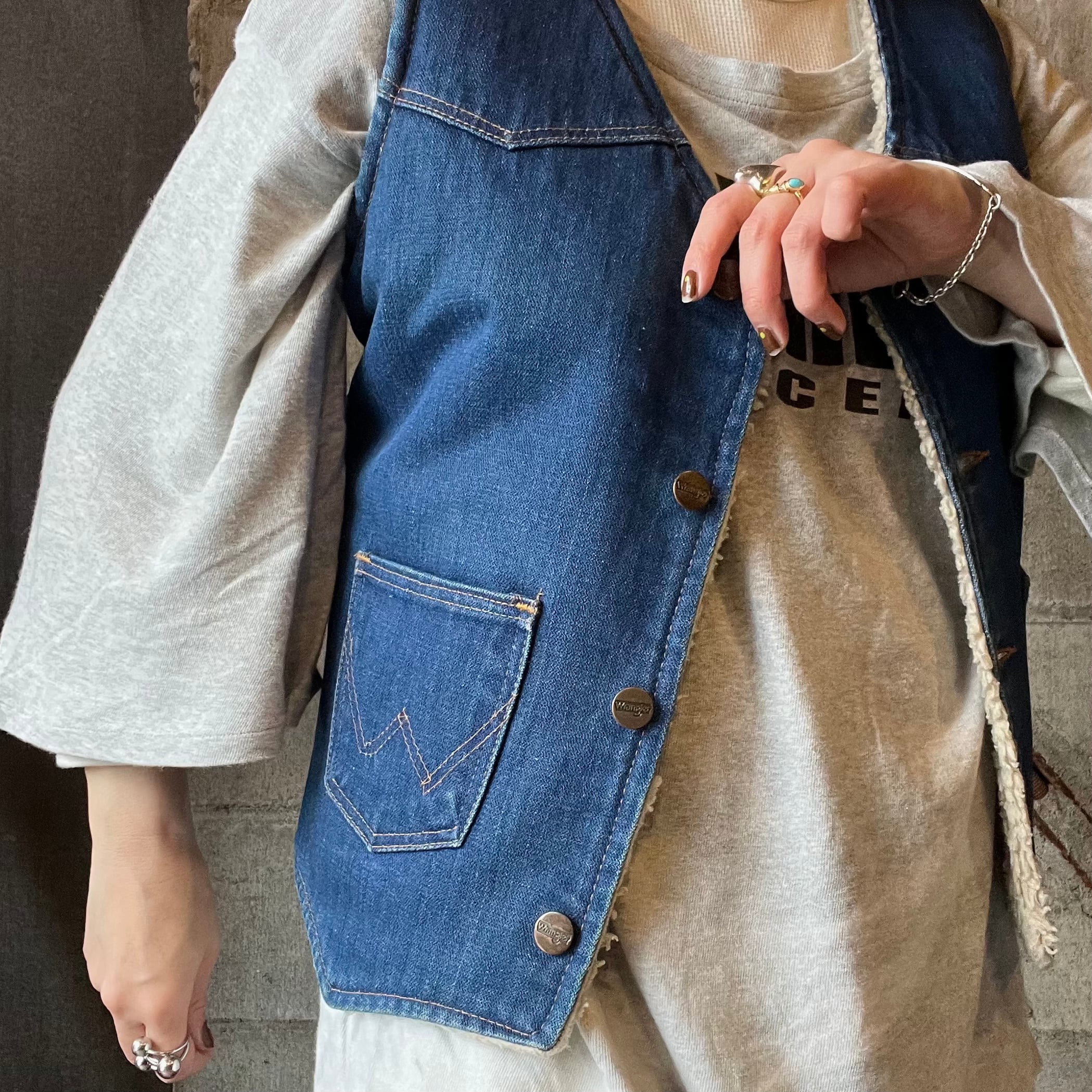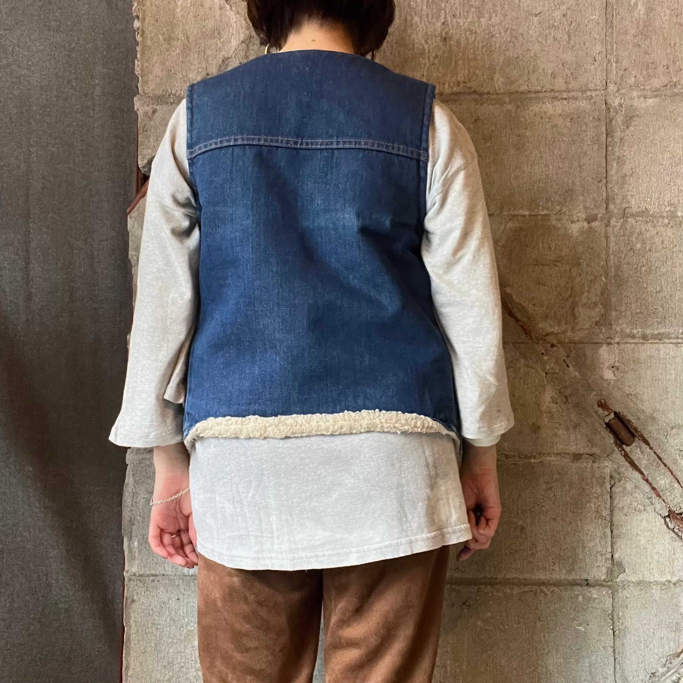 -used- 【WRANGLER】 denim boa vest (made in USA)