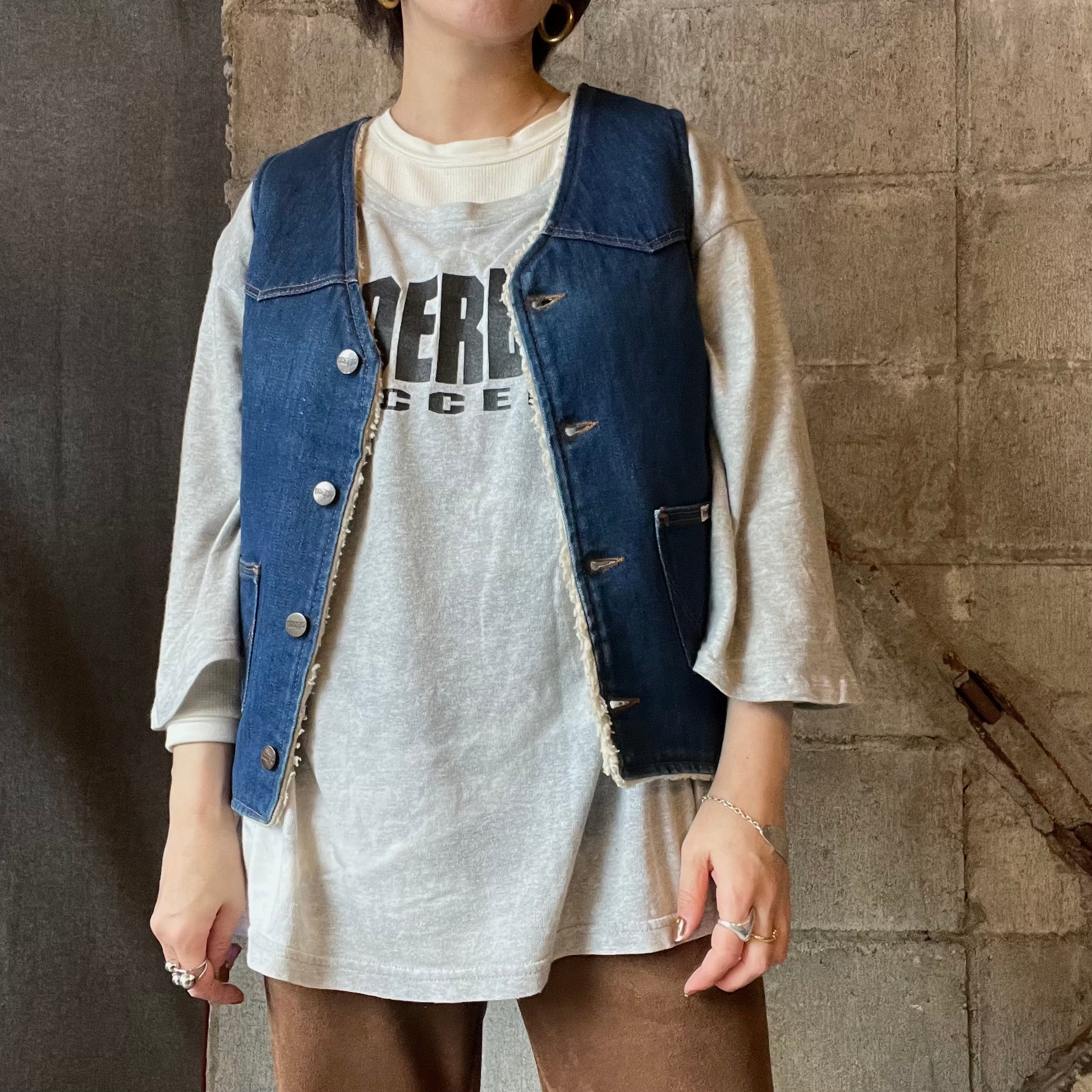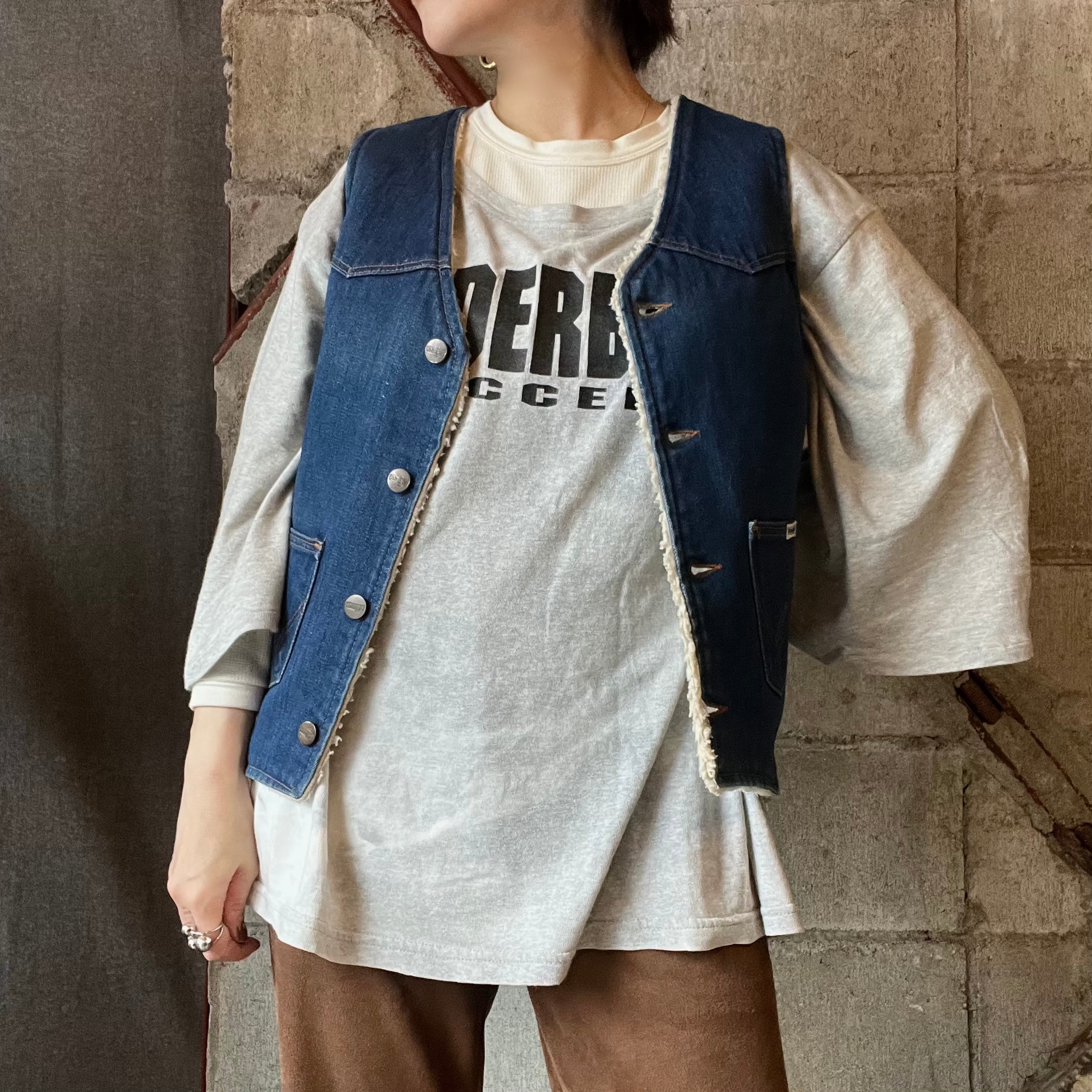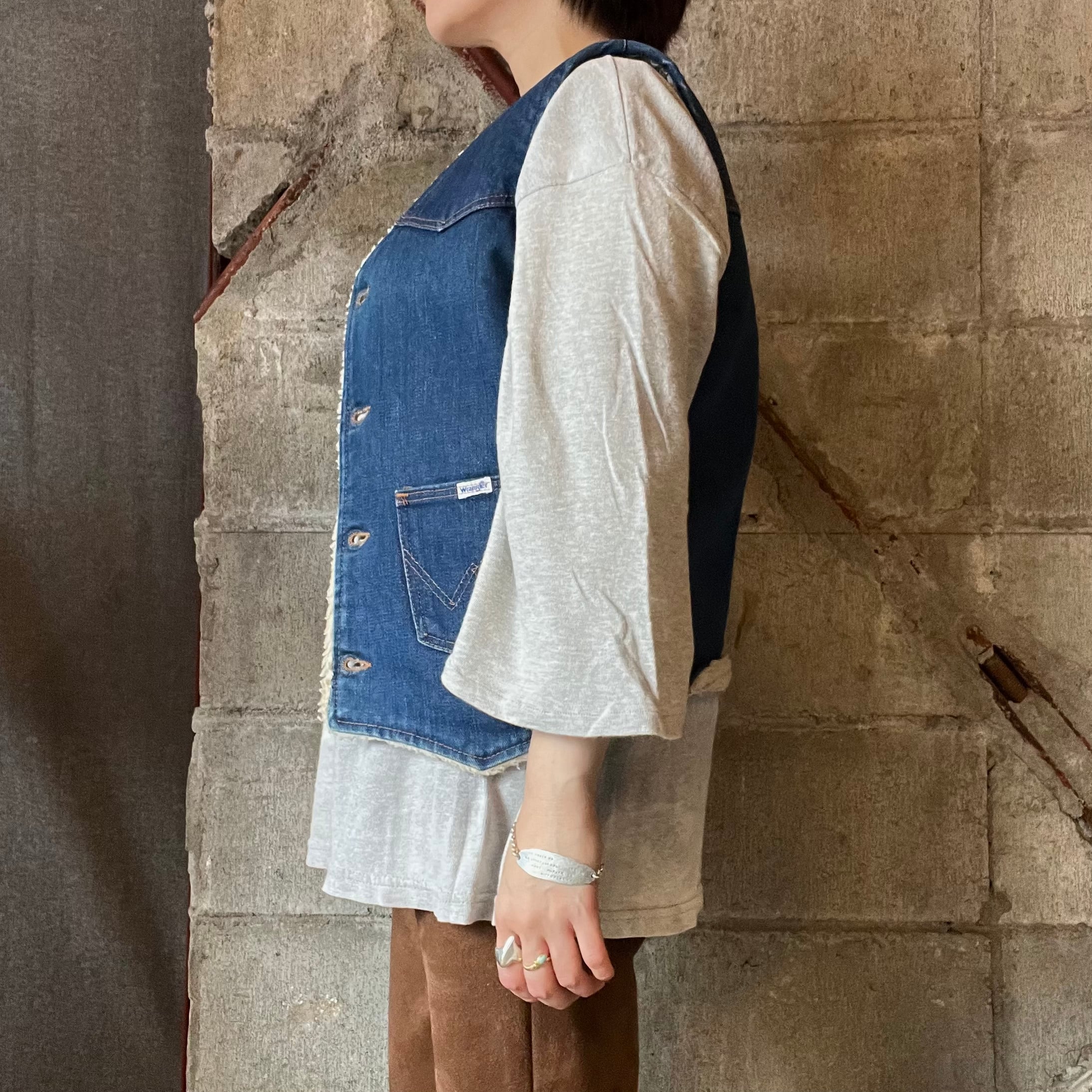 -used- 【WRANGLER】 denim boa vest (made in USA)