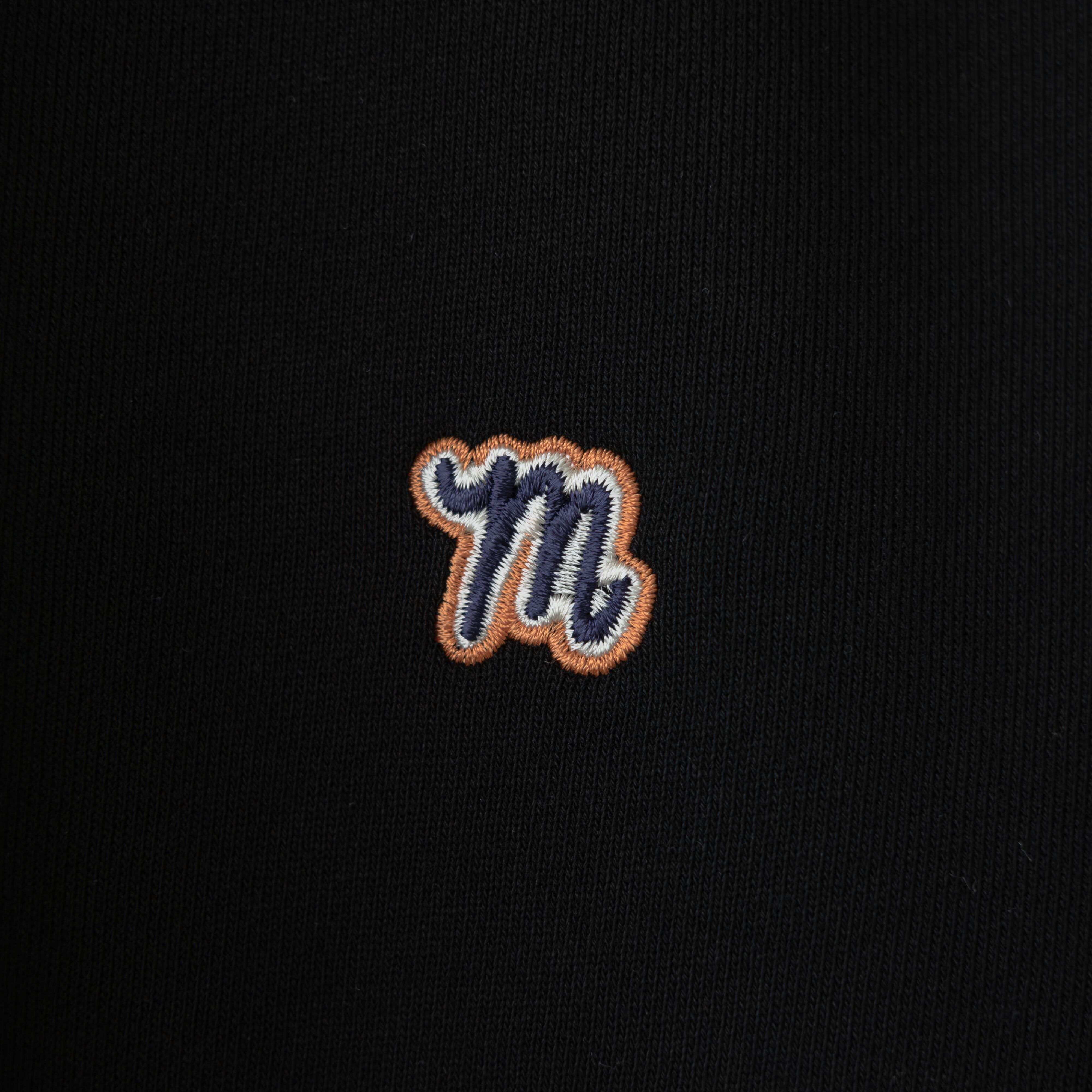 左胸と左袖先にブランドの頭文字「m」ワッペンをさりげなく配置。