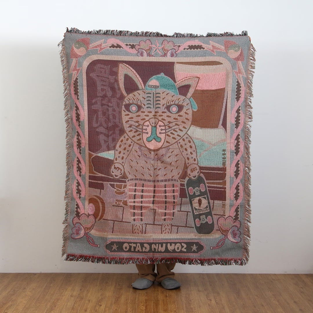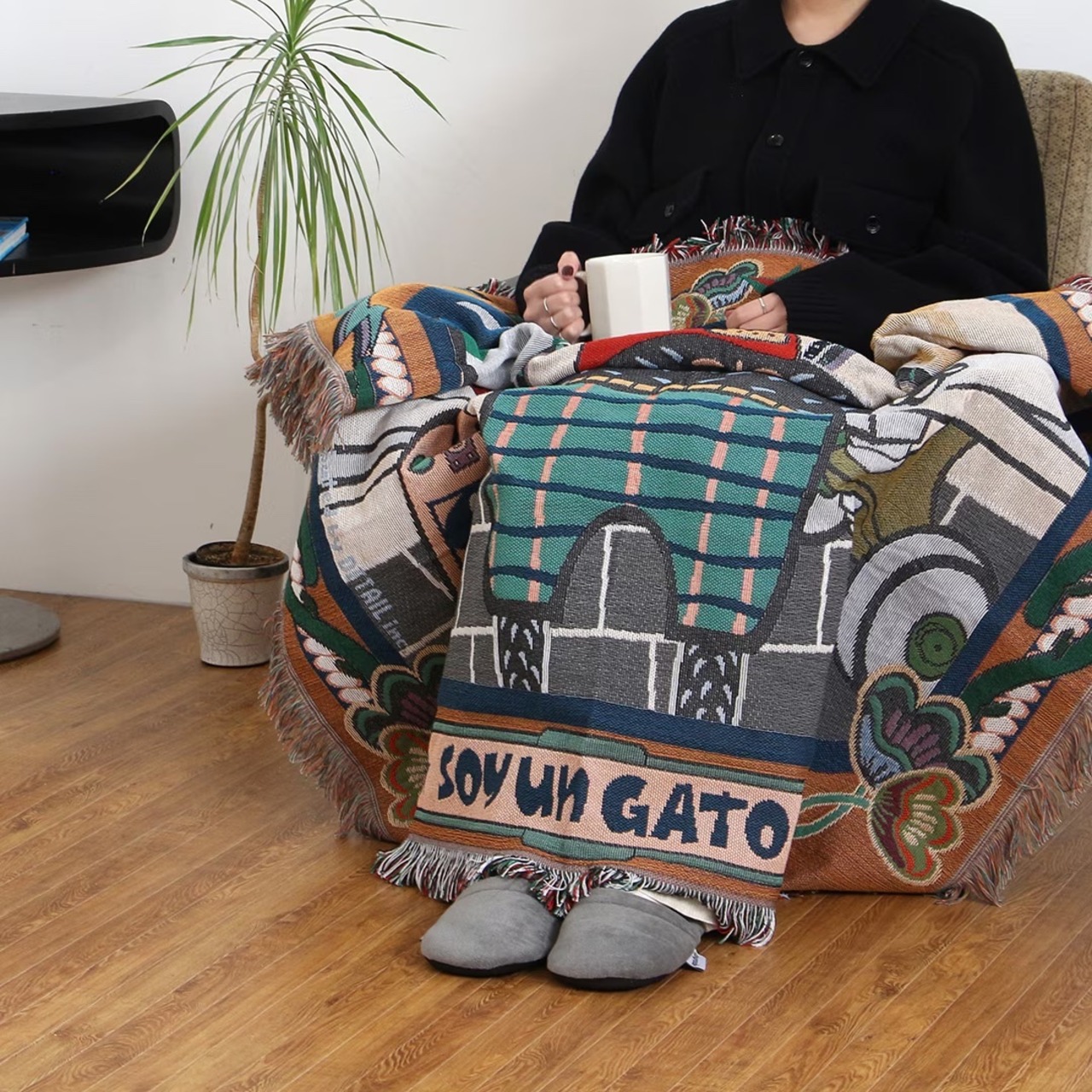 オアハカ スローケット "ブラック キャット" | 黒猫モチーフの通年使える大判ブランケット