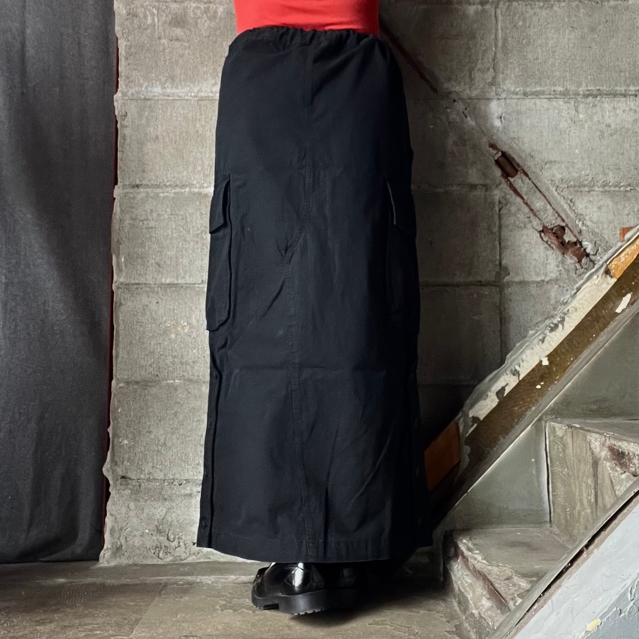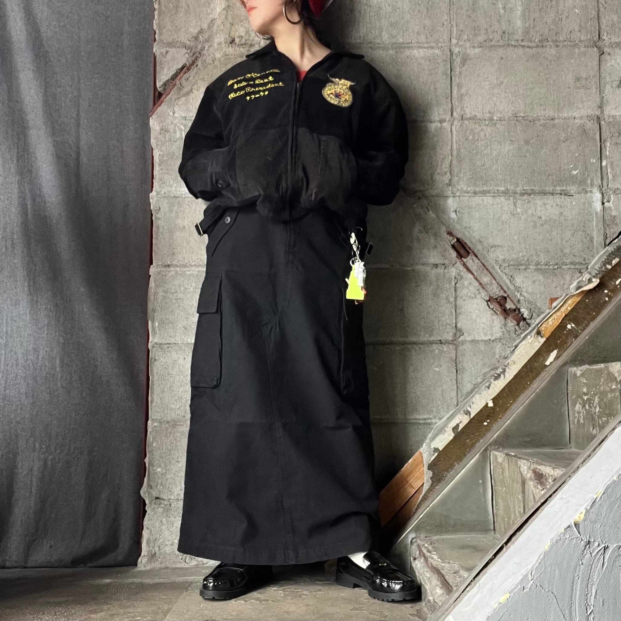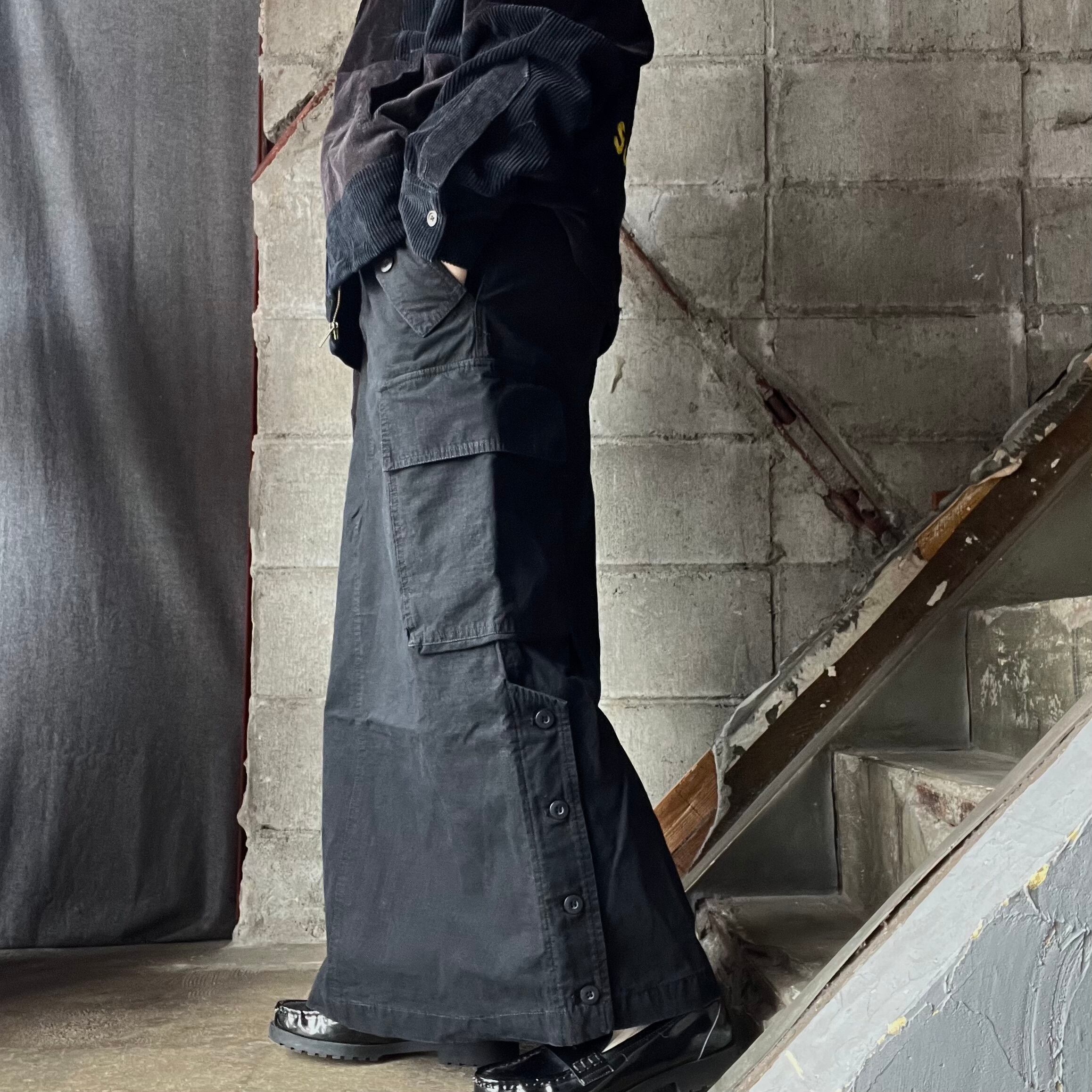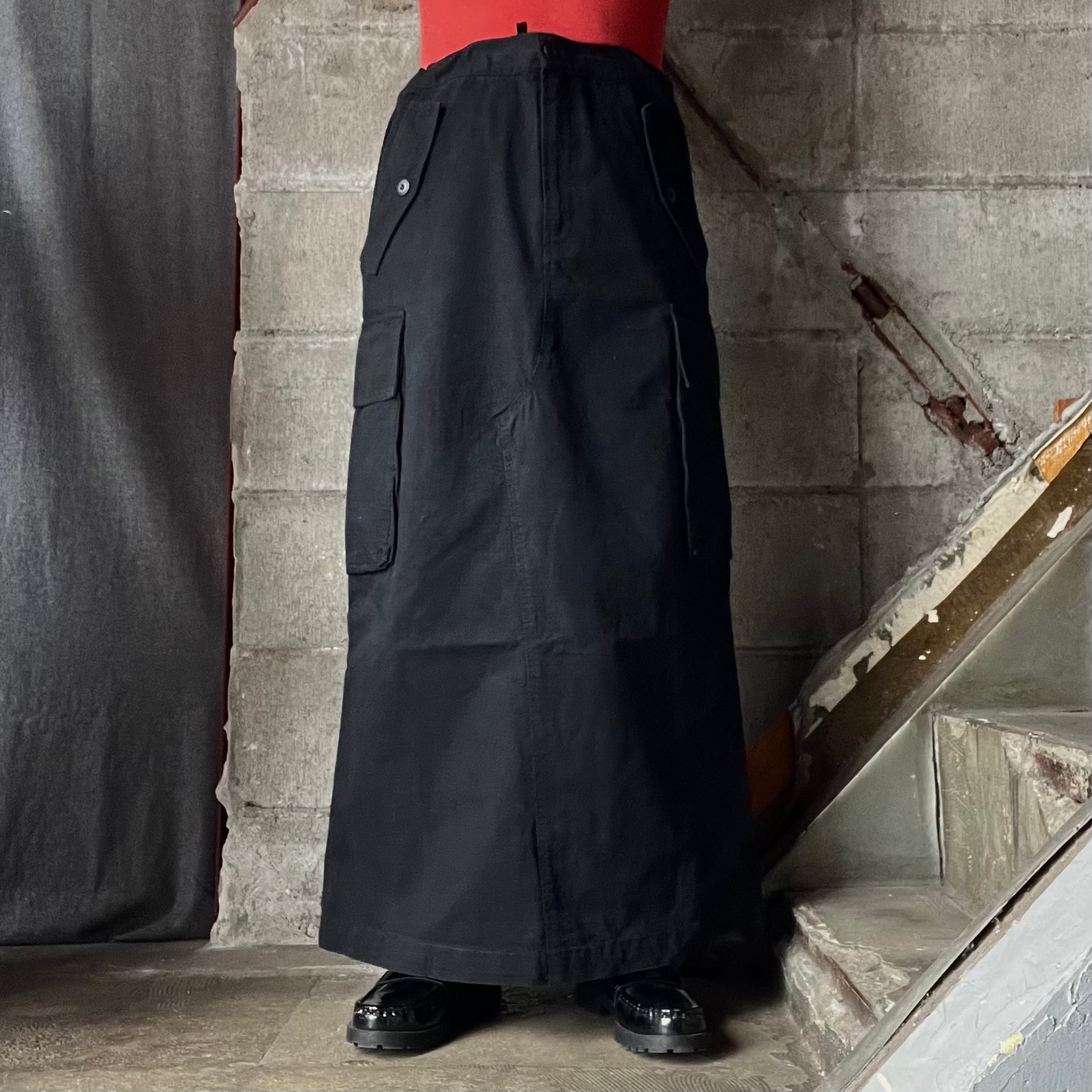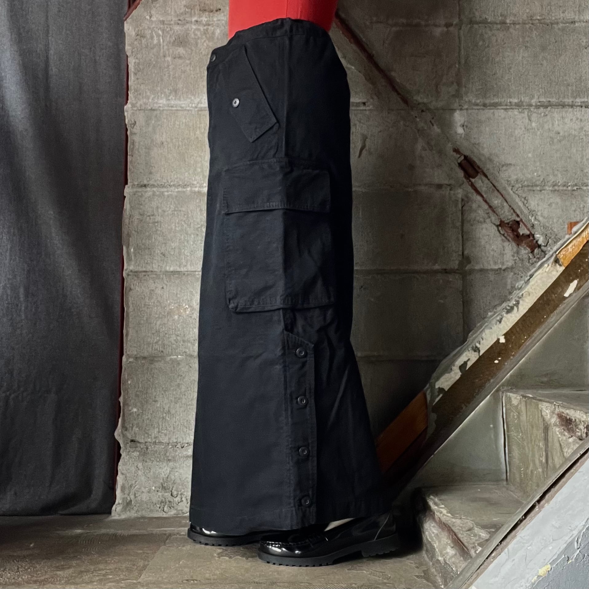 ミリタリーのオーバーパンツをスカートにリメイクしたイマージでデザイン。