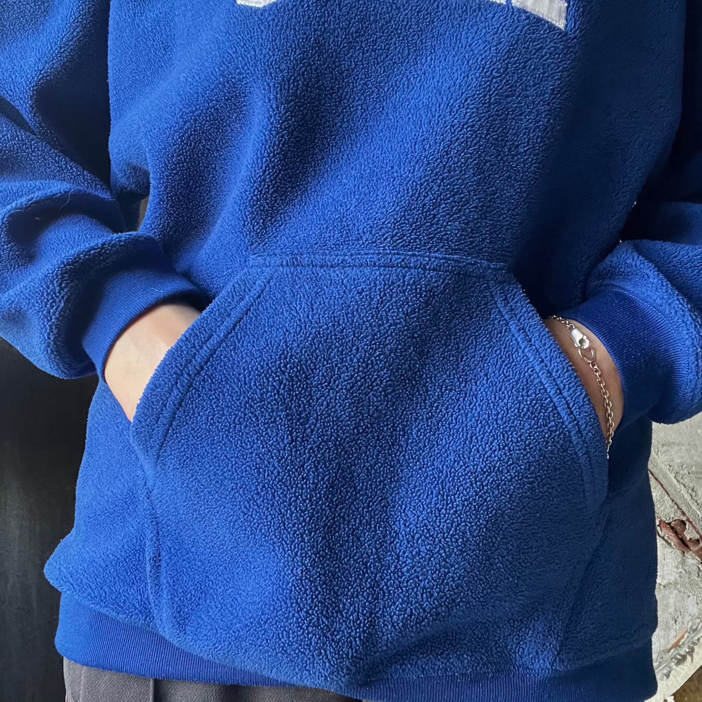 フリース素材のプルオーバーパーカー。