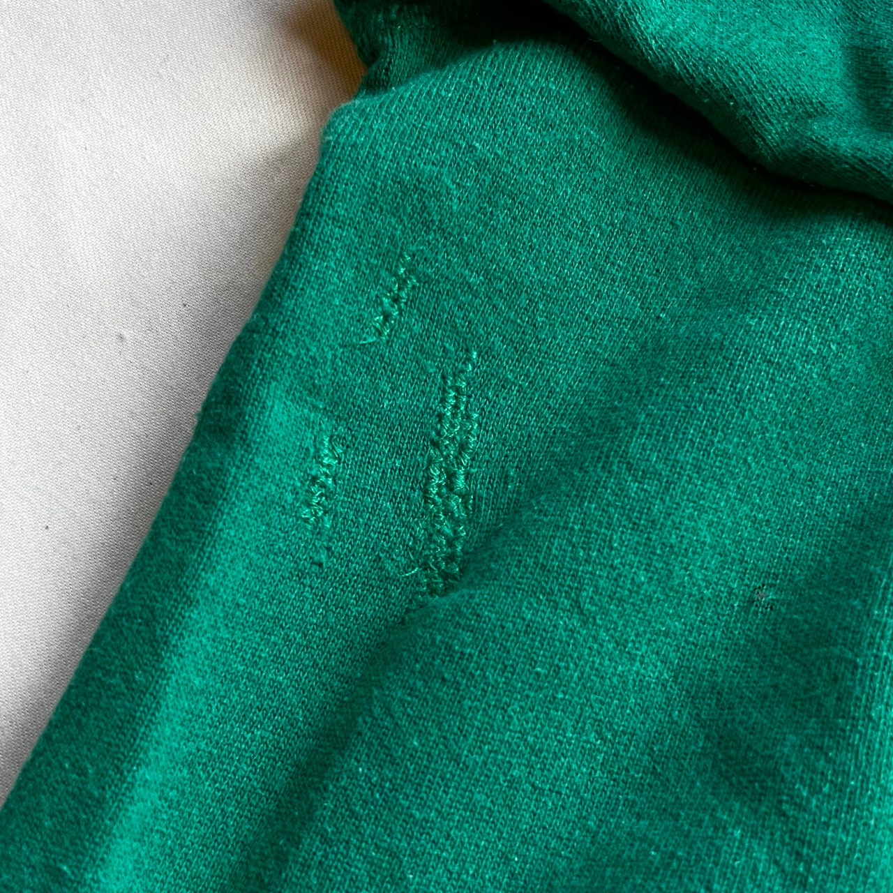 背中部分にリペア跡あり。前 / 裾内側部分にほつれあり。