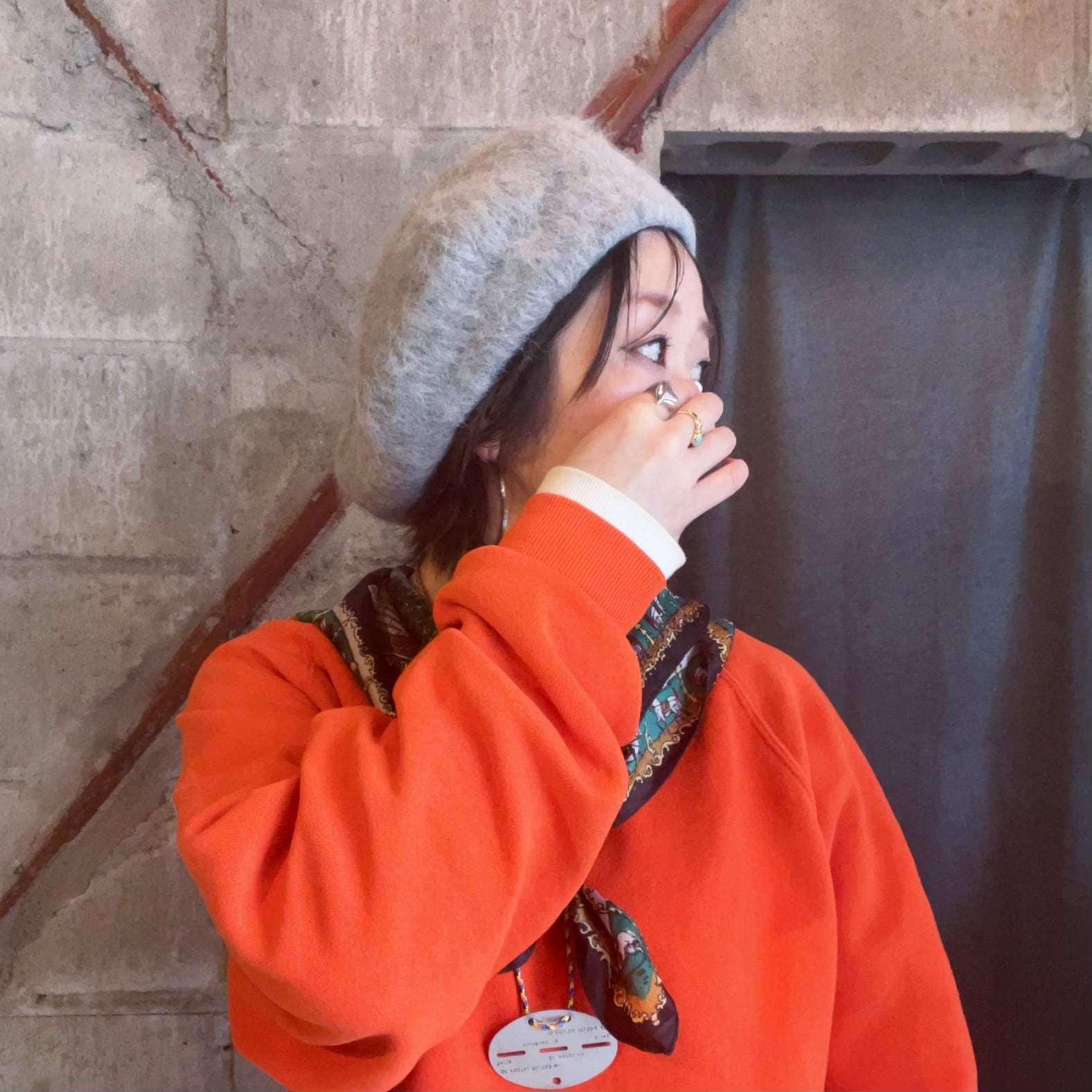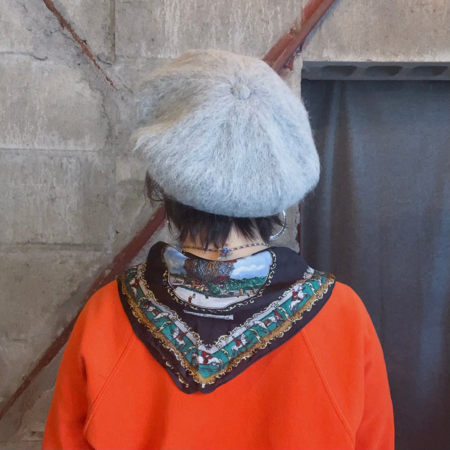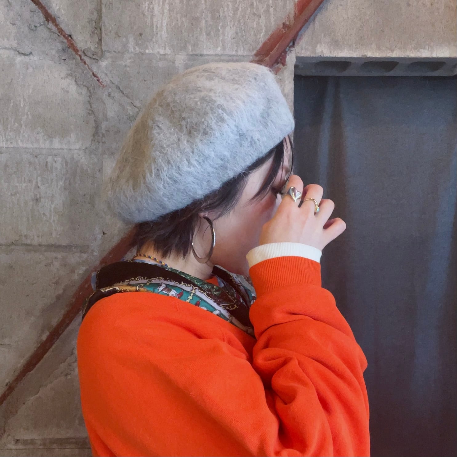 毛足の長いモヘア、アルパカ混のベレー帽。