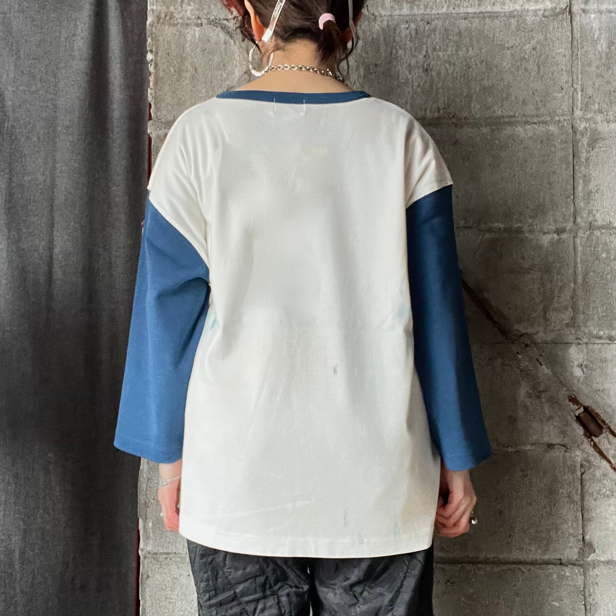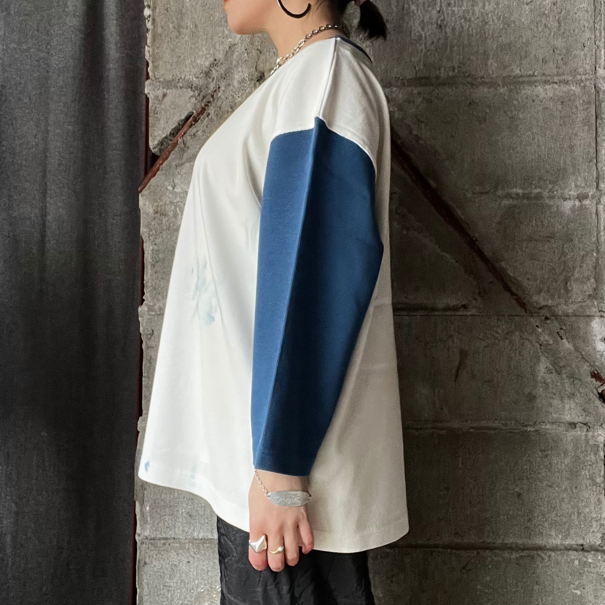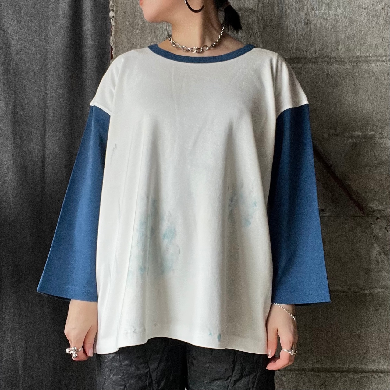 【Universal Style Wear】 dirty paint 3/4 tee (blue)