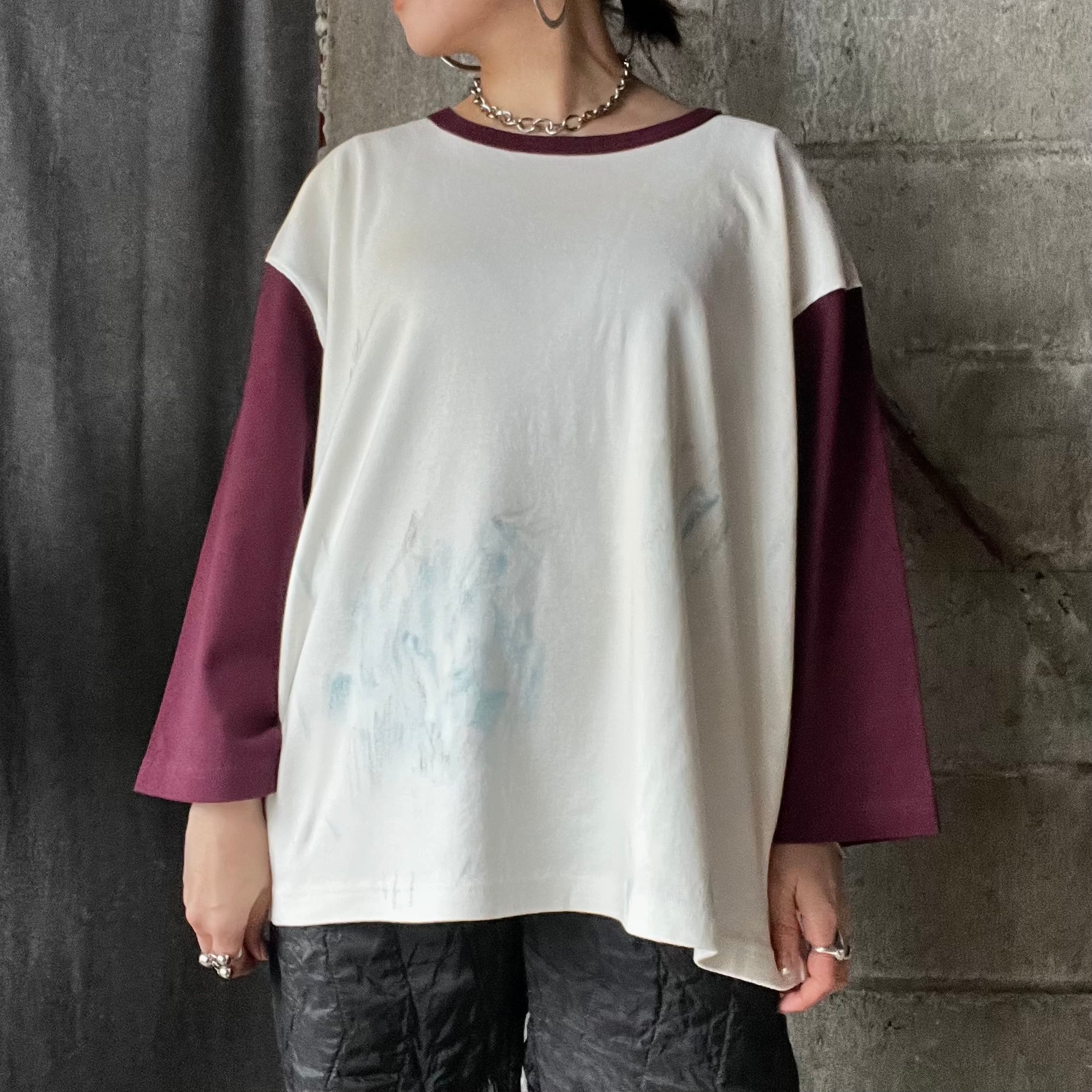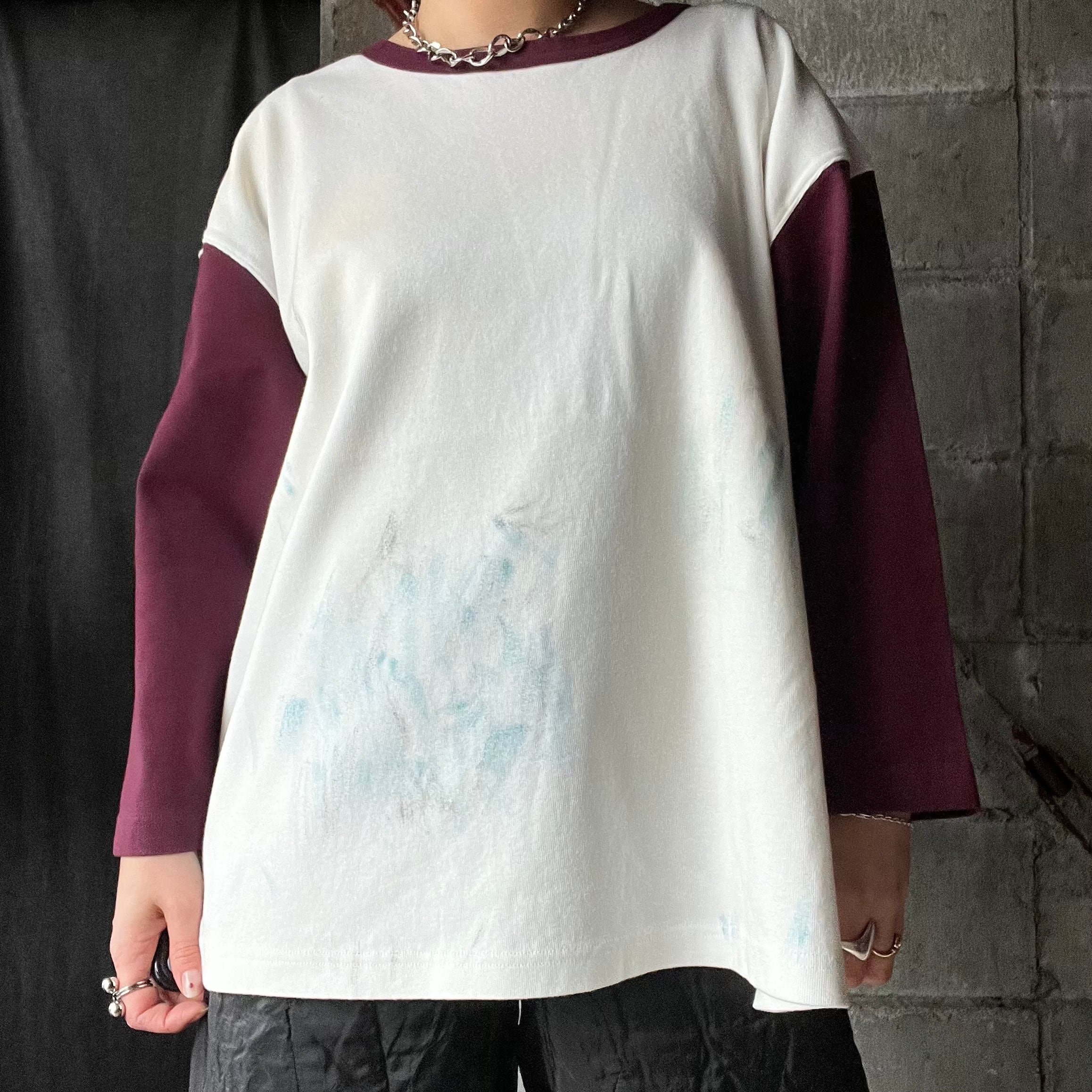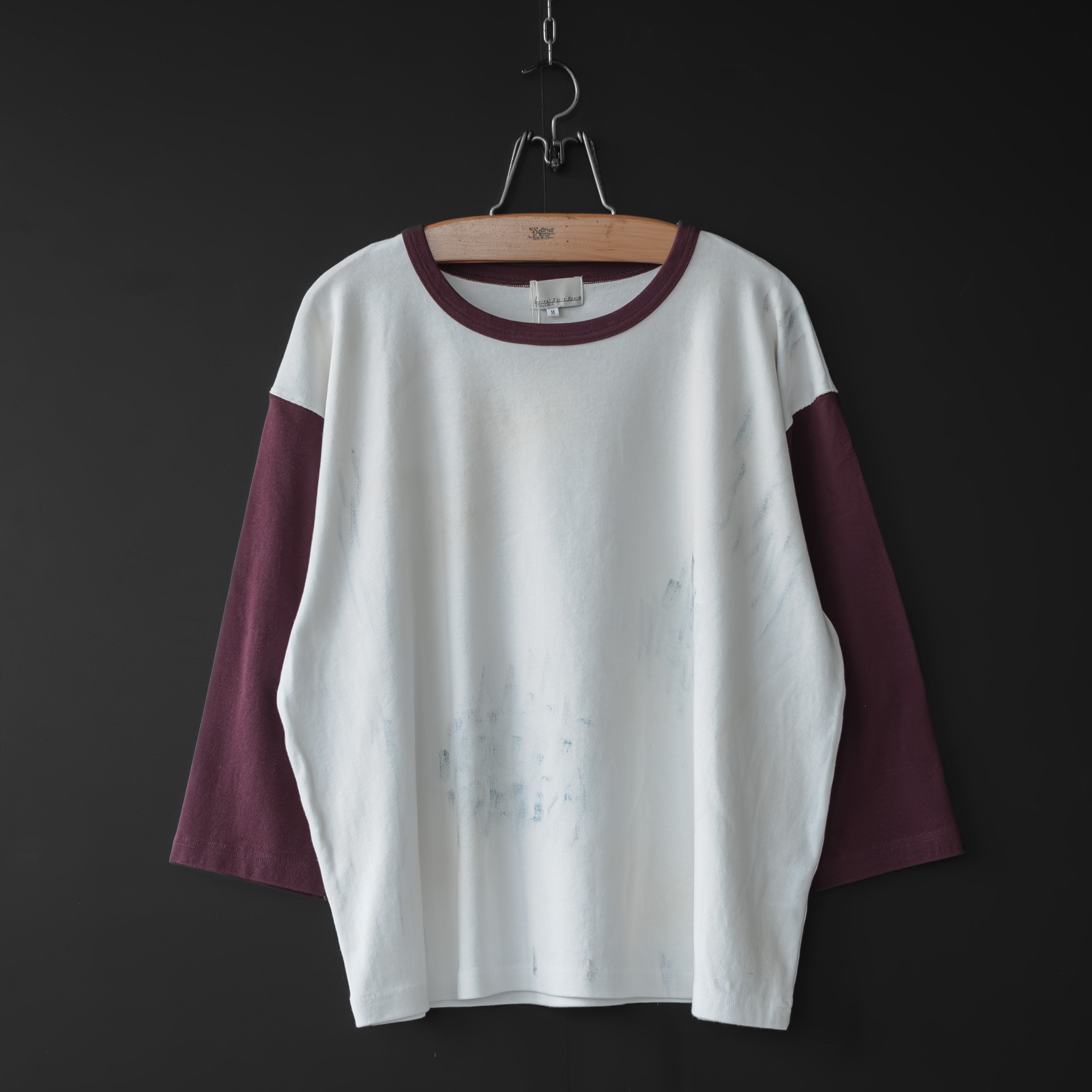 【Universal Style Wear】 dirty paint 3/4 tee (wine)