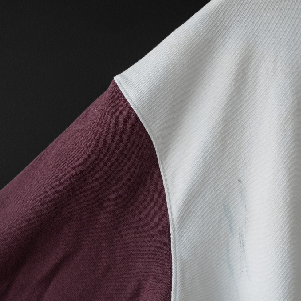 ラグランに見せかけてセットインの切り替え7分Tシャツ。
