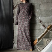 【HOLIDAY】 super rib padded shoulder l/s dress (flower / charcoal)