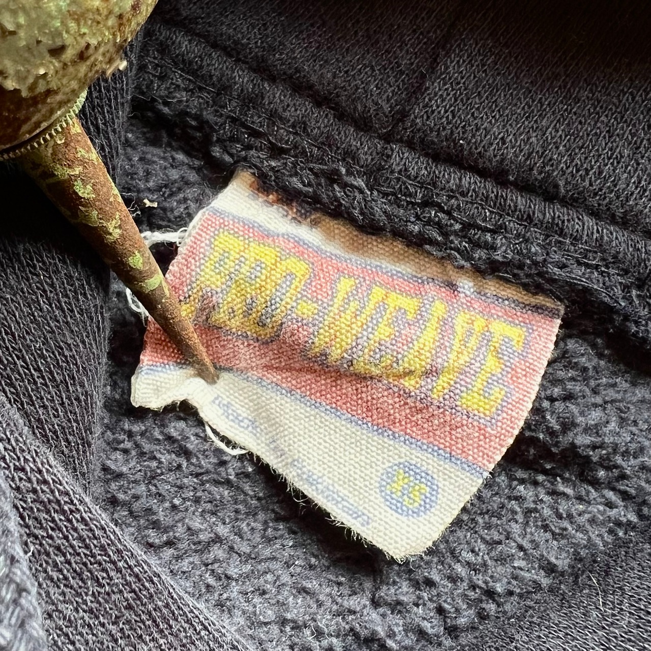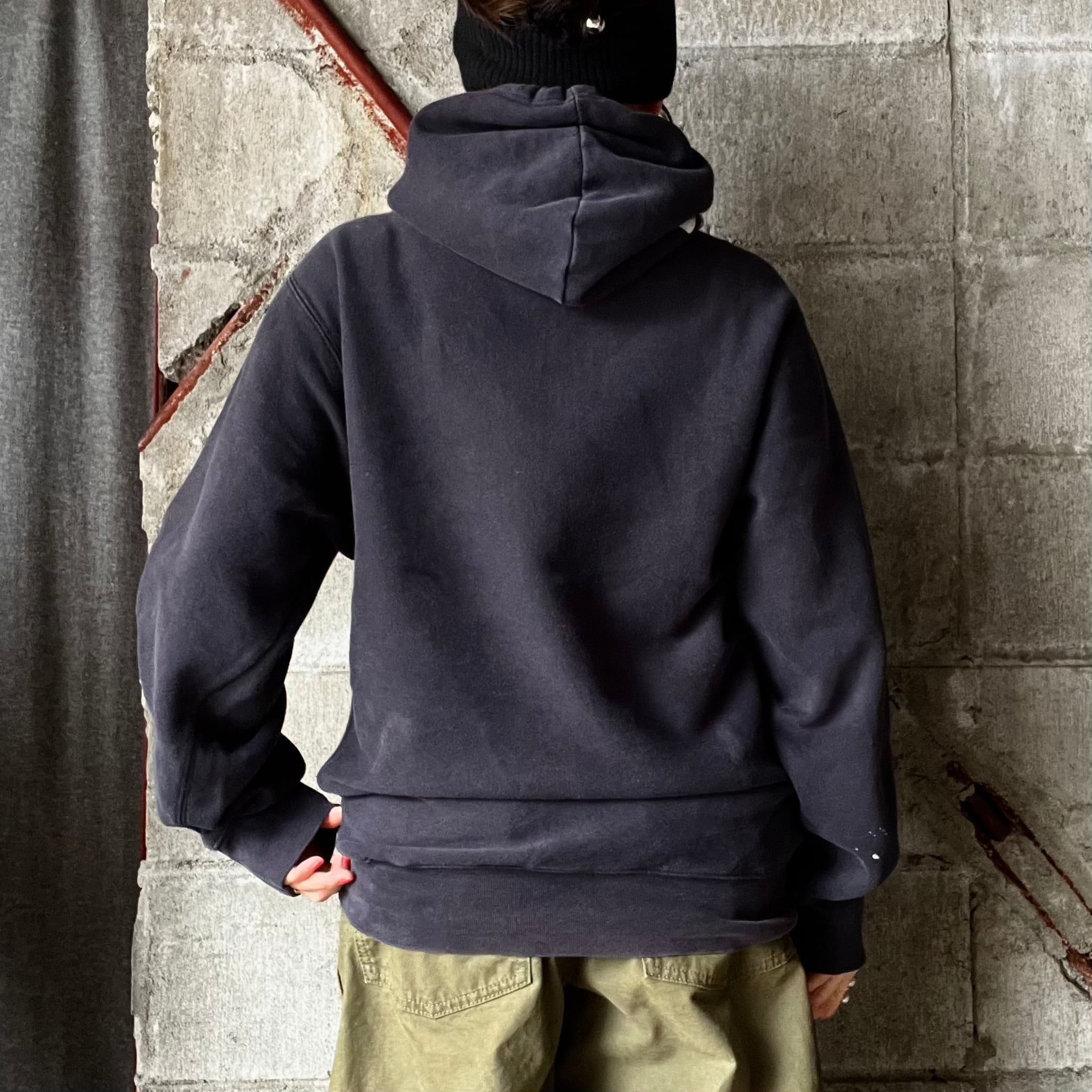 しっかりめの生地感のボディ。袖部分のペンキのような汚れあり。