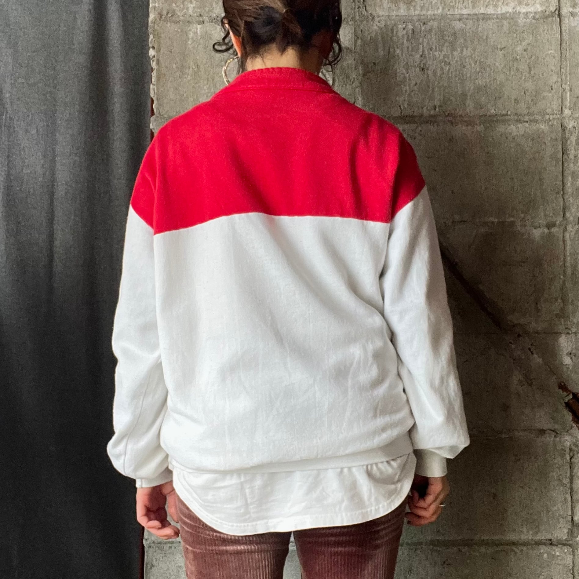 ハーフジップのスウェットプルオーバー。