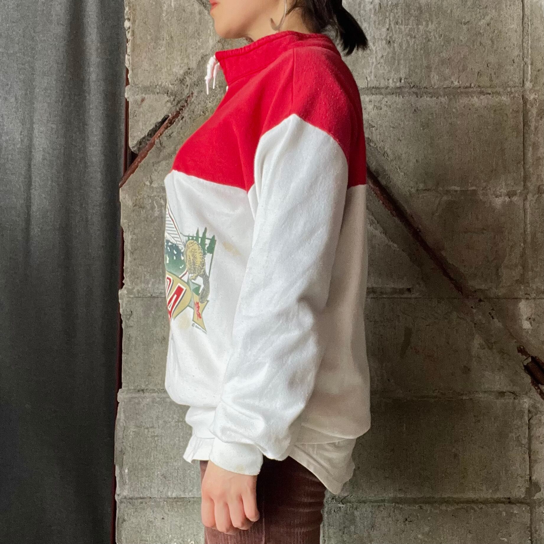 古着 プリント ハーフ ジップ スウェット プルオーバー