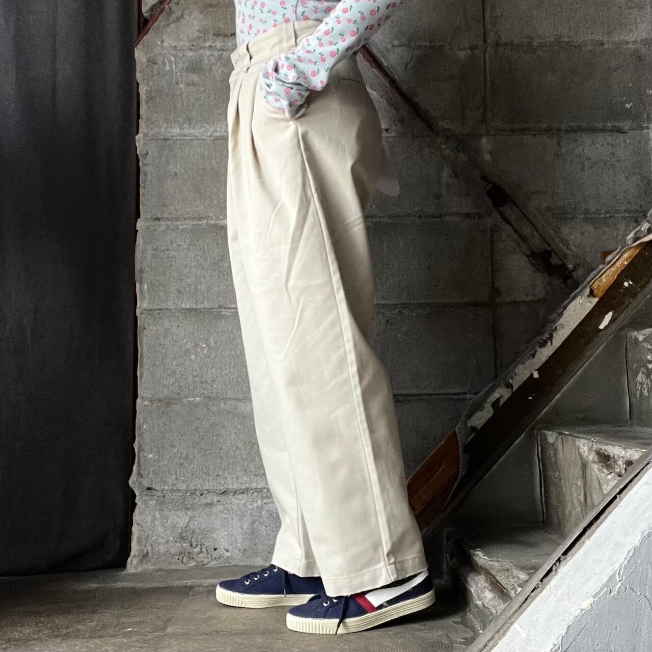・【HOLIDAY】 dickies drawstrings damage 2tuck pants (ecru)