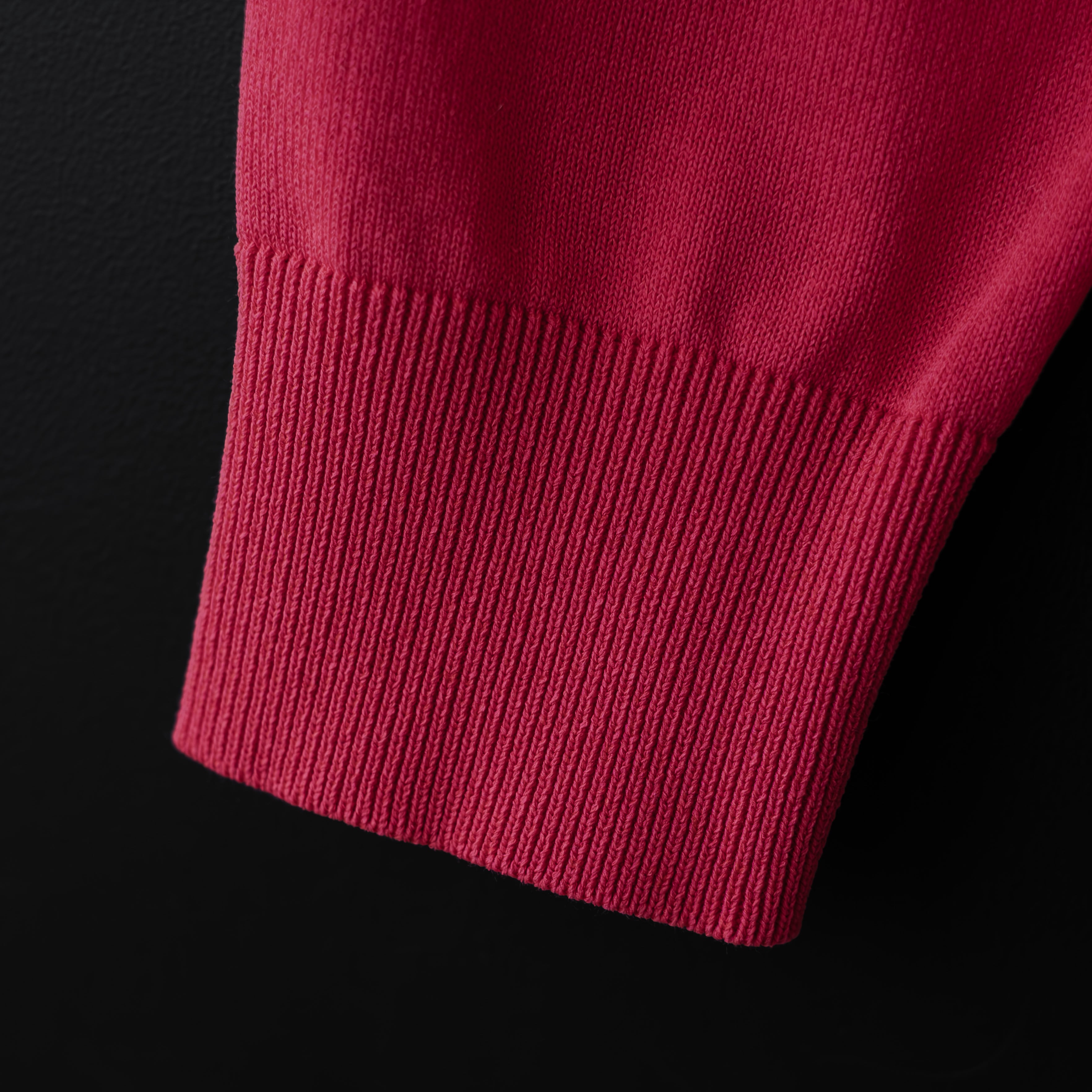 コットン×ポリエステルのサラッとした肌あたりのややハイゲージニットカーディガン。