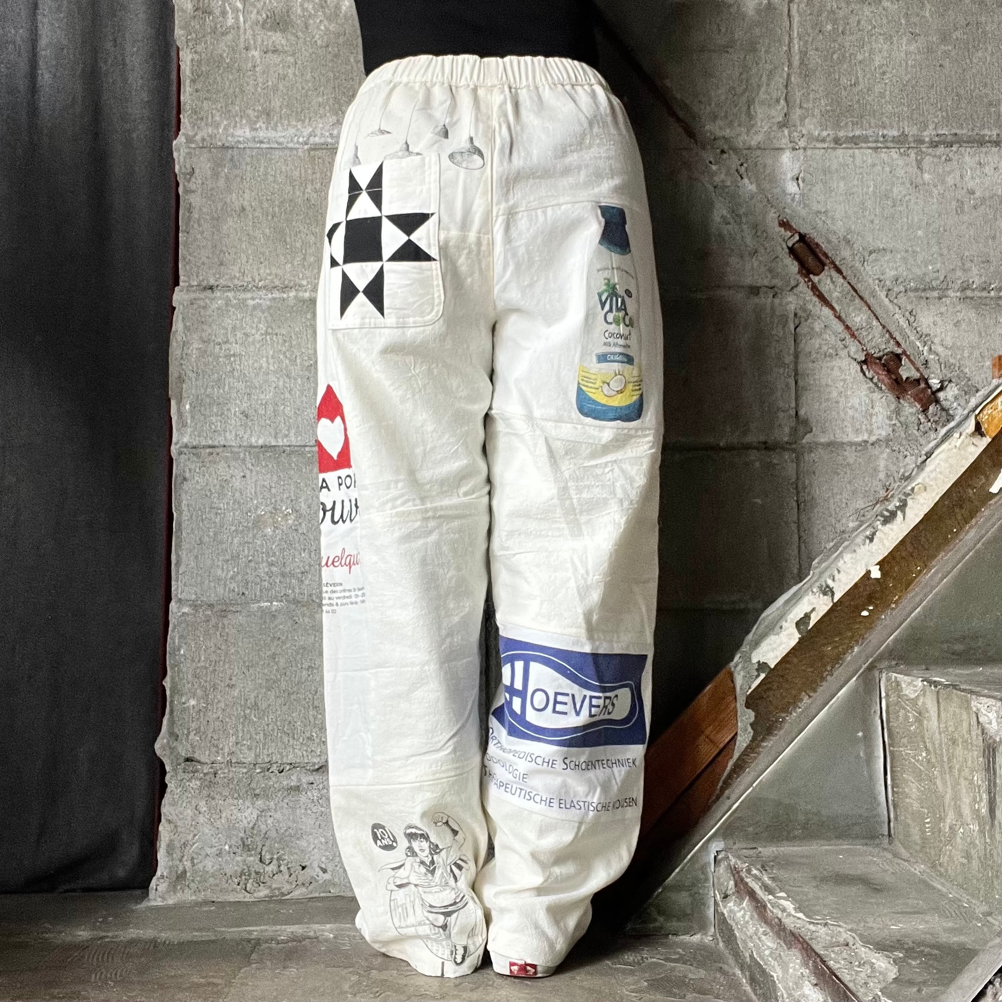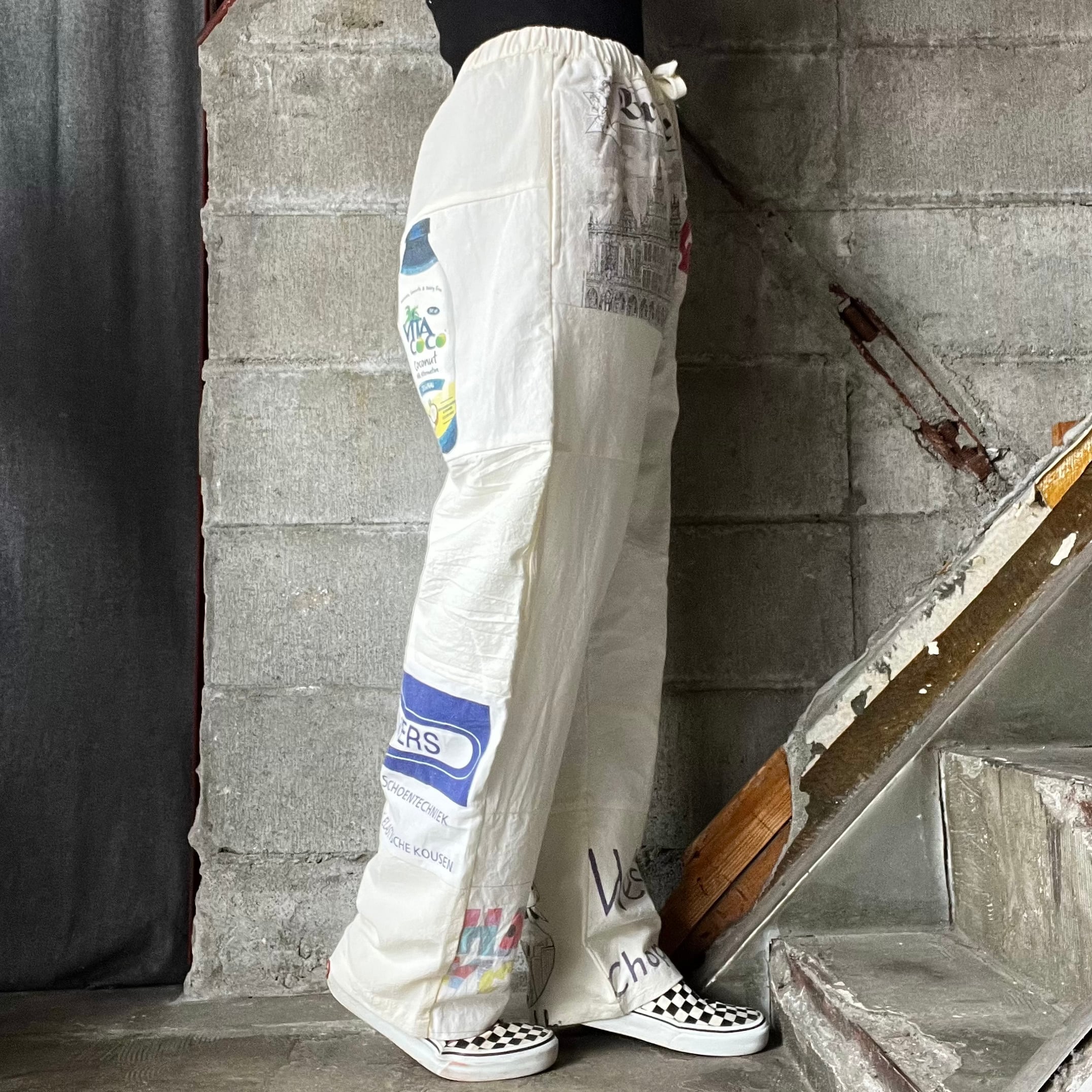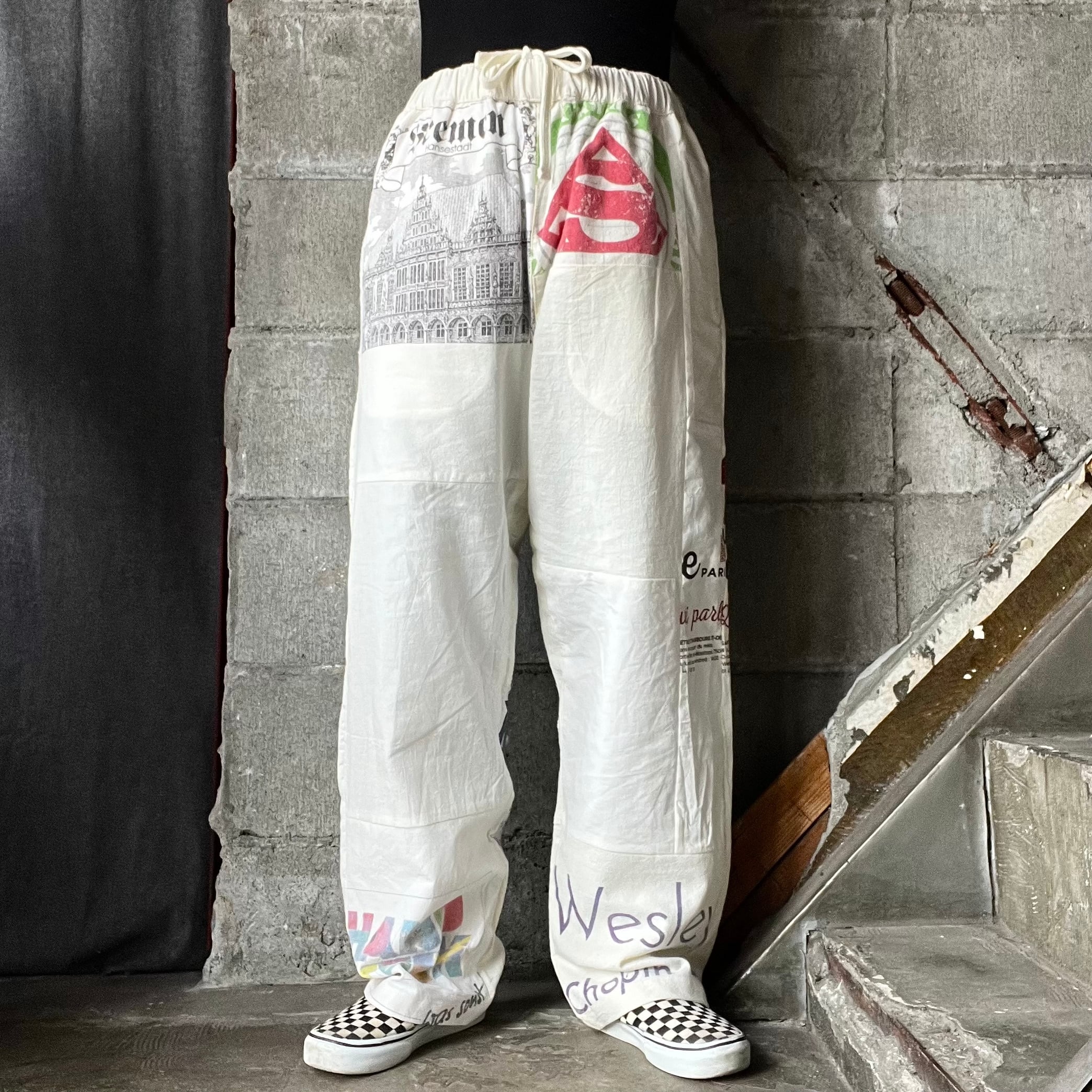 古着のタペストリーを解体、リメイクし、イージーパンツに。