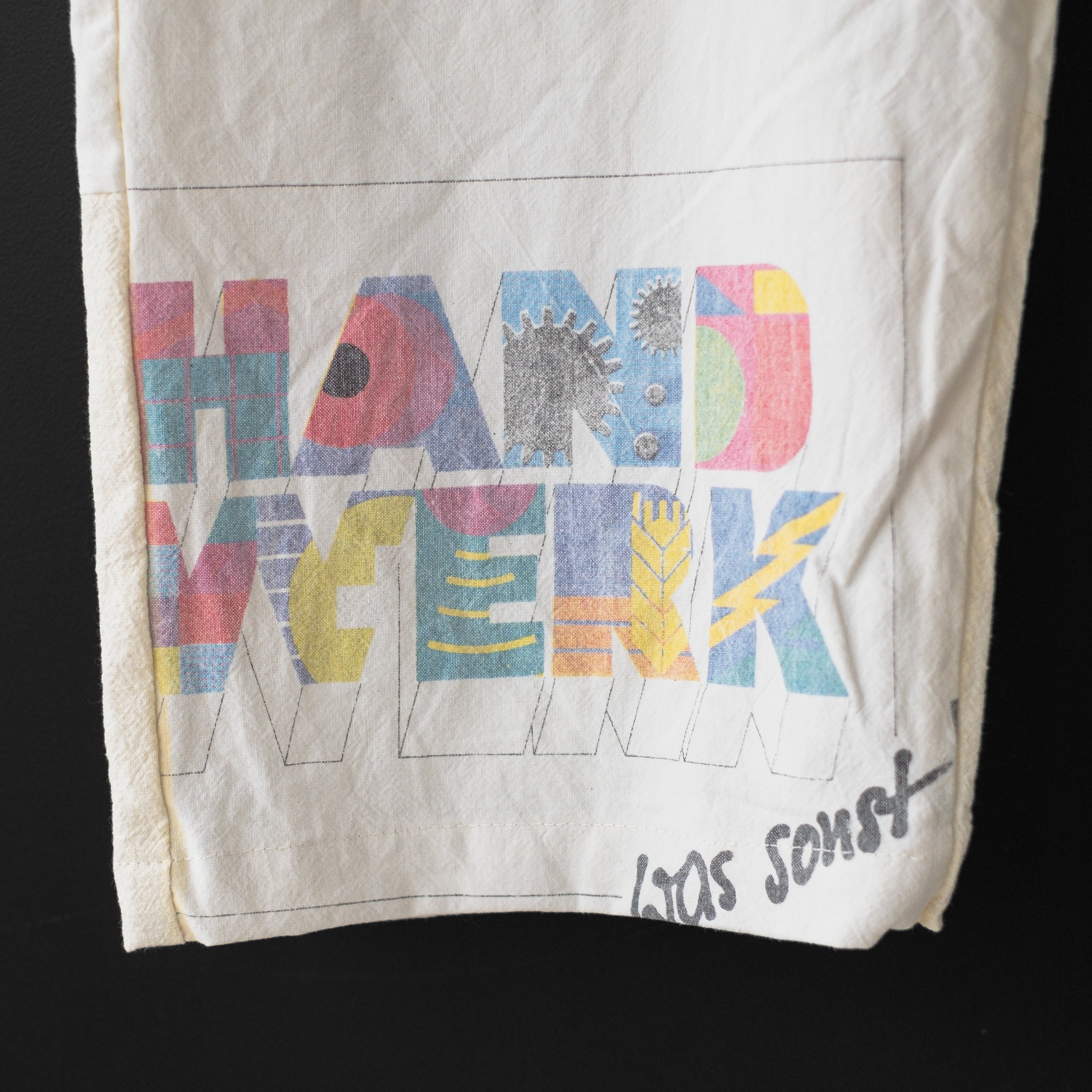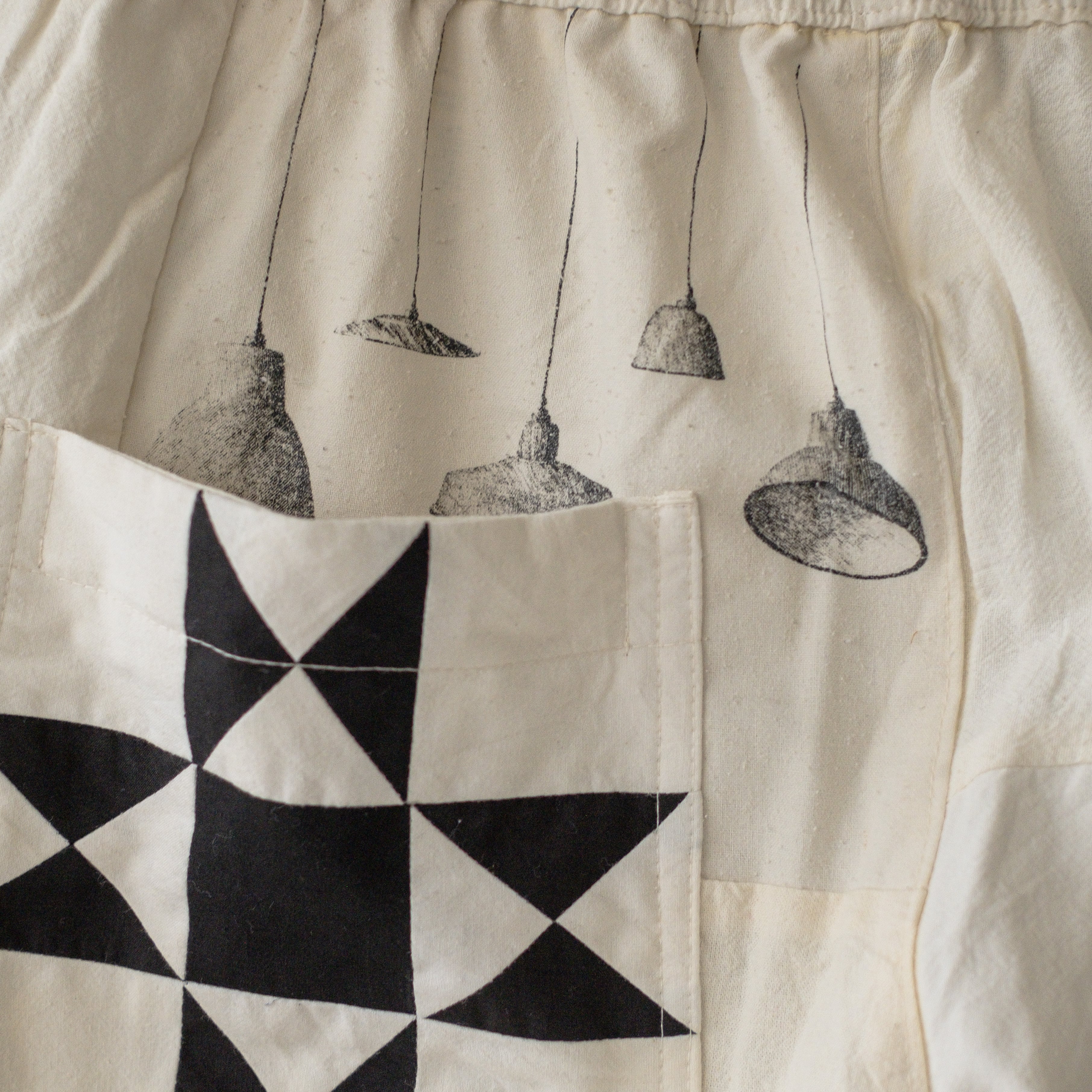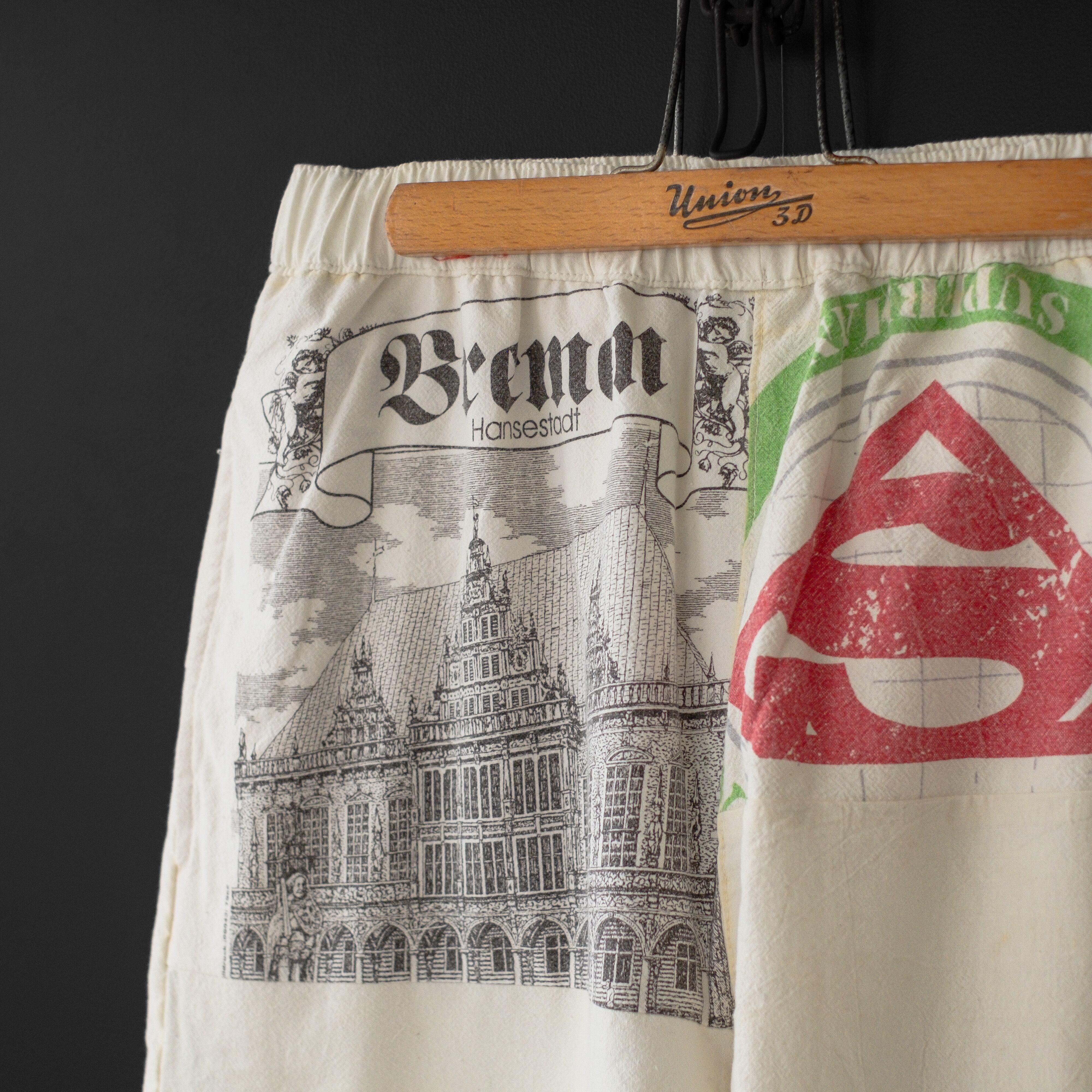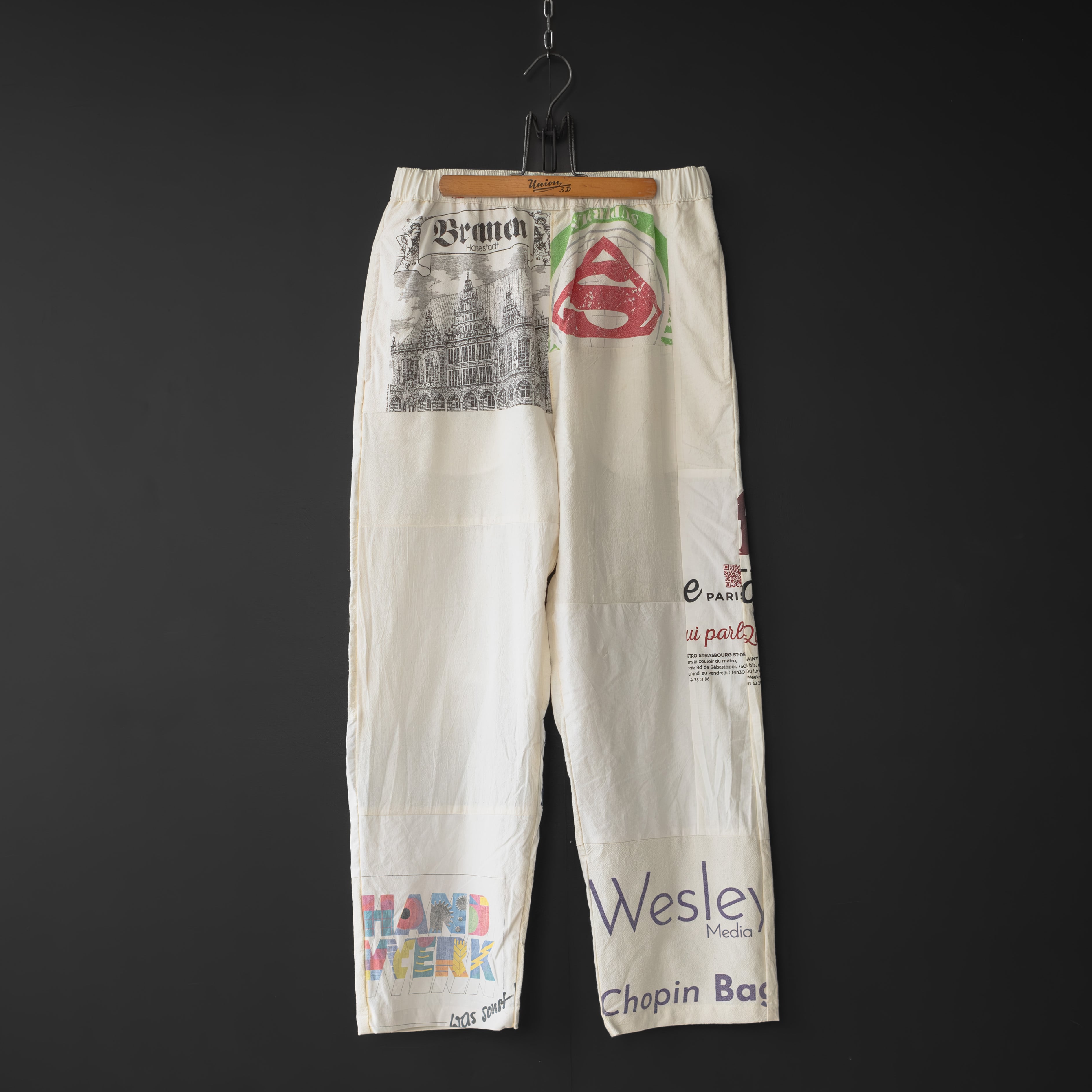 古着のタペストリーを解体、リメイクし、イージーパンツに。