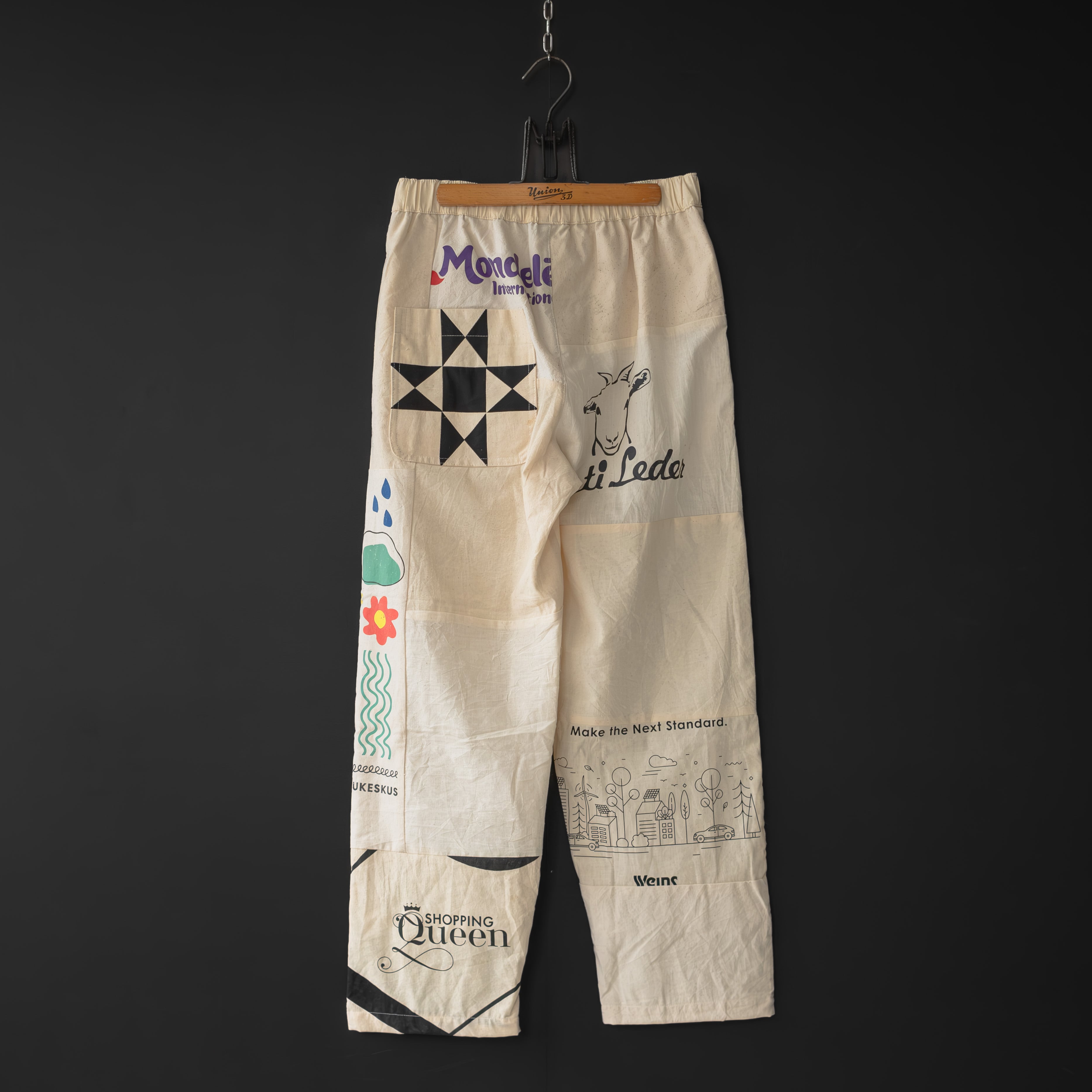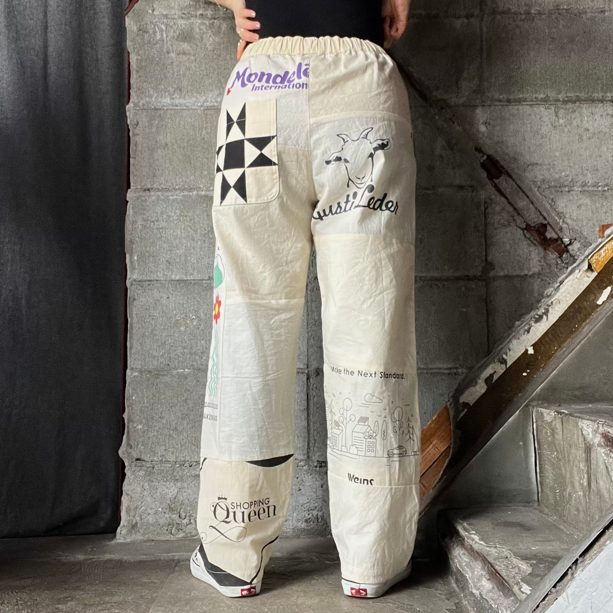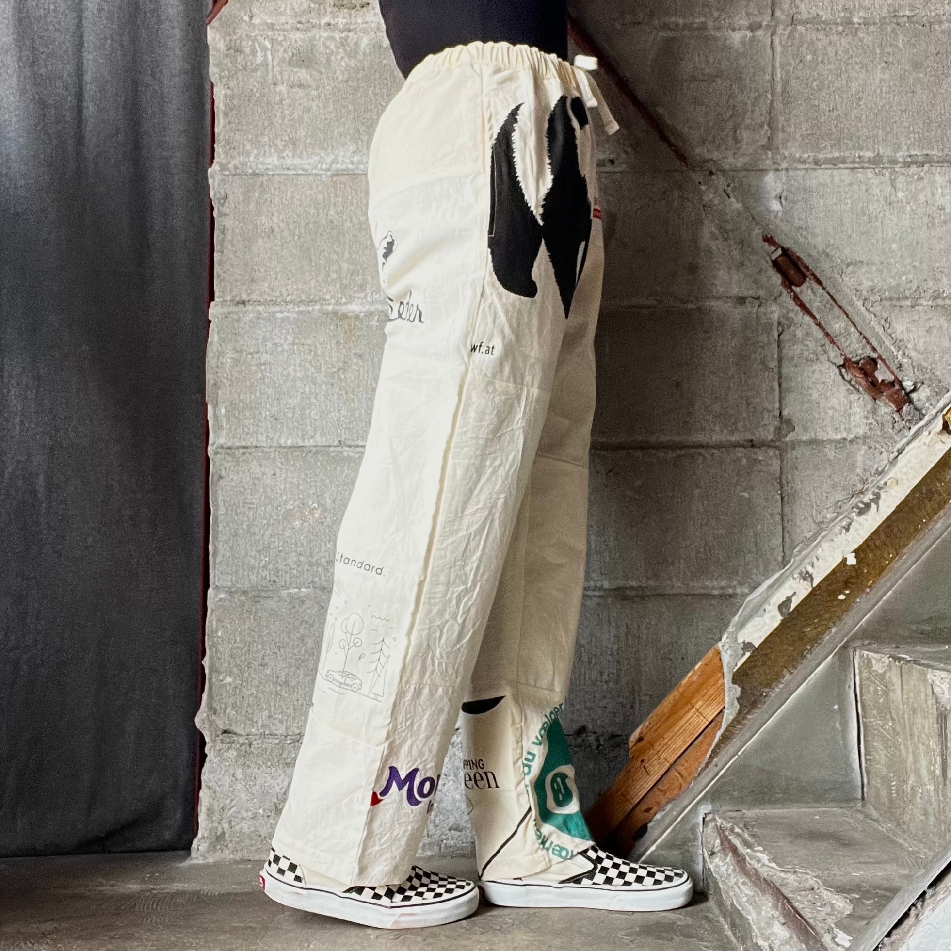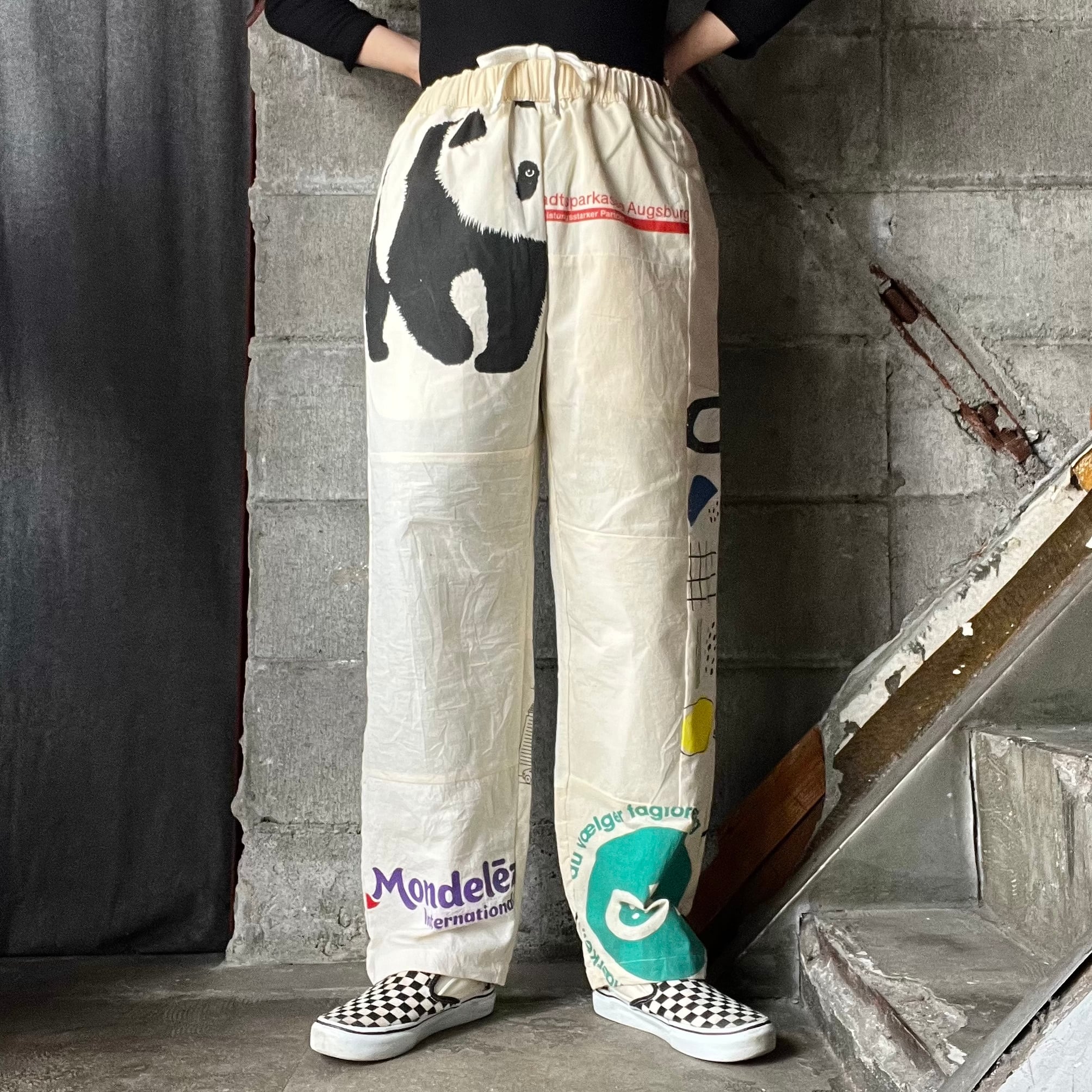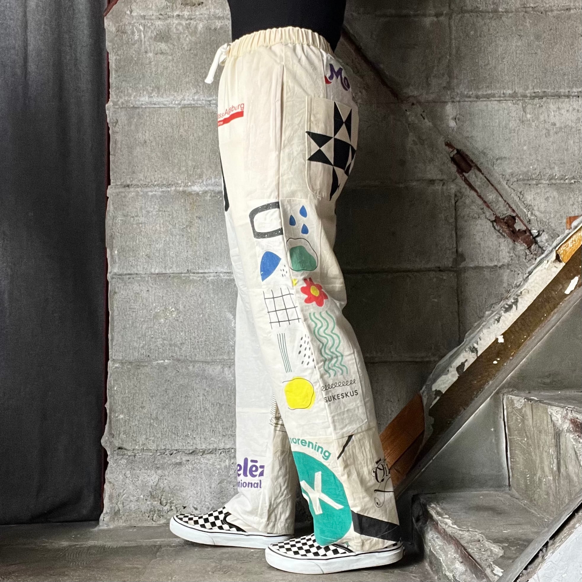 古着のタペストリーを解体、リメイクし、イージーパンツに。