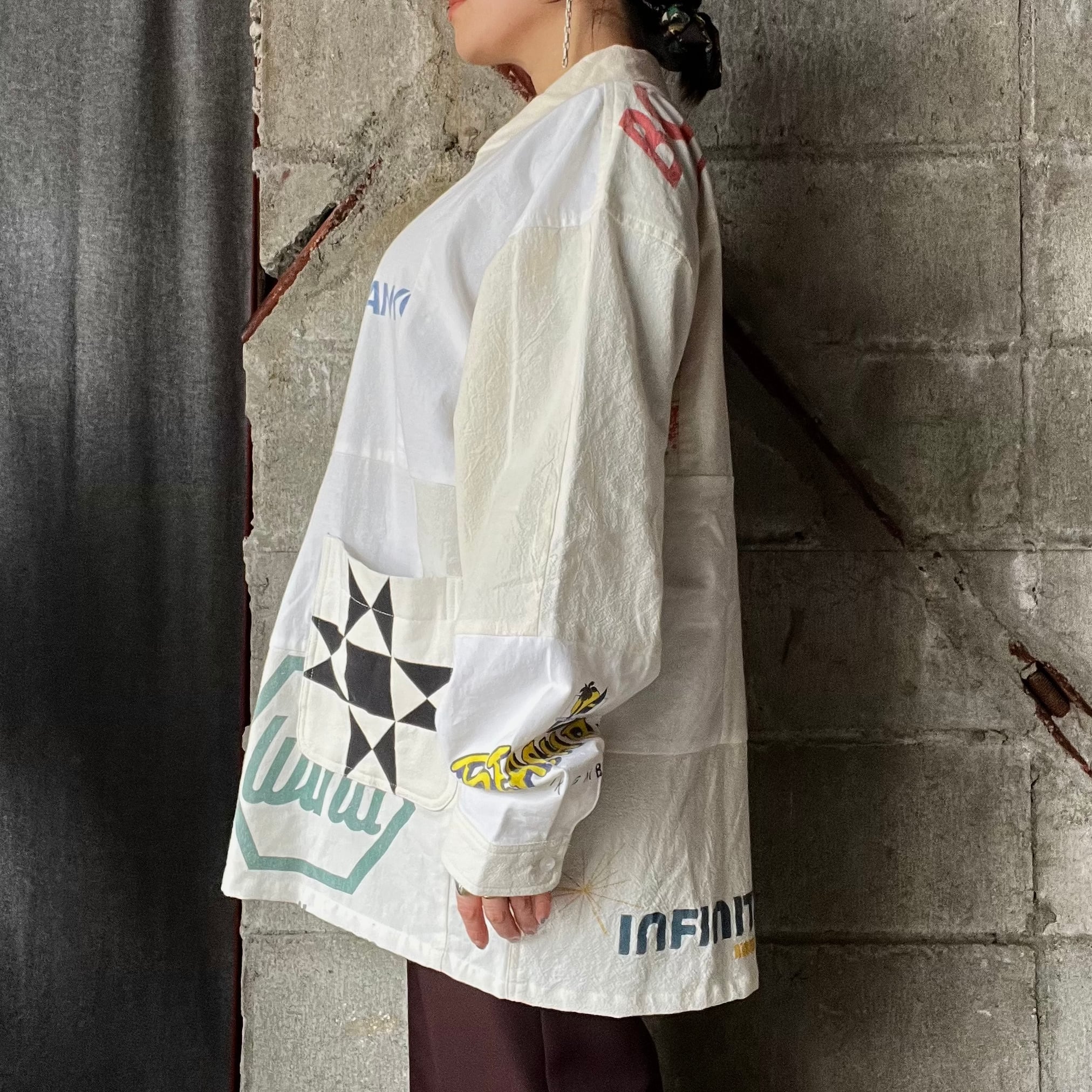 古着のタペストリーを解体、リメイクし、ジャケットに。