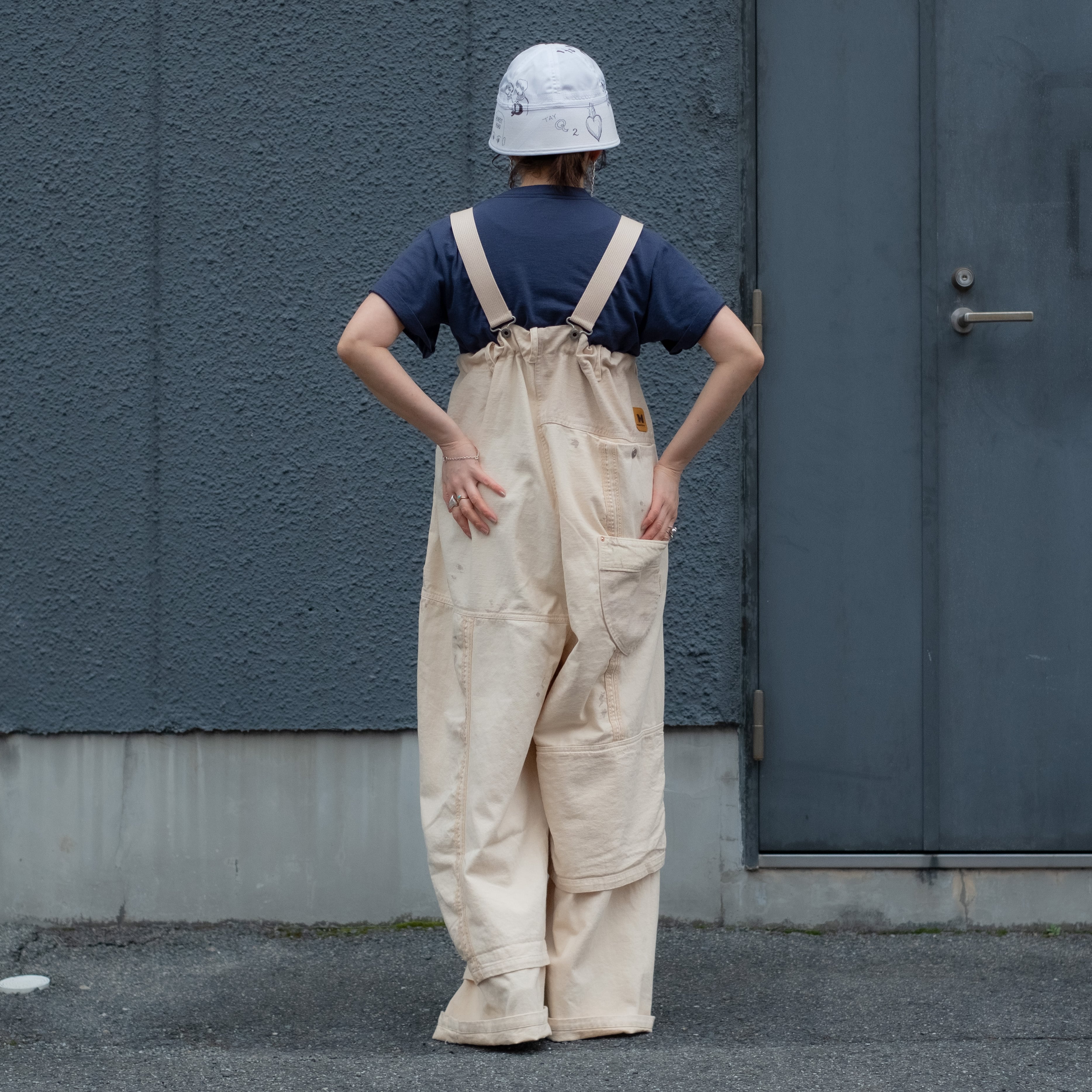 サスペンダーを外しウエストを絞ってワイドパンツとしても着用可能な2way仕様。