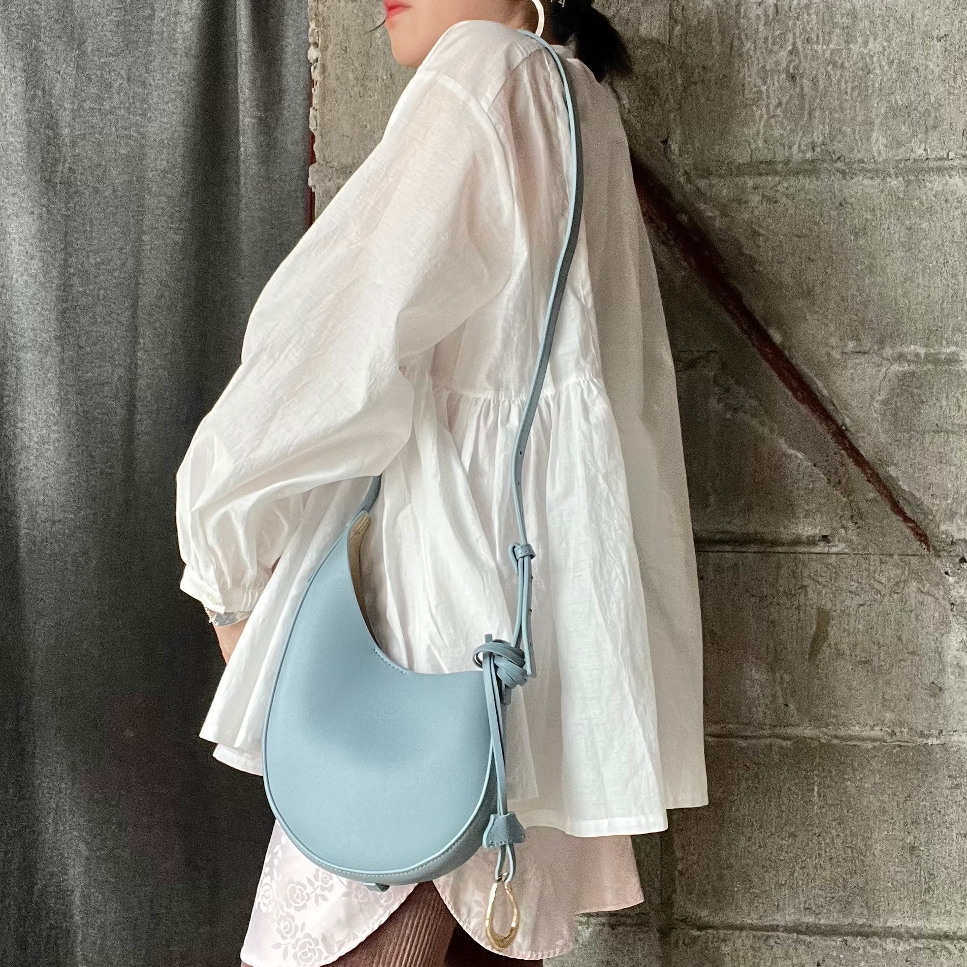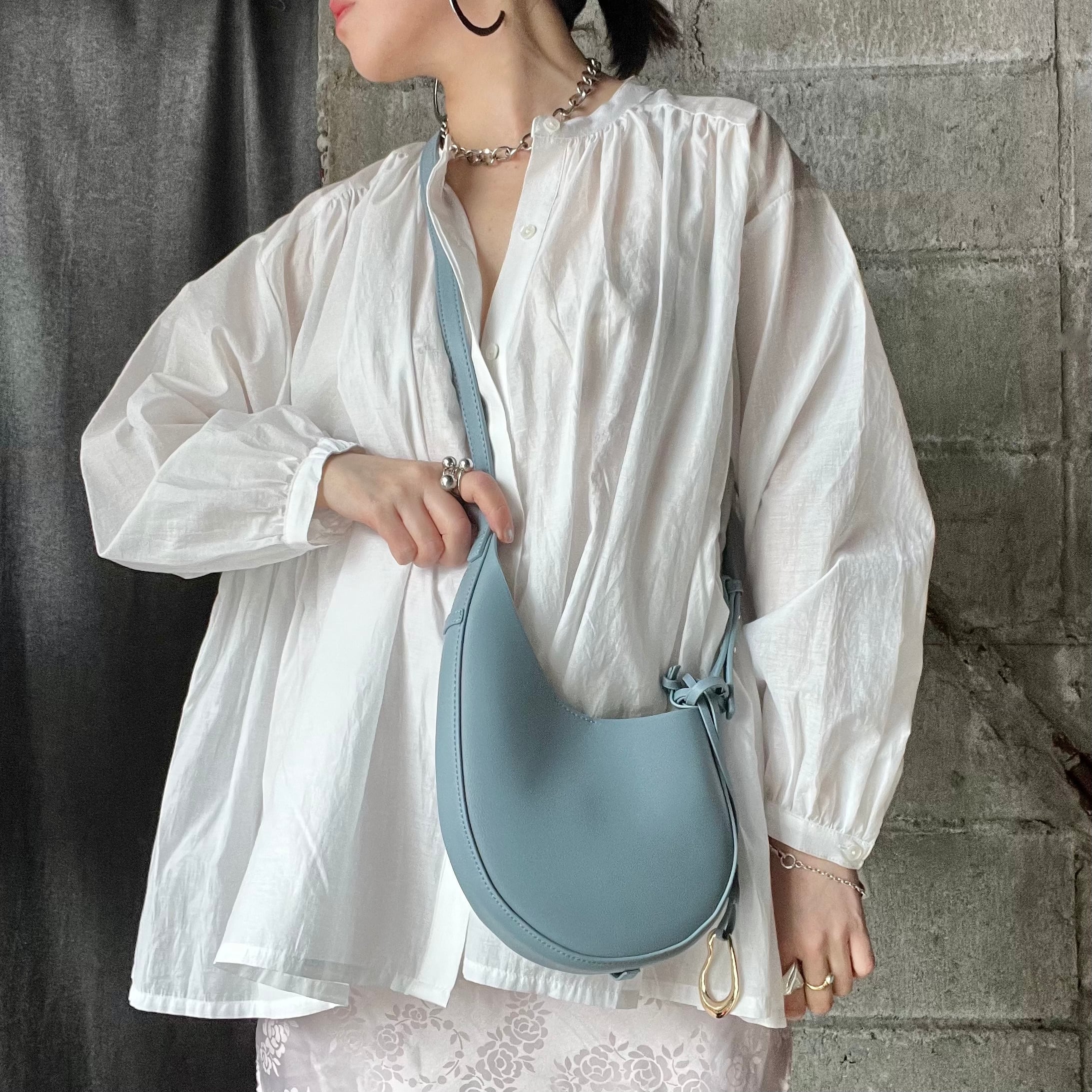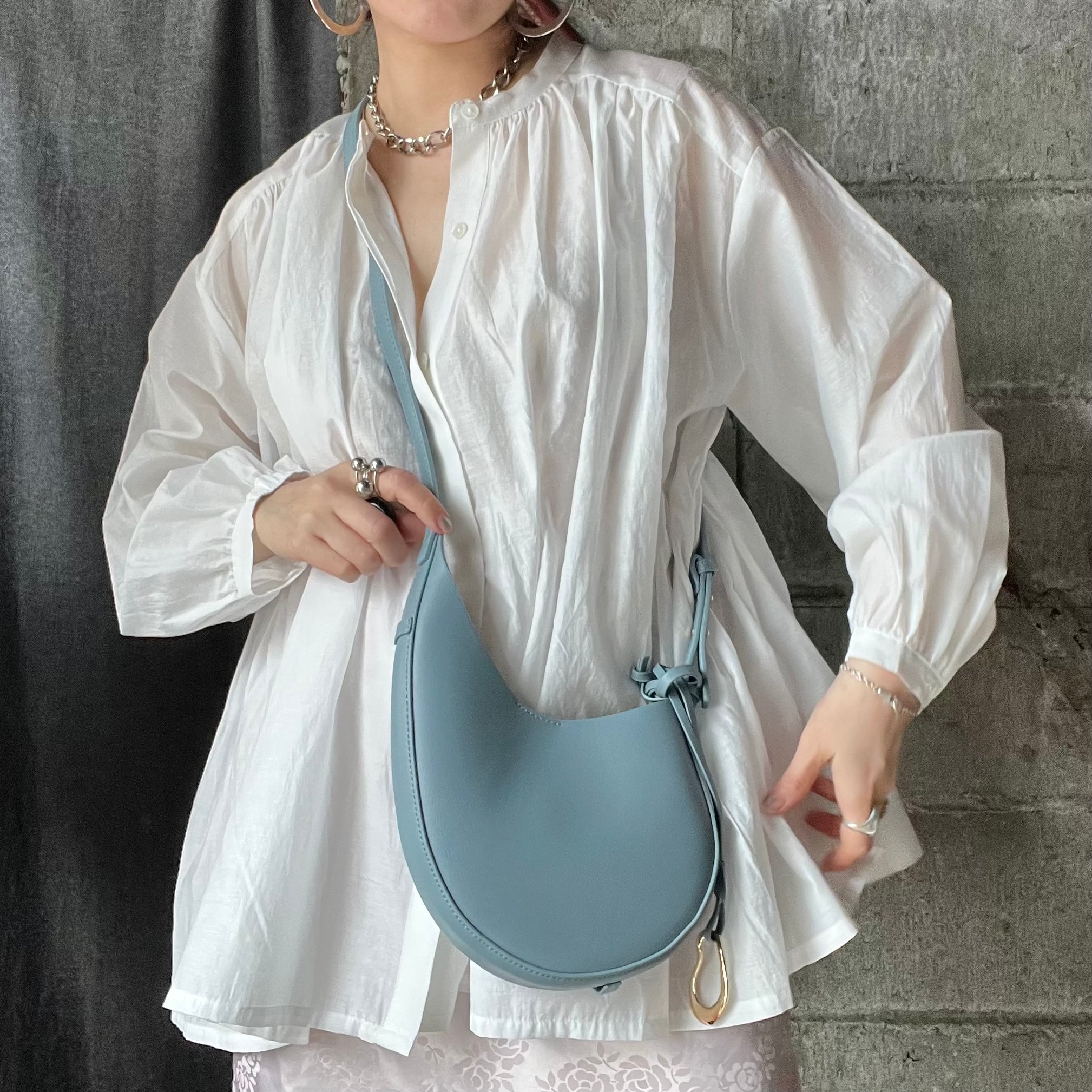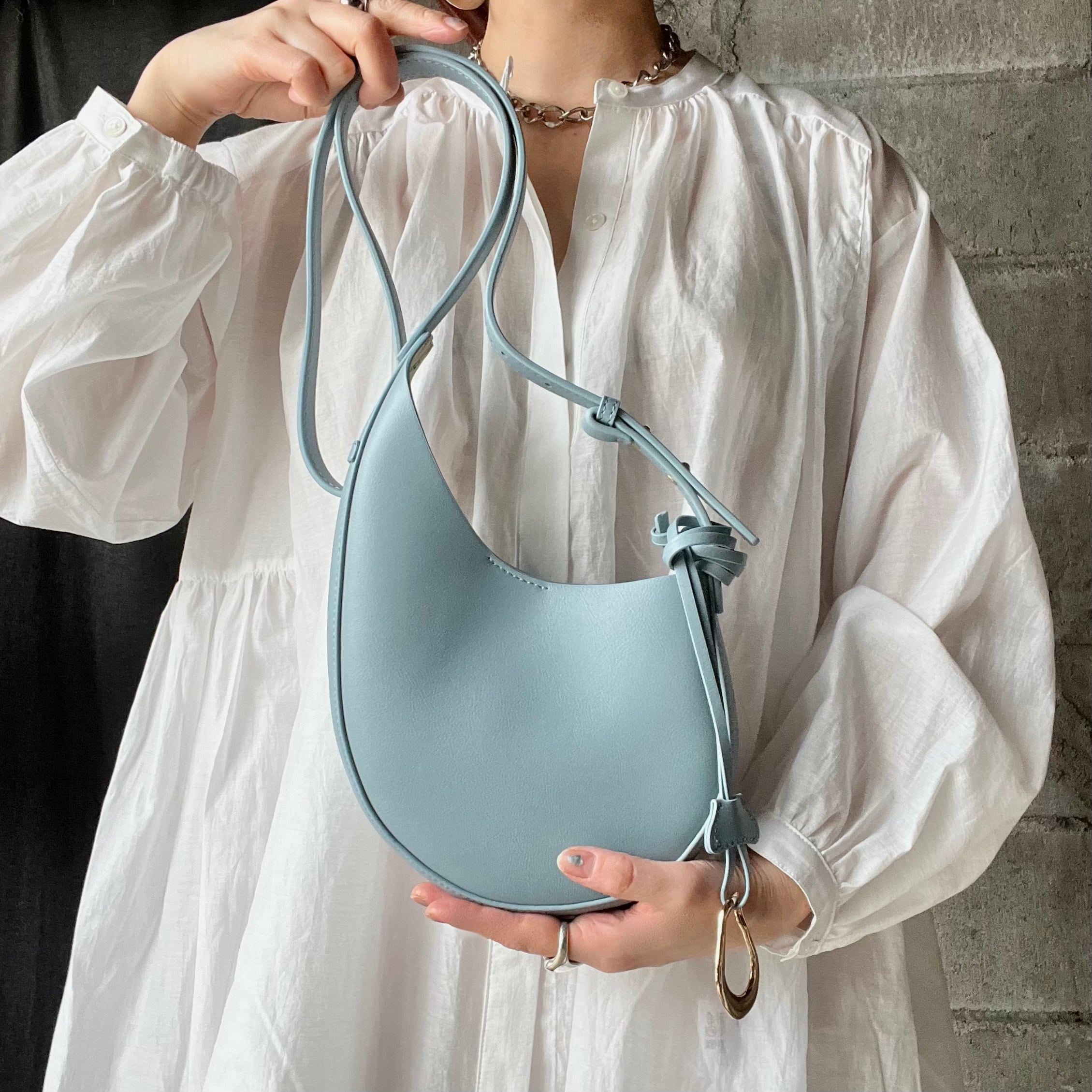 レザーのような風合いの上質な素材を使用し、印象的なシルエットも相まってクリーンな仕上がりに。