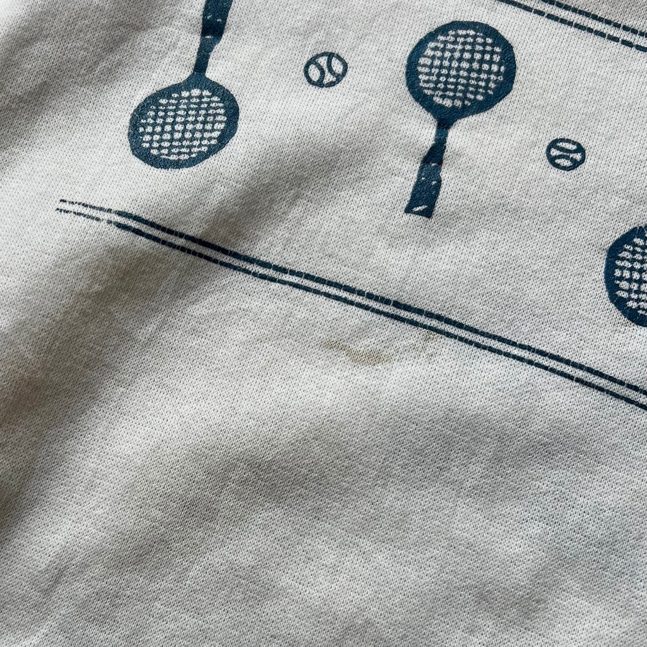 全体的に汚れあり。後ろプリント部分に穴あり。