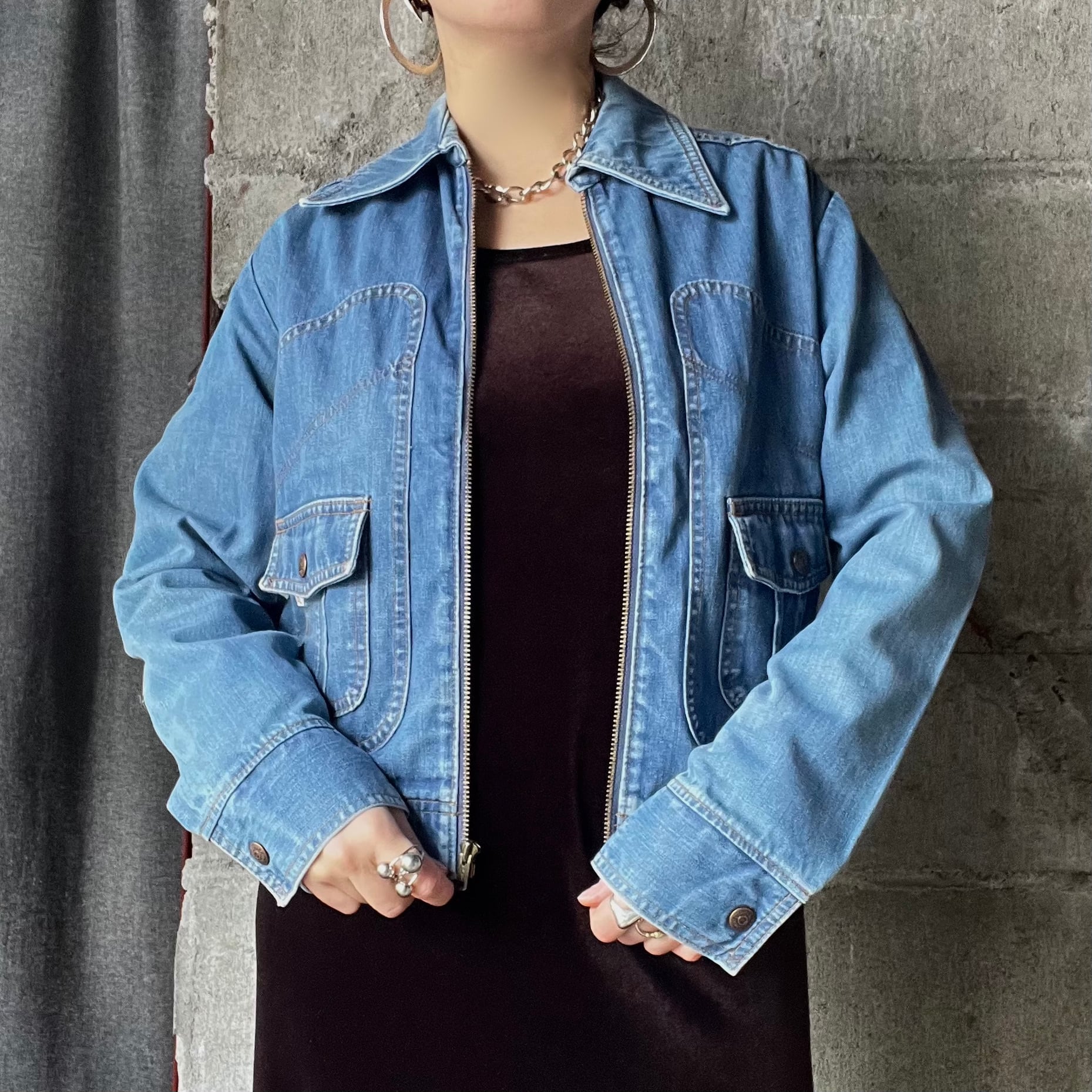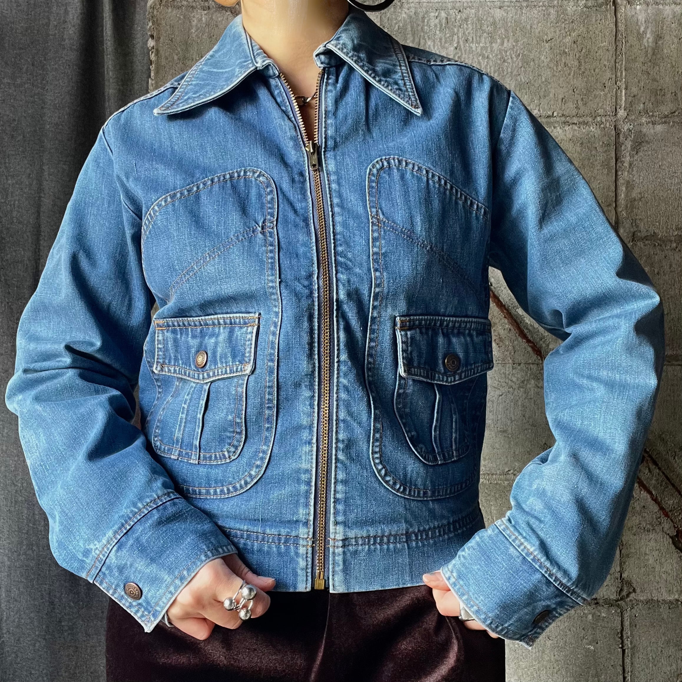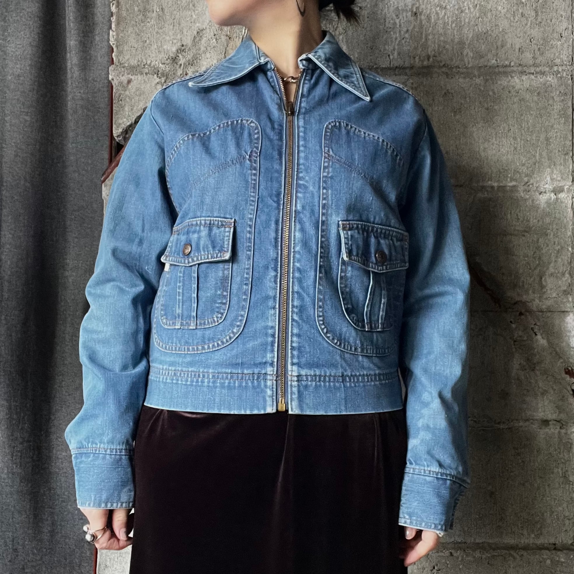 古着 フルジップ デニム ジャケット Gジャン