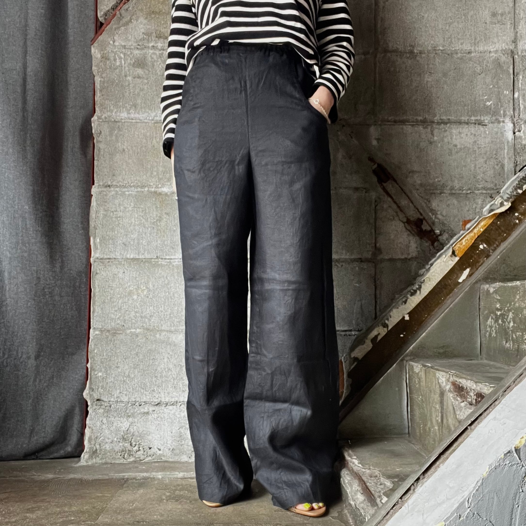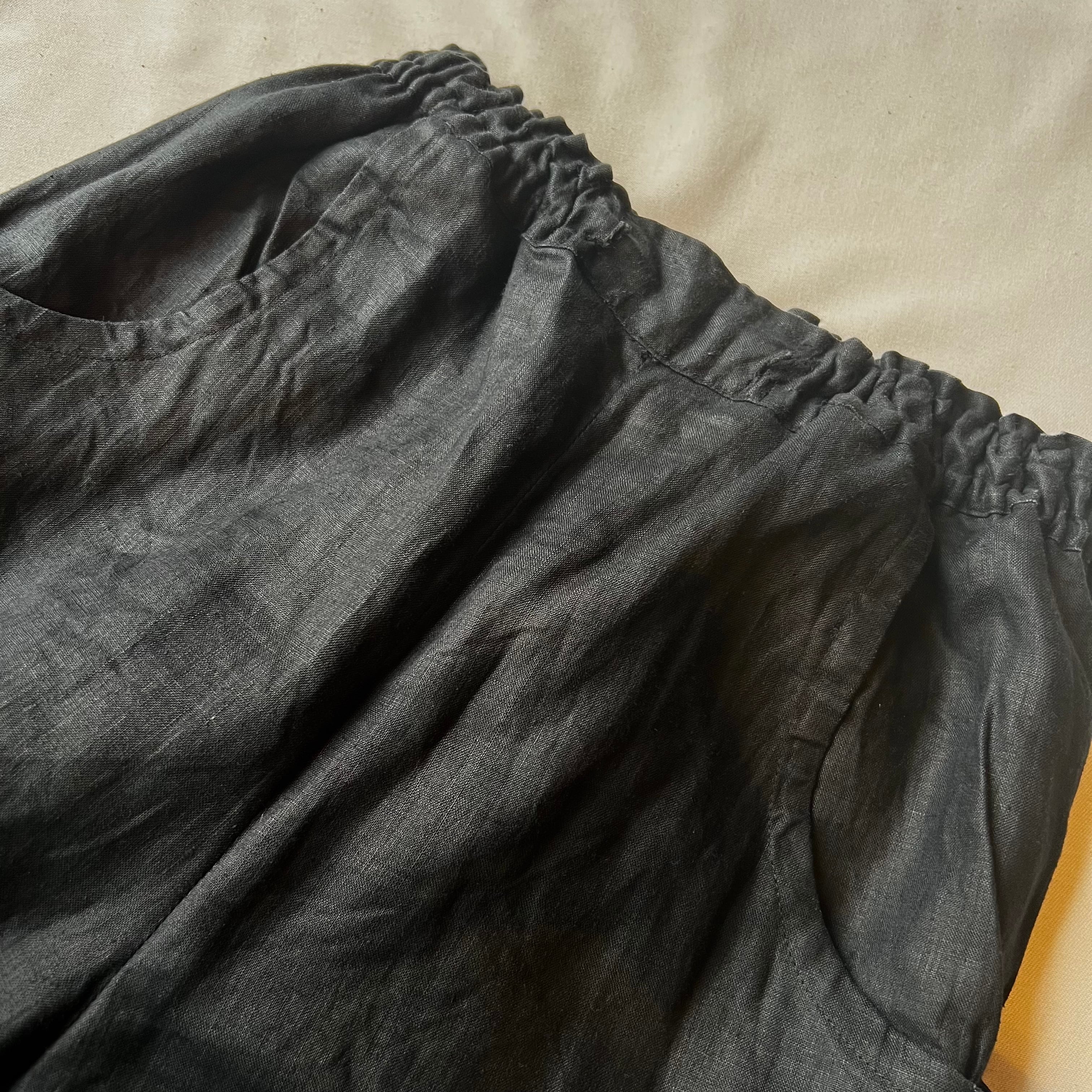 サイドポケットありで、ウエストはゴム仕様。(紐なし)