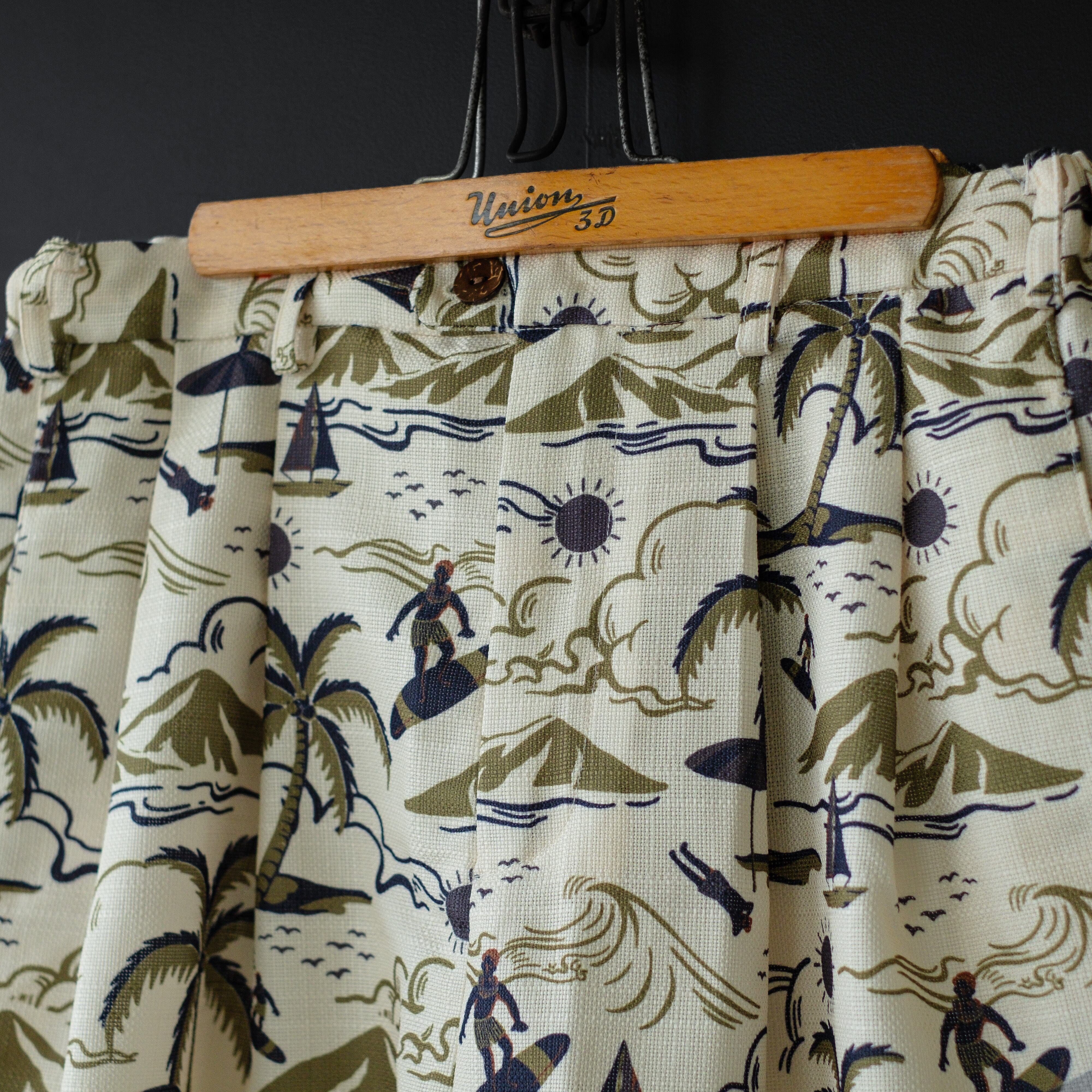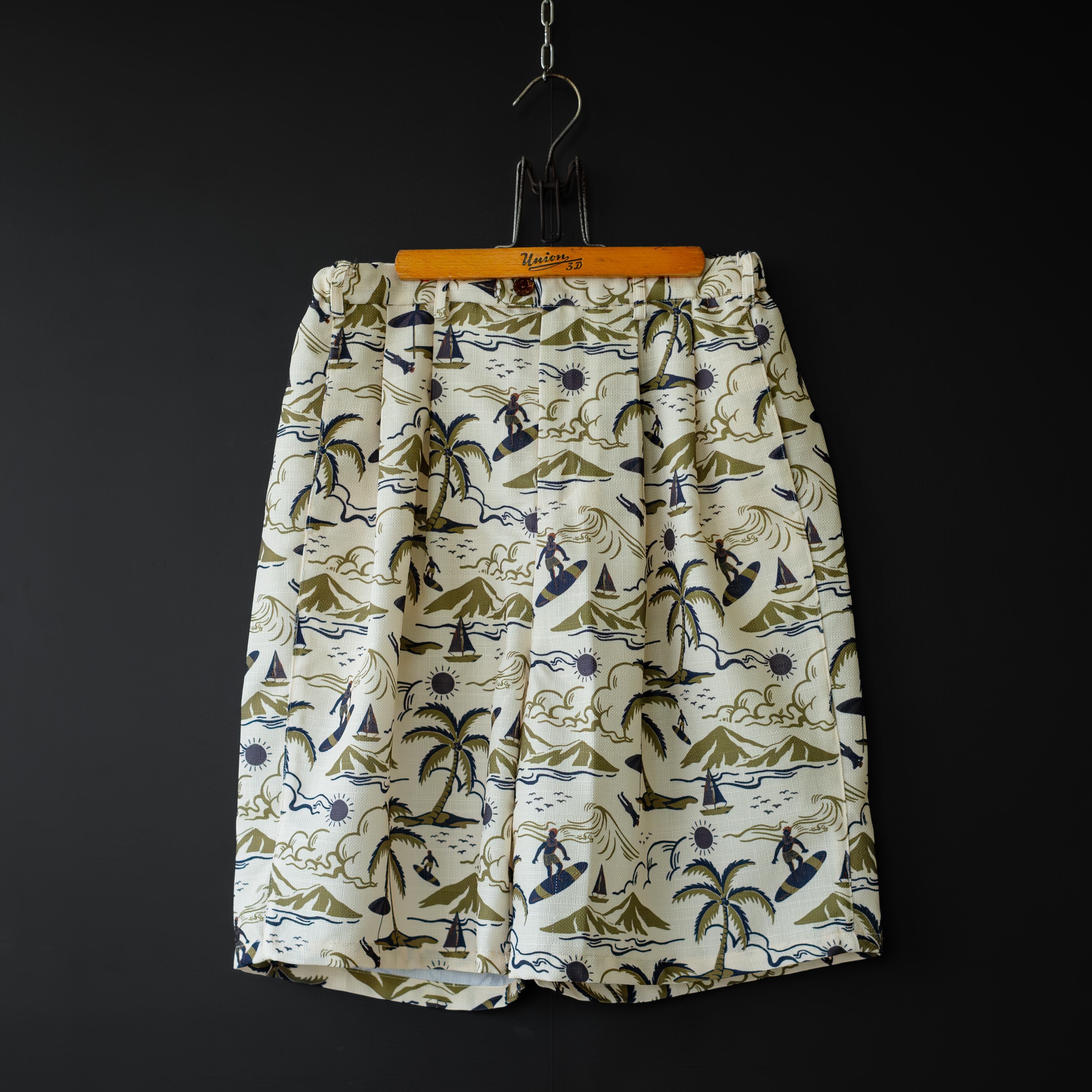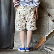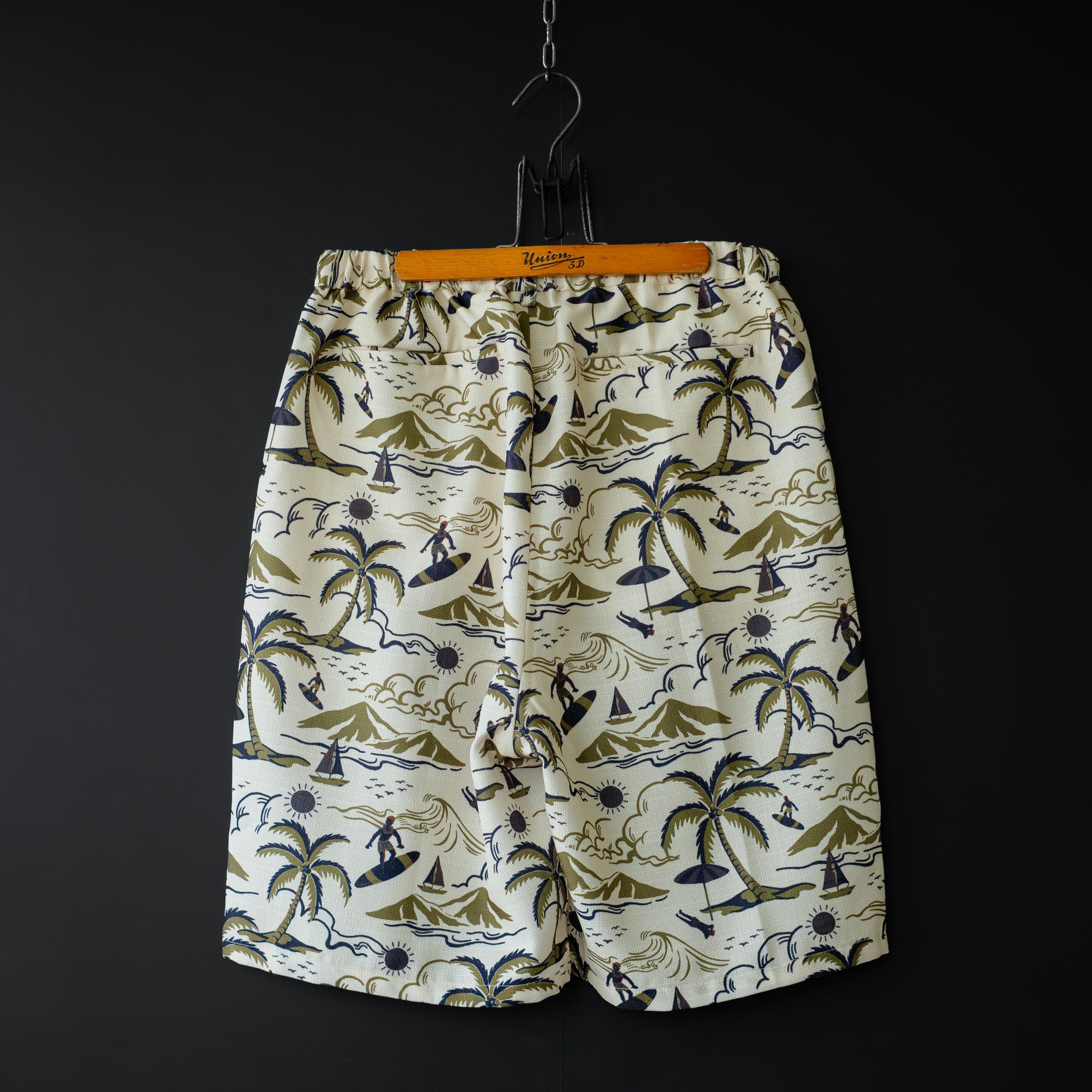【modem design】 aloha pattern beach shorts (beige)