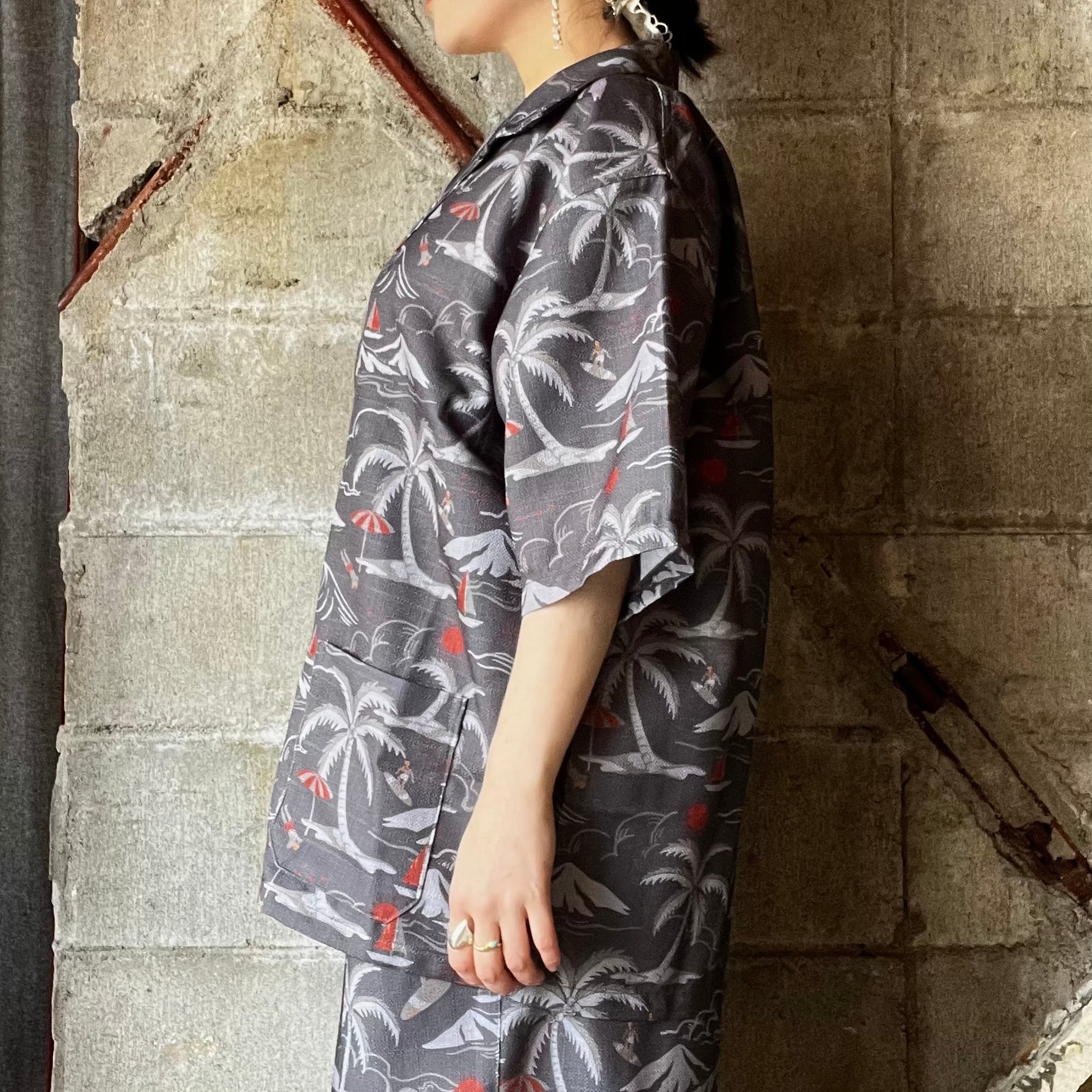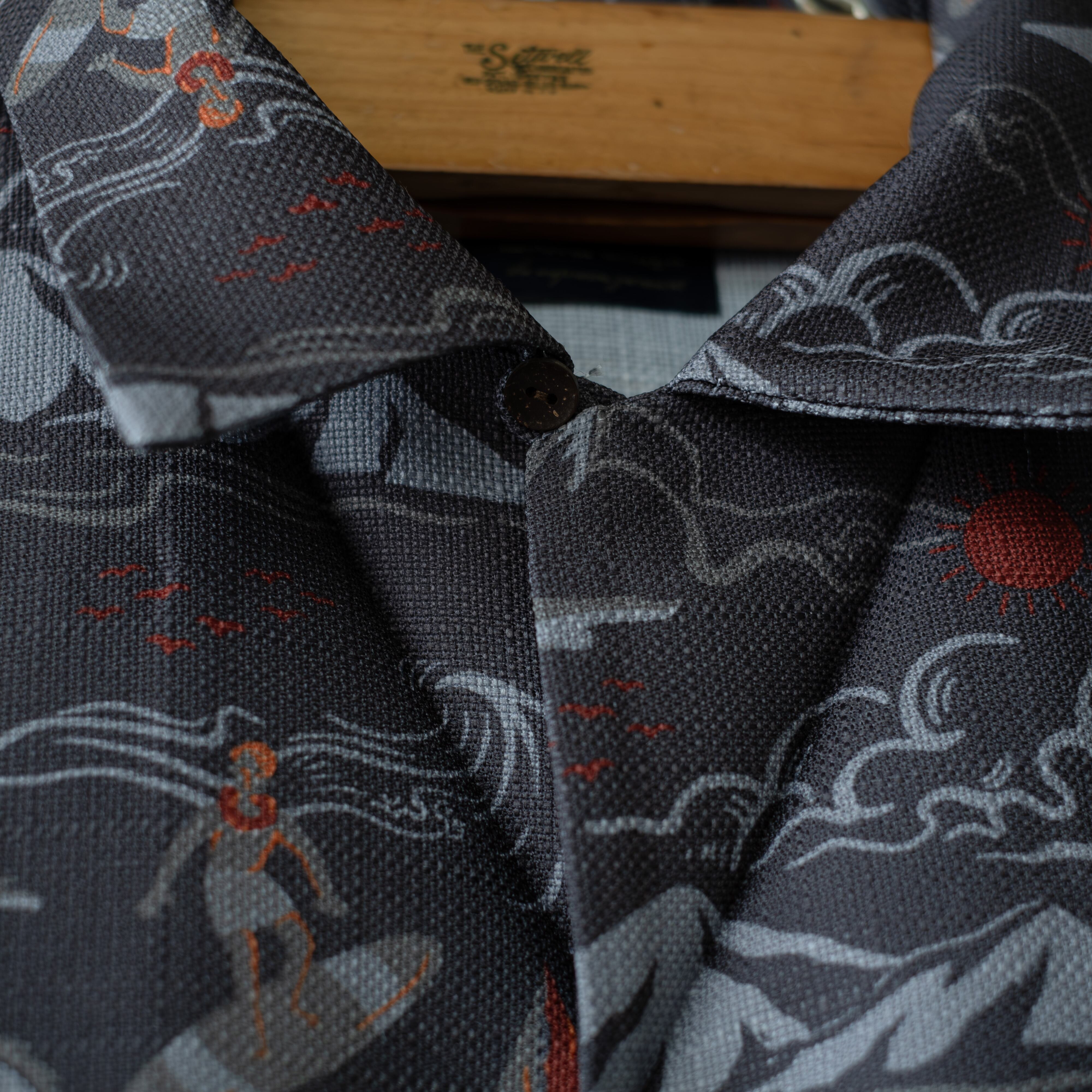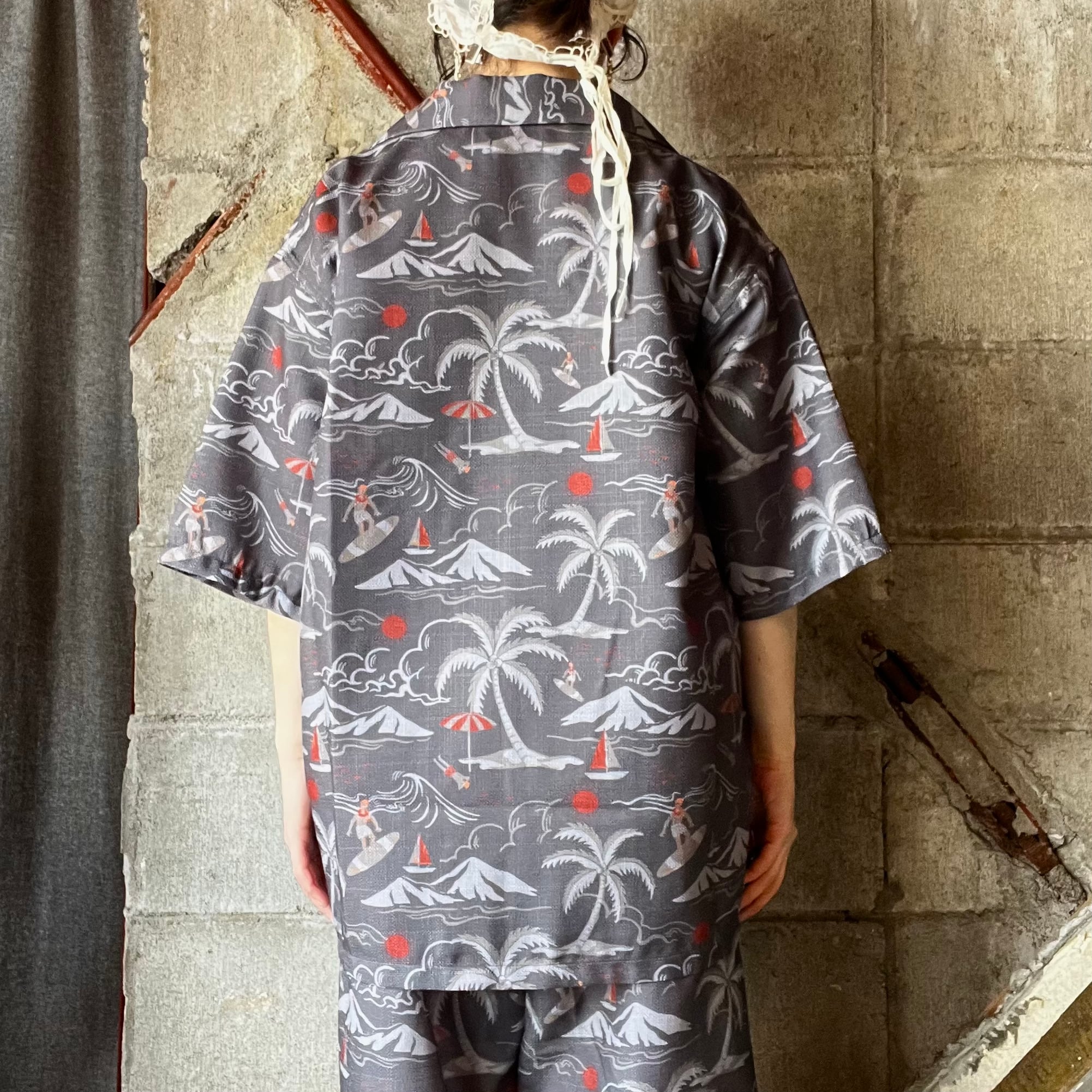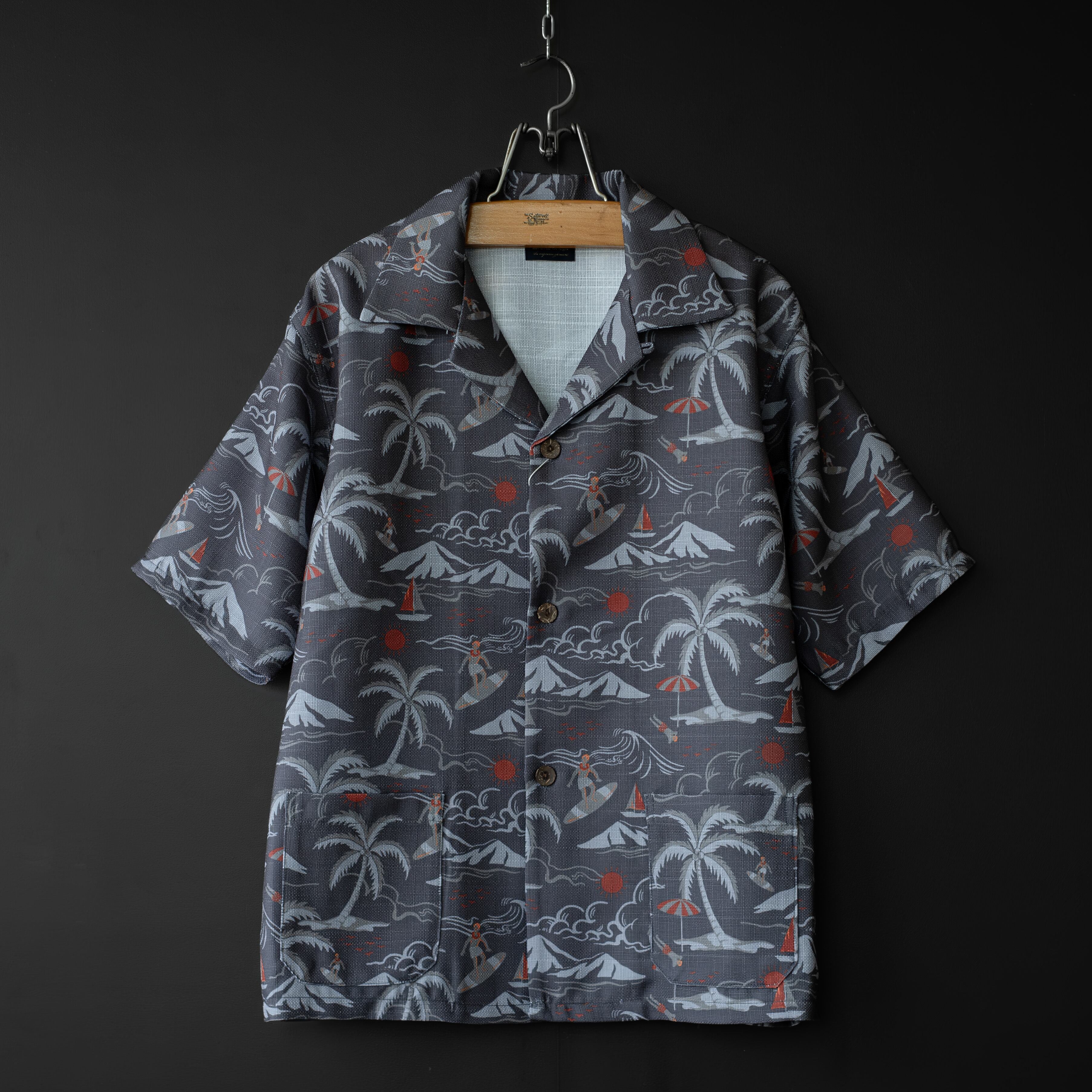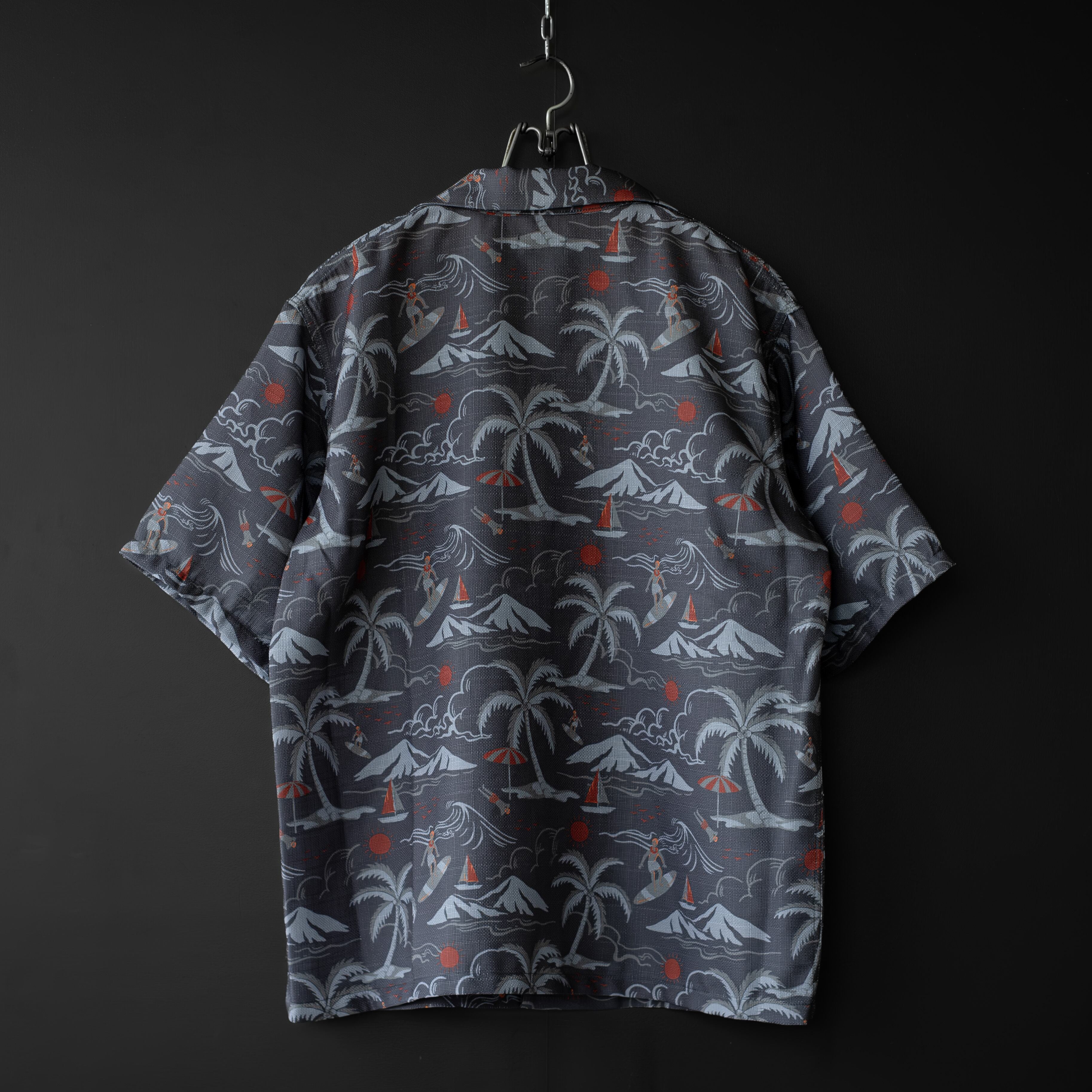【modem design】 aloha pattern beach shirt (charcoal)