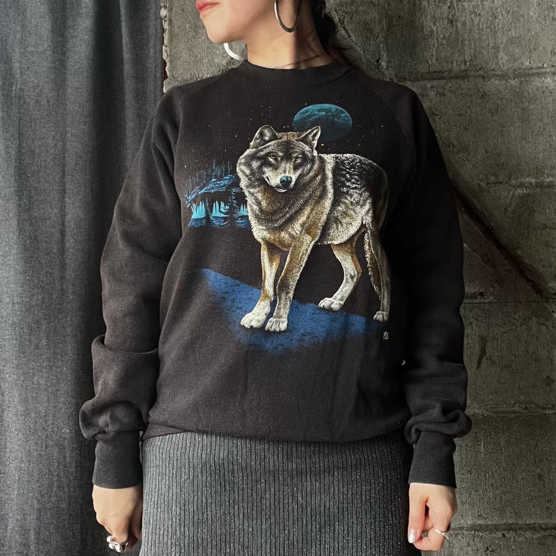 -used- 【JERZEES】 wolf print pullover sweatshirt (made in USA)